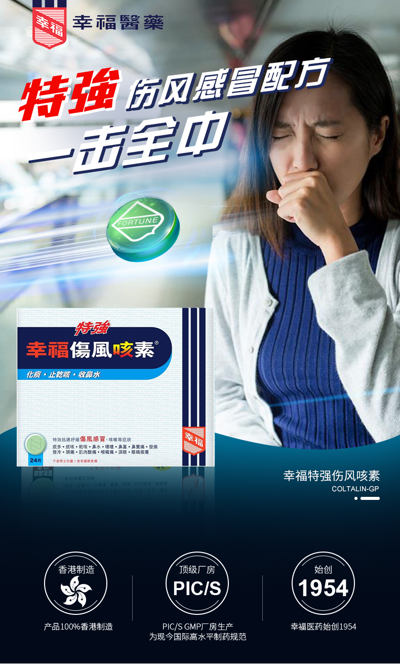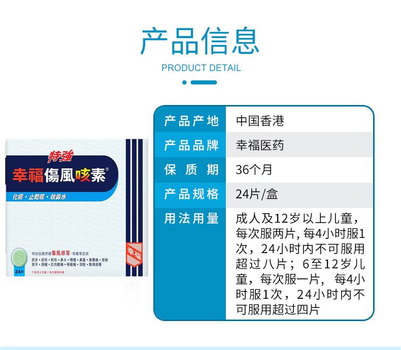 【香港直邮】发烧痰多鼻塞肌肉痛喉咙痛 正品幸福特强伤风咳素(24片装)