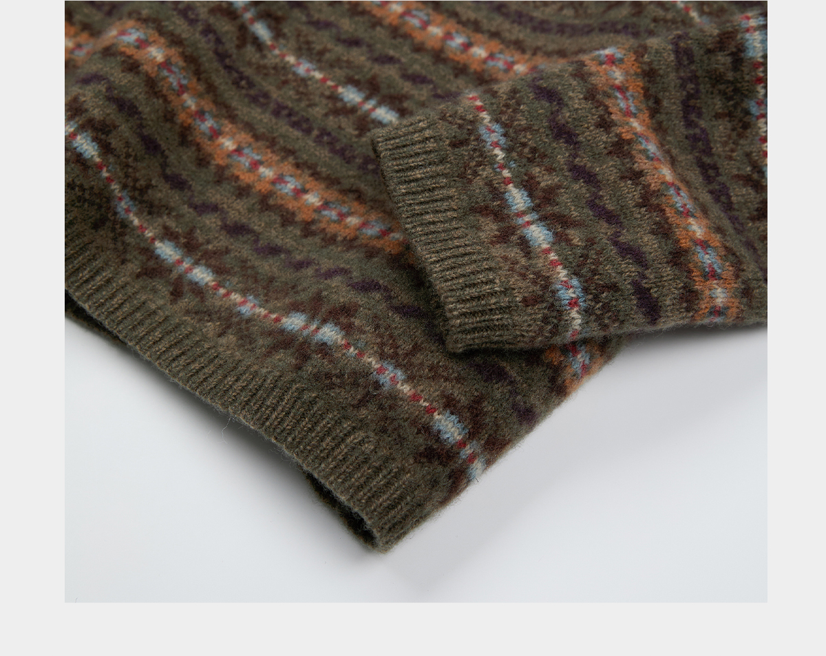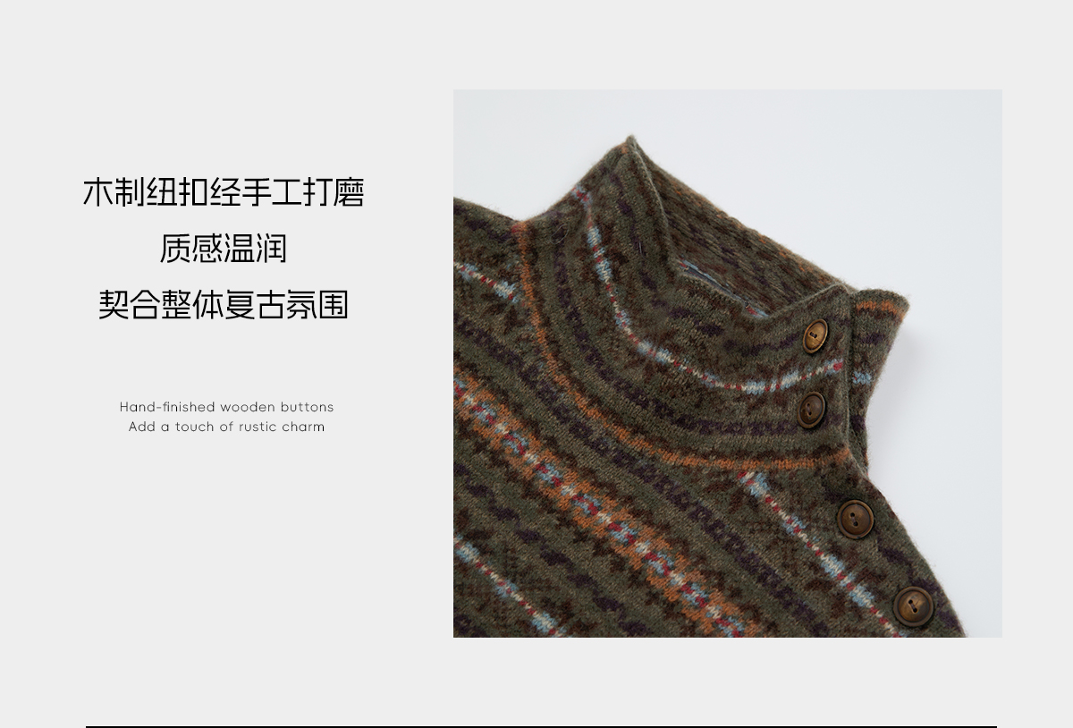 ROMI STUDIO12针浣熊绒羊毛混纺复古费尔岛毛织开衫RWCAST5410