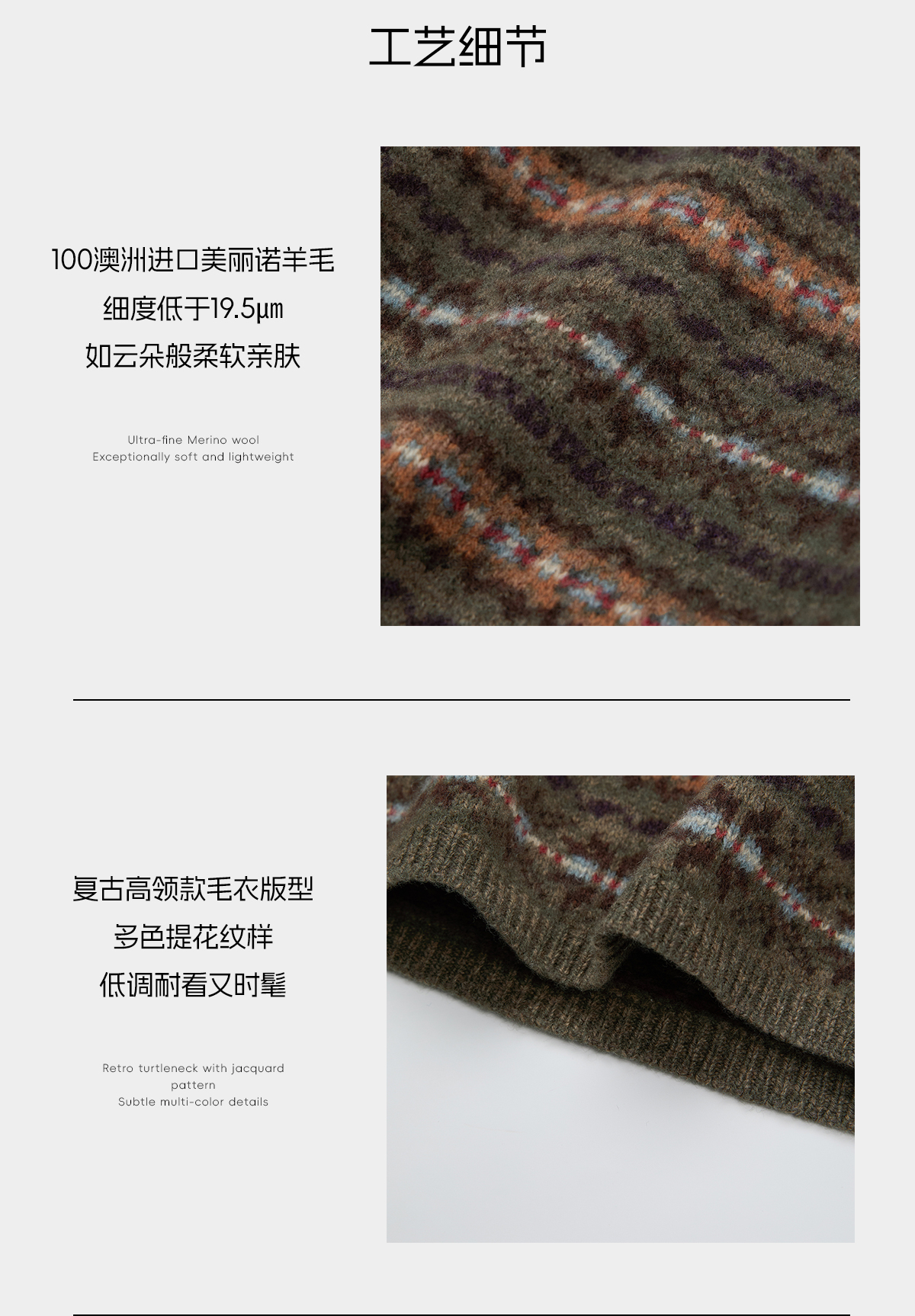 ROMI STUDIO“中古毛衣”100超细美丽诺羊毛高领套头毛衫RWCAST6057