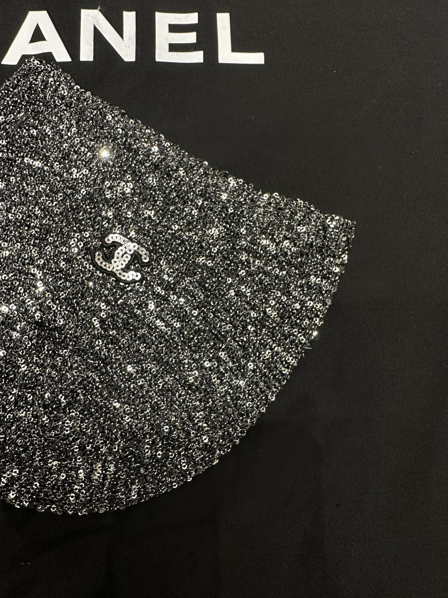 chane*新款手工亮片帽子,明星同款时尚亮片帽,轻薄亮片针织点缀字母logo刺绣,瓜皮帽一样浅浅的戴在发际线位置,给人感觉服帖自然,时尚感又不失俏皮,时髦女孩必入单品哦