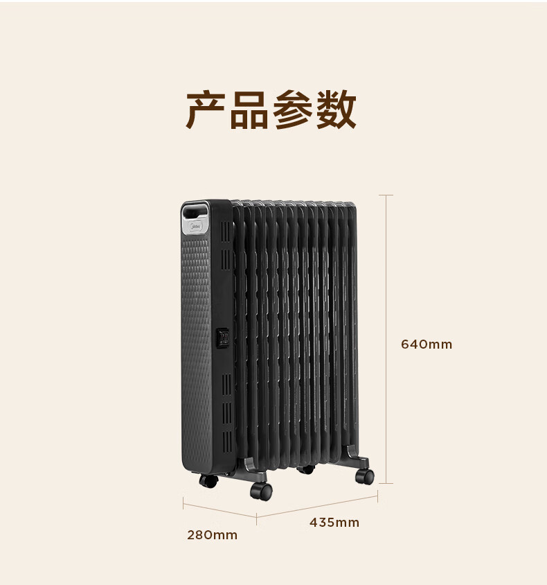 美的(Midea)取暖器 大面积暖器烤火炉油汀13片家用办公室干衣2200W恒温 电暖气 取暖器家用 NYX-G1