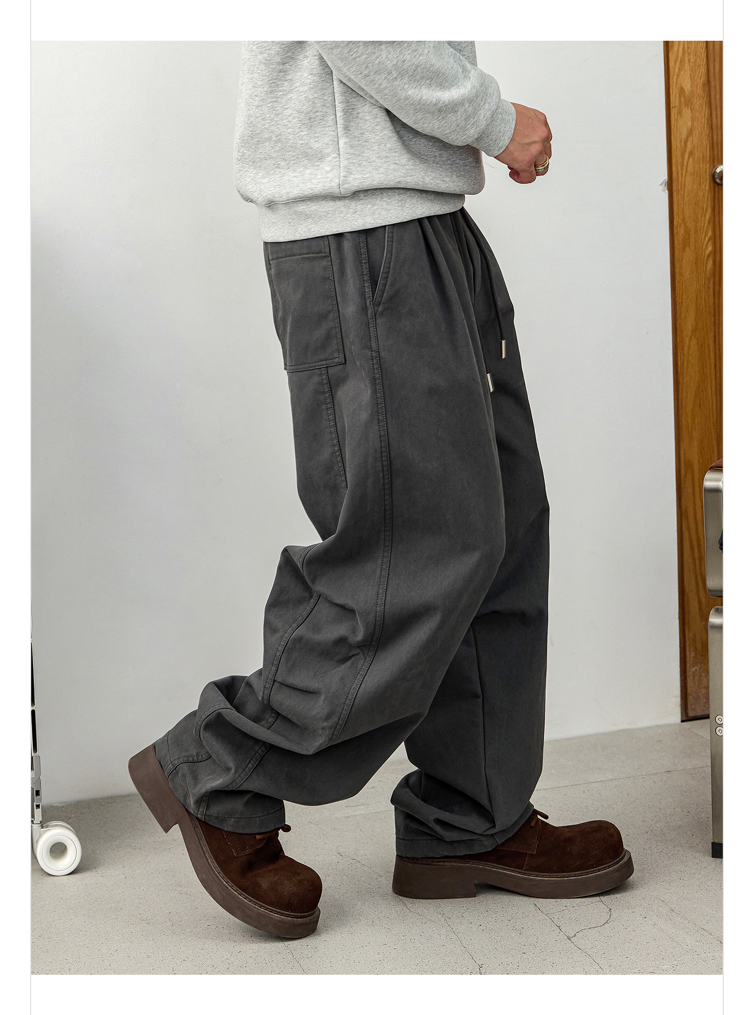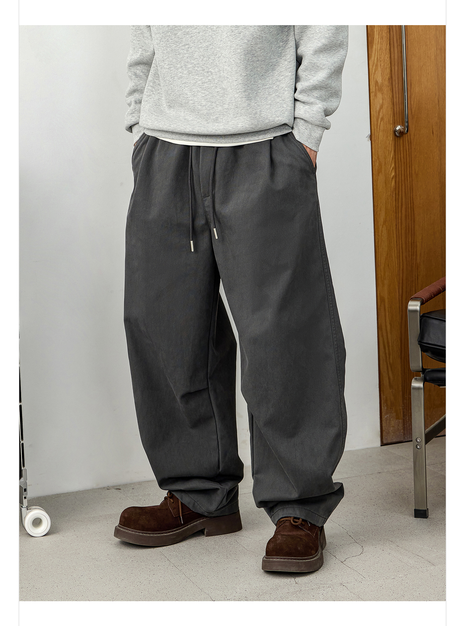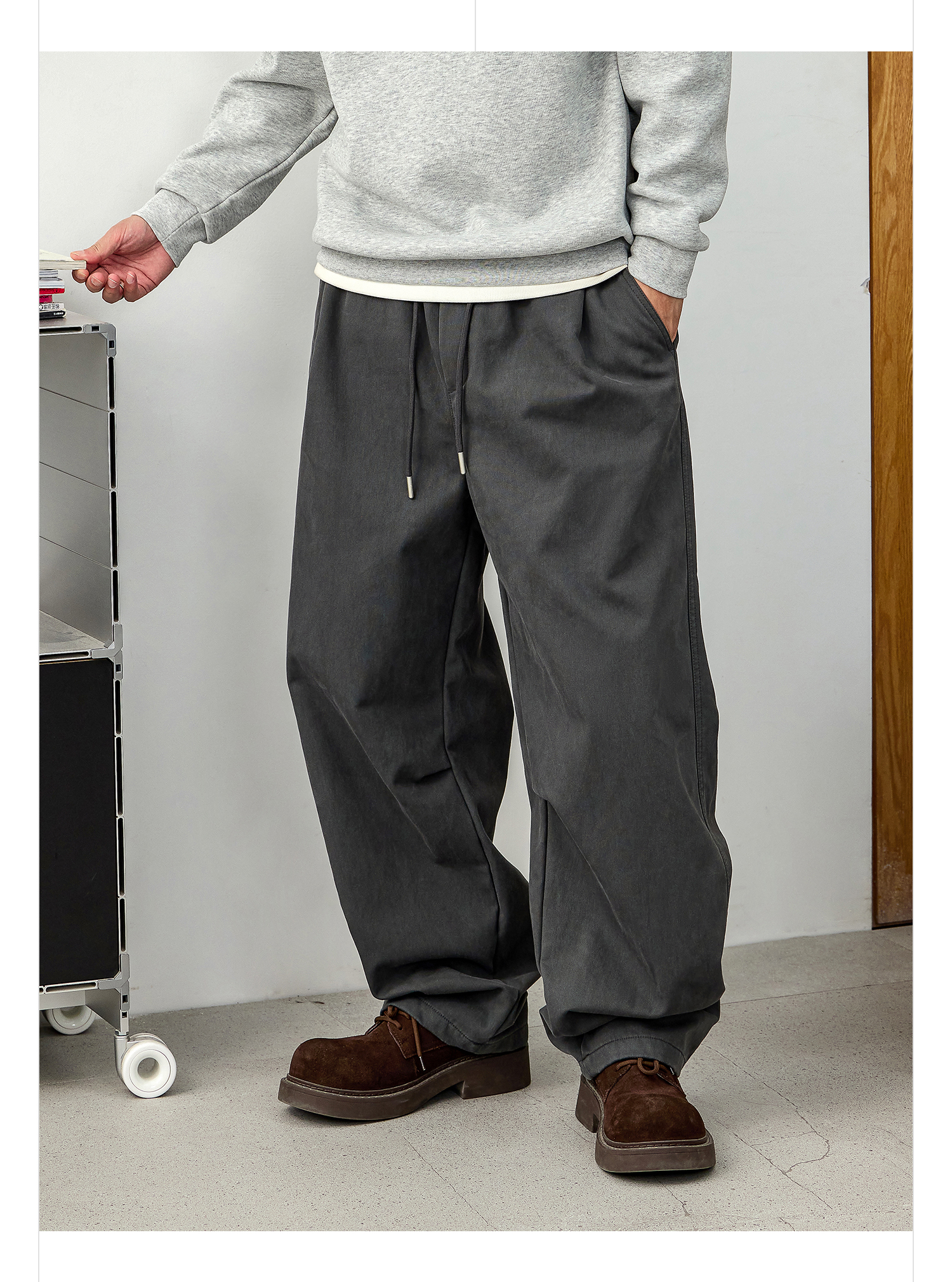 徐太浪【褶皱感 深灰色】大码休闲裤男秋冬宽松直筒阔腿裤子长裤