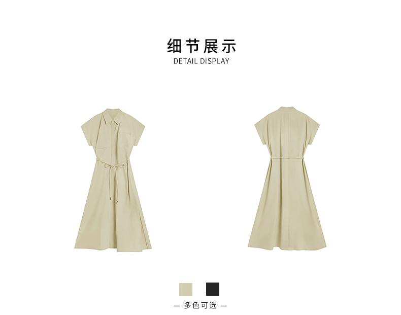 【破价】N°28 ‘遮肉裙’2025夏季新款设计师休闲翻领半袖中长裙 系带显瘦连衣裙885242L567