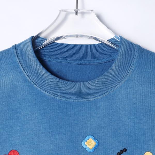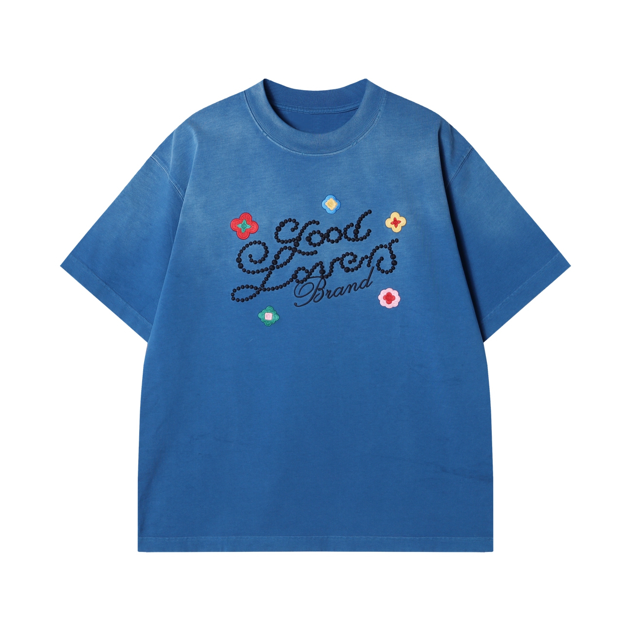 T3167夏季高级感新款美式刺绣字母花朵圆领短袖T恤百搭情侣设计感上衣
