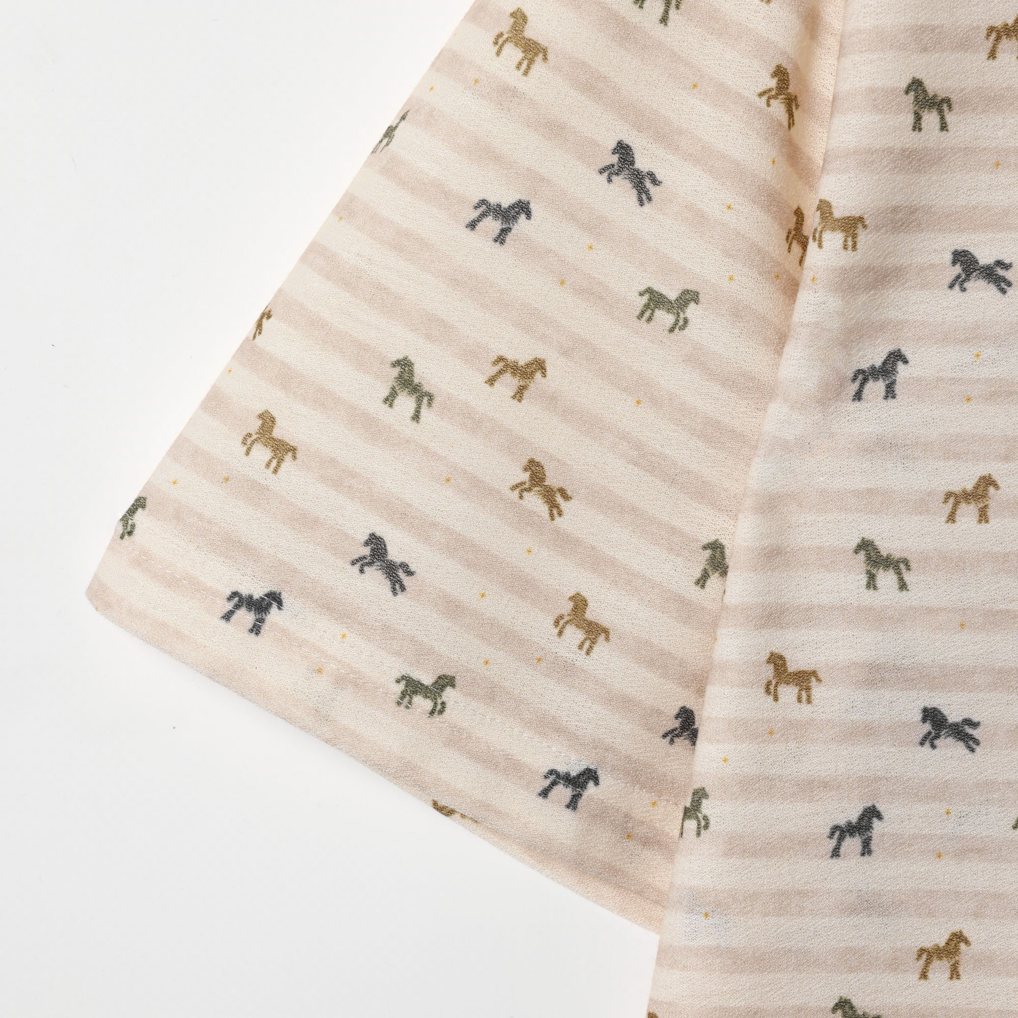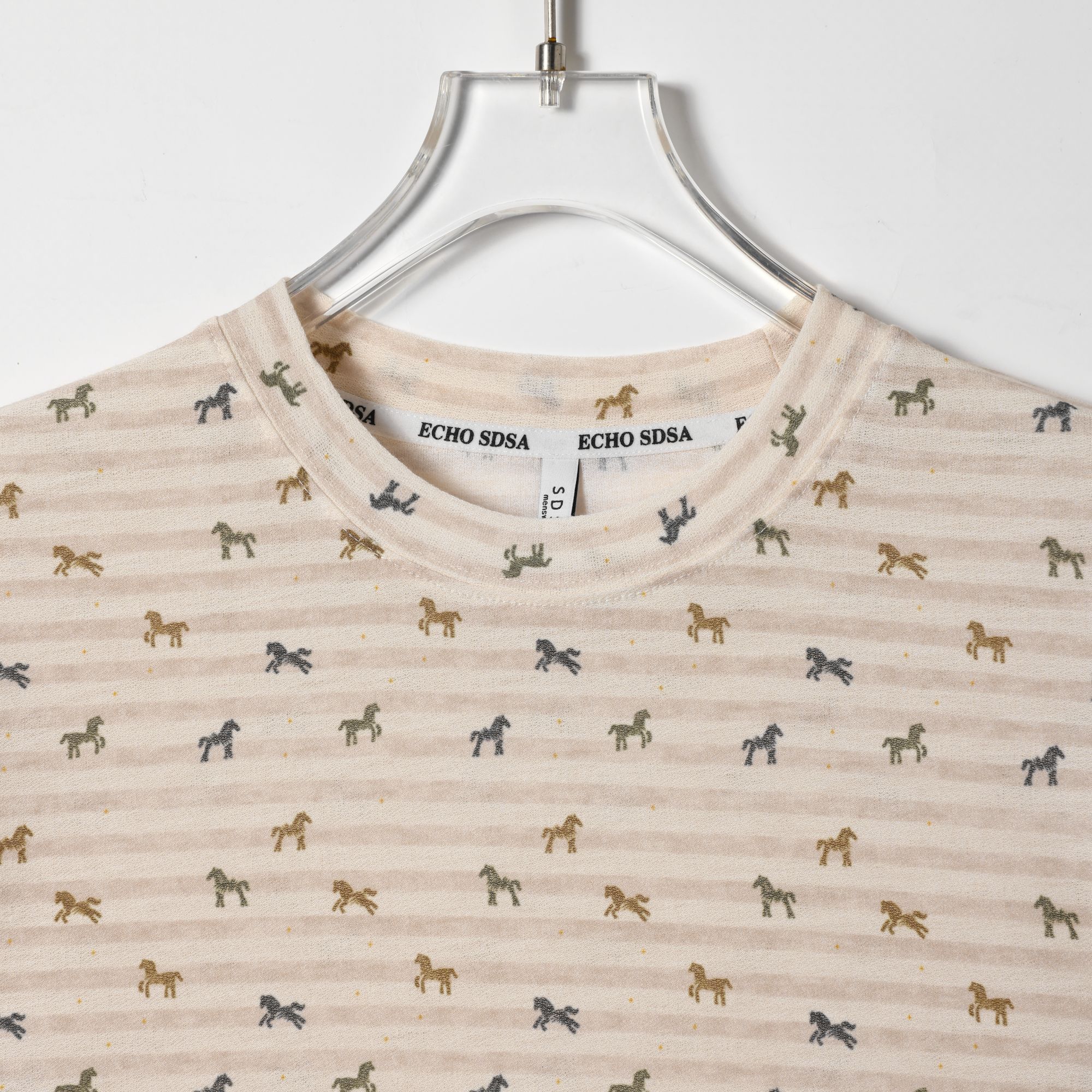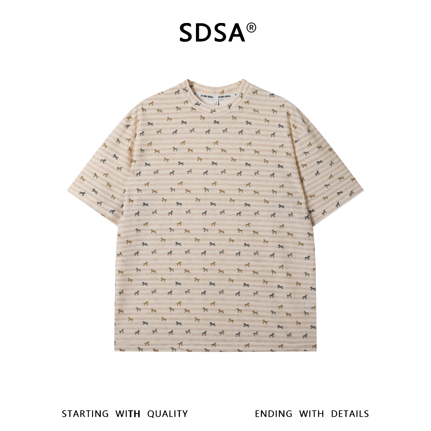 26T185SDSA男装2026新款轻奢时尚撞色条纹满印小马设计圆领短袖T恤百搭