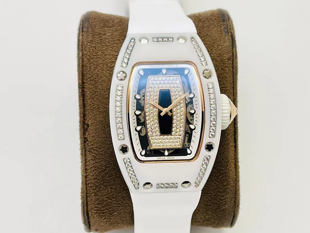 理查**勒 自动机械机芯 镶钻表盘 白色表盘 陶瓷表壳