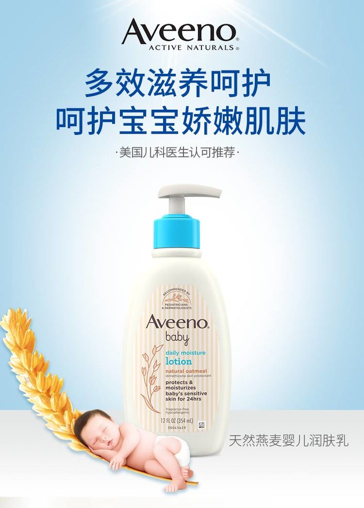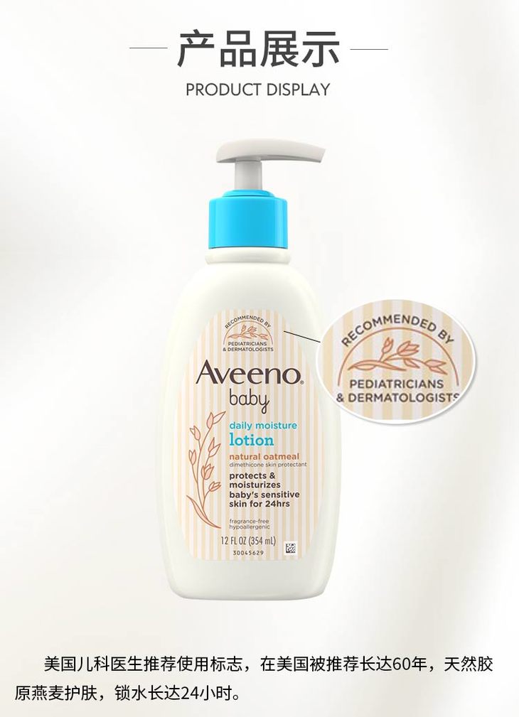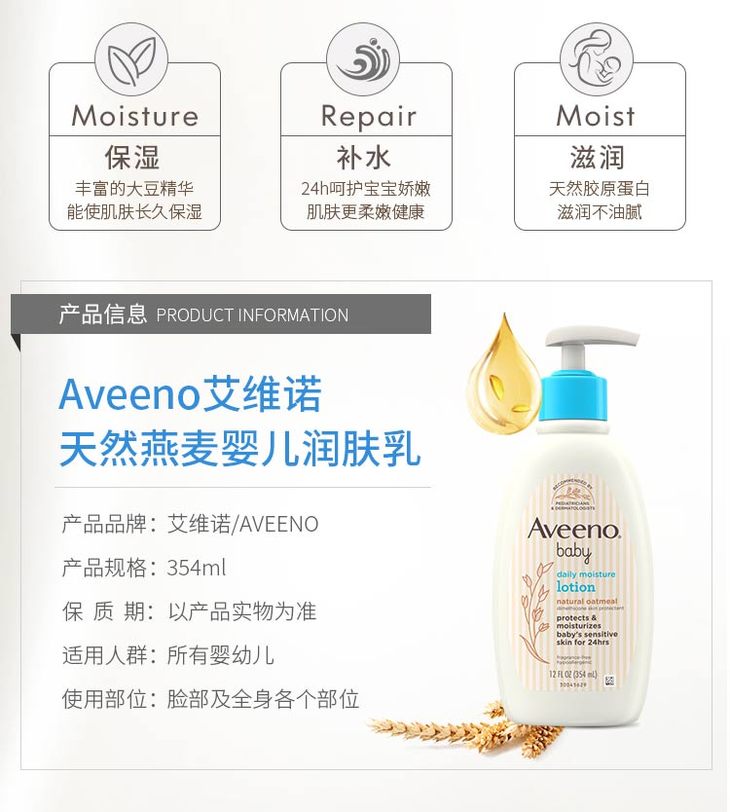 【一般贸易】新包装!美国艾维诺 Aveeno婴儿保湿燕麦润肤乳液宝宝燕麦乳液354ml