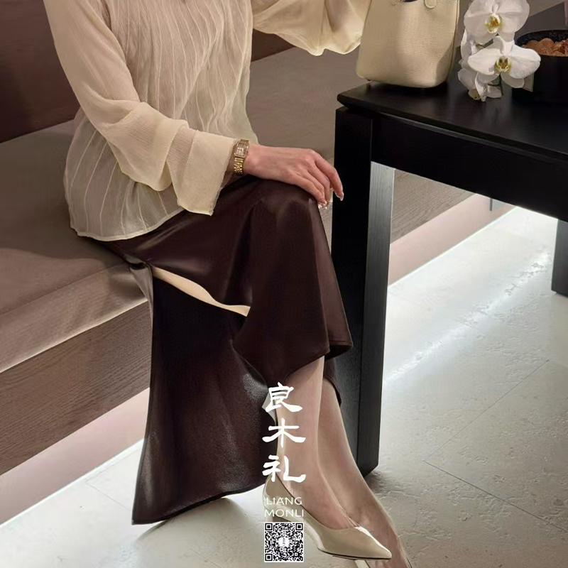 良木礼醋酸缎面醋酸高腰半身裙(TW053)