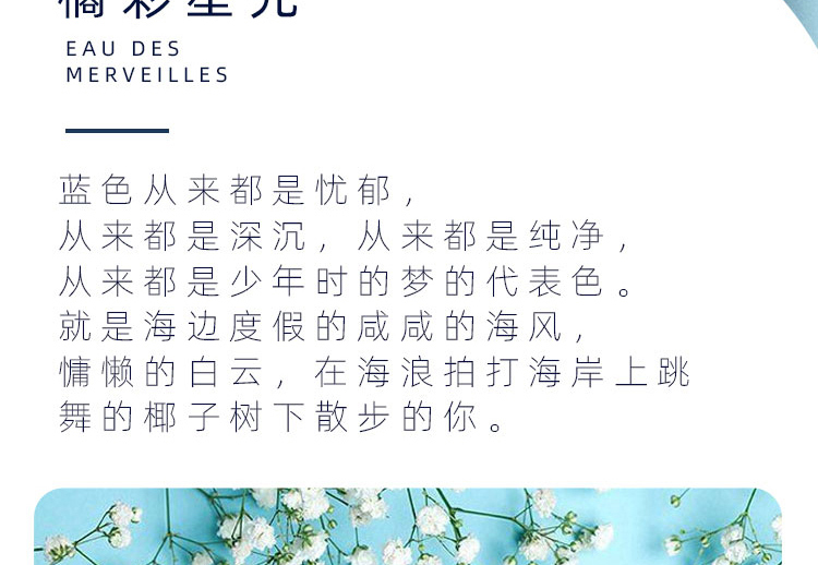 一款蕴含木香和龙涎香芬芳的淡香水,融合了矿物的气息。这是一段潜进橘彩星光湛蓝海水深处的旅程。