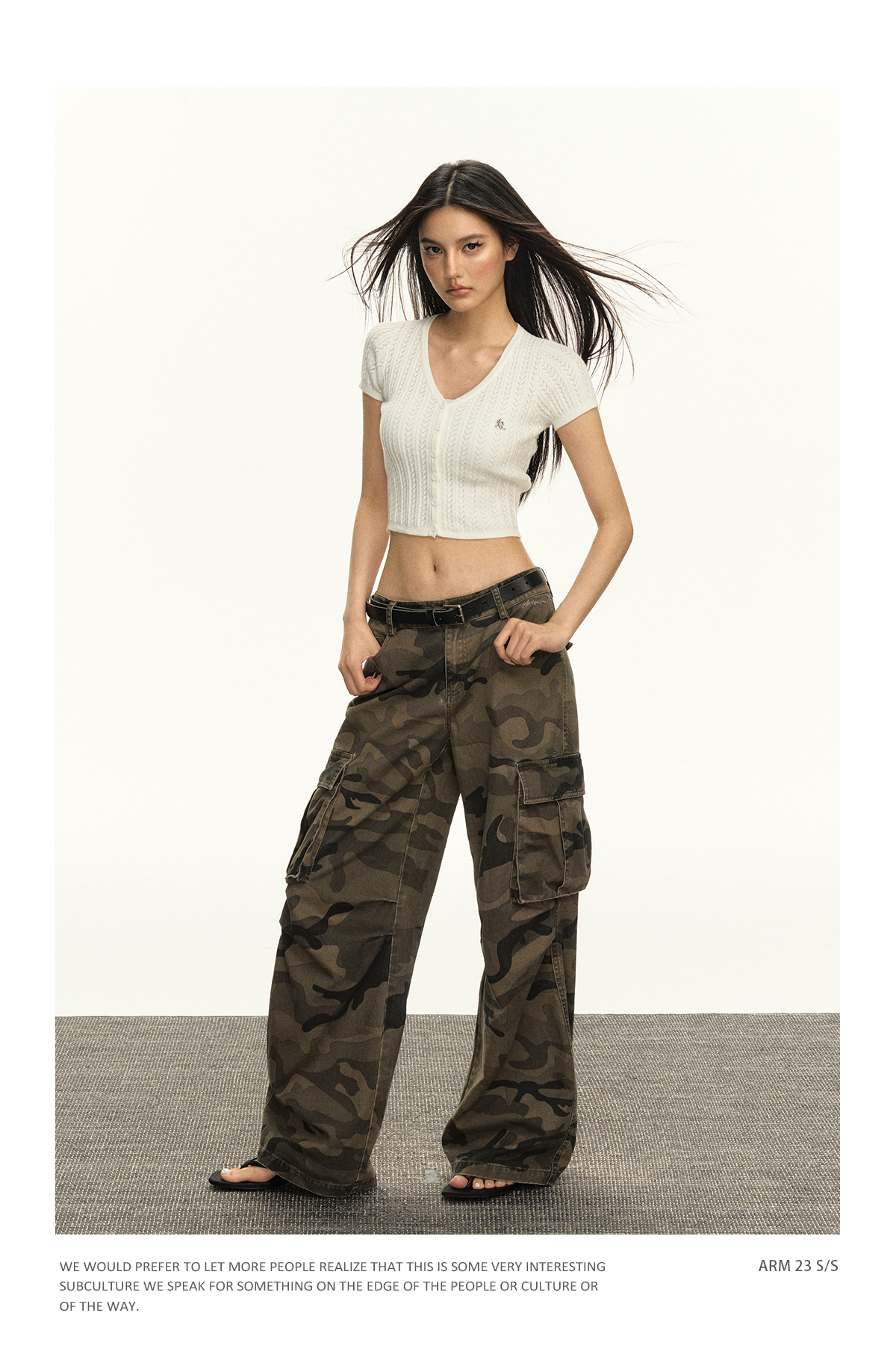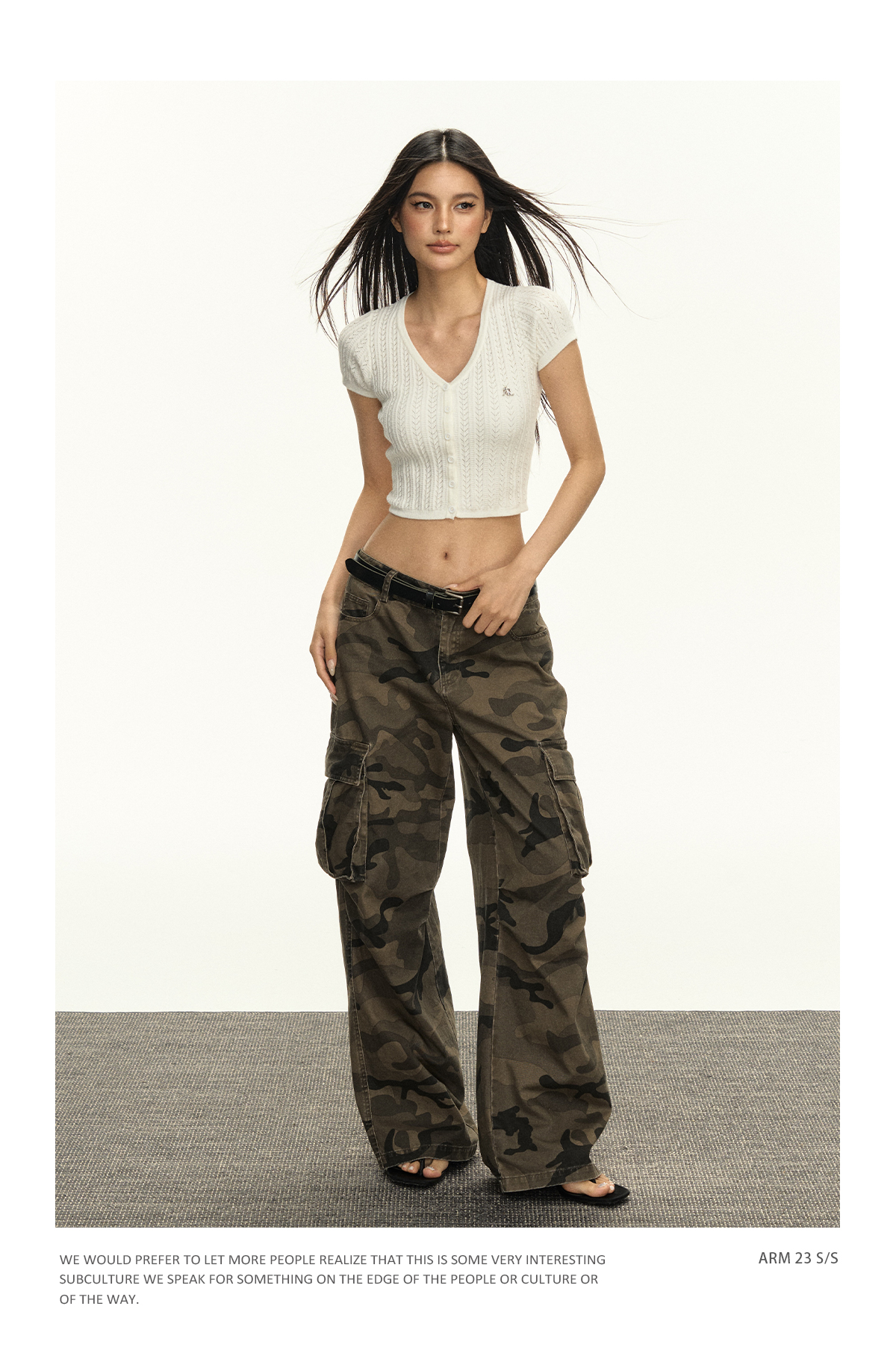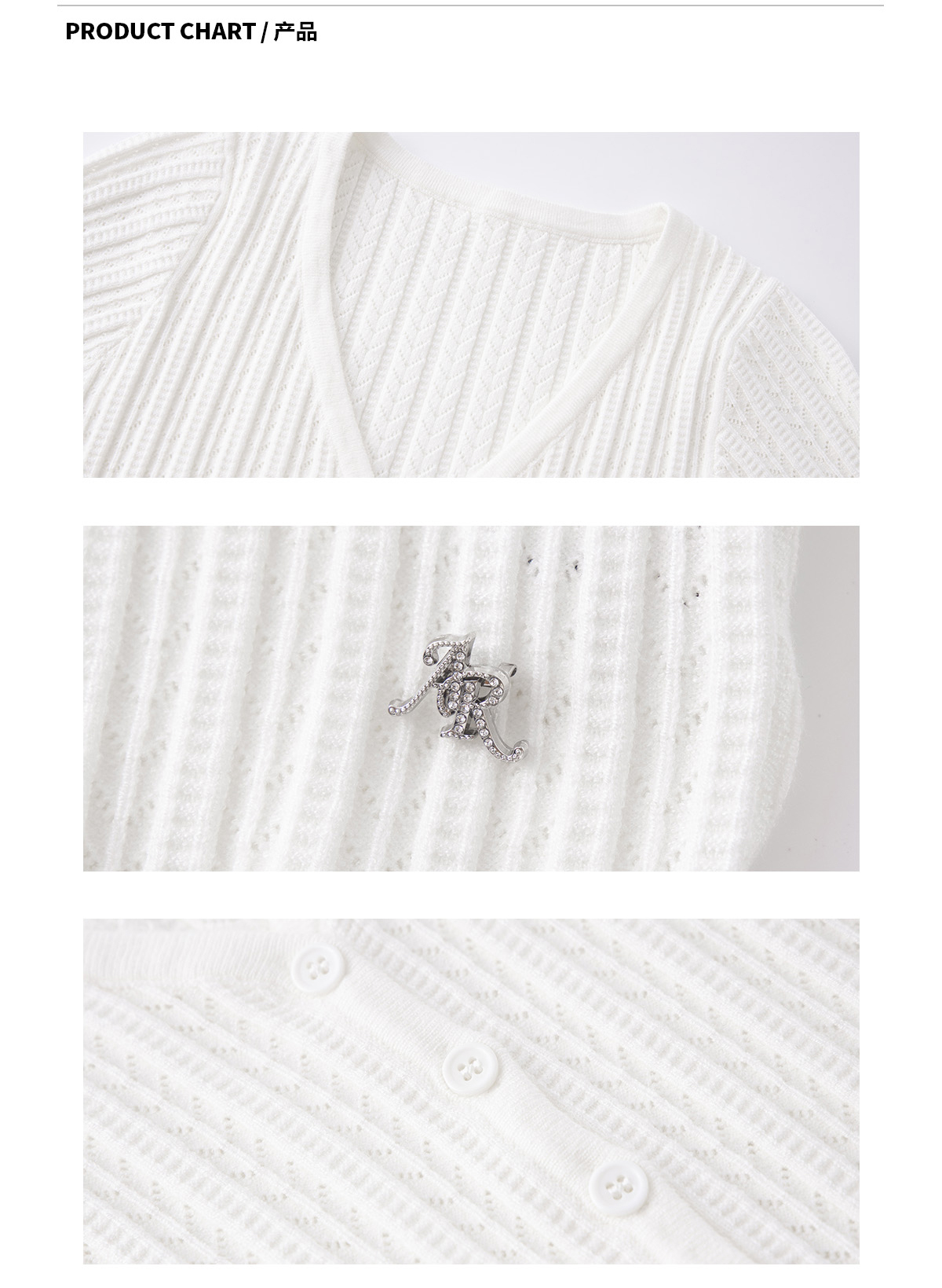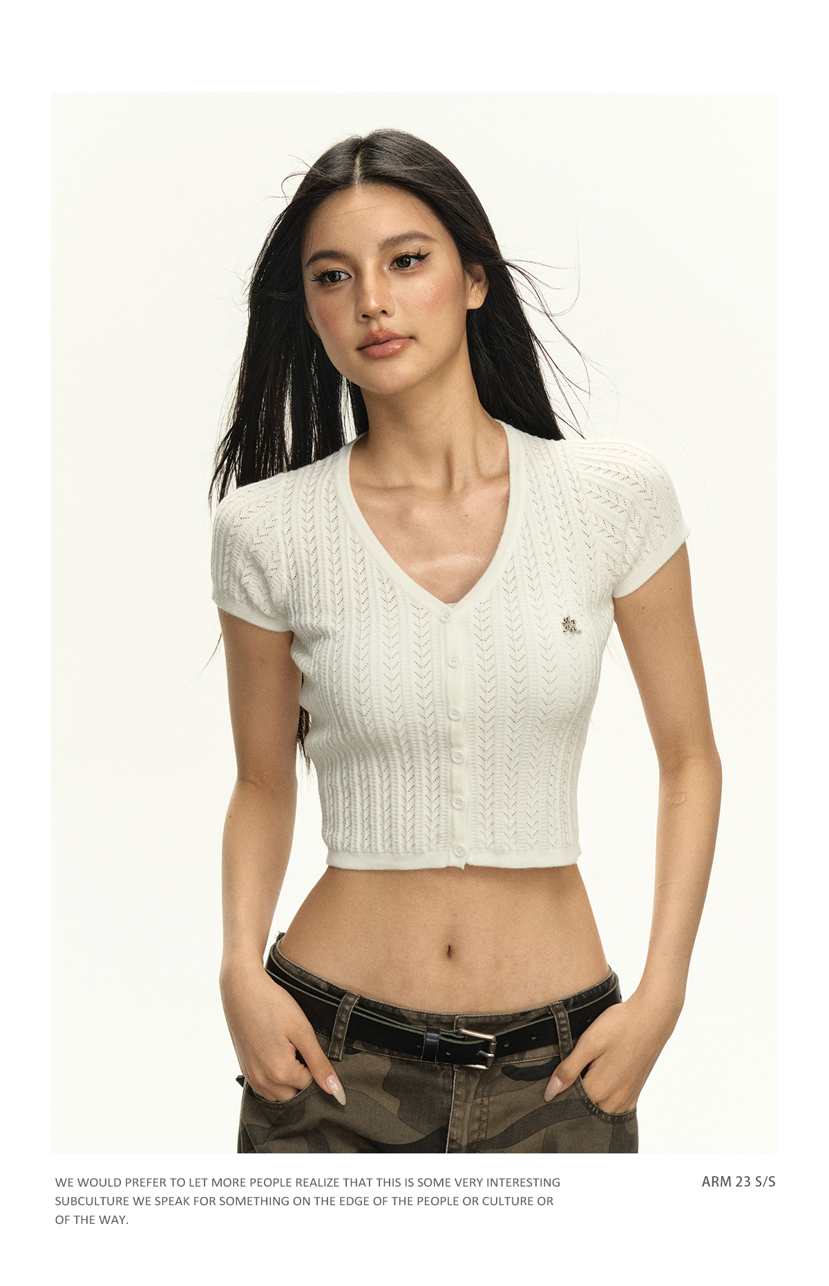 Ariseism美式复古设计感提花针织短袖短款针织开衫女早秋新款上衣