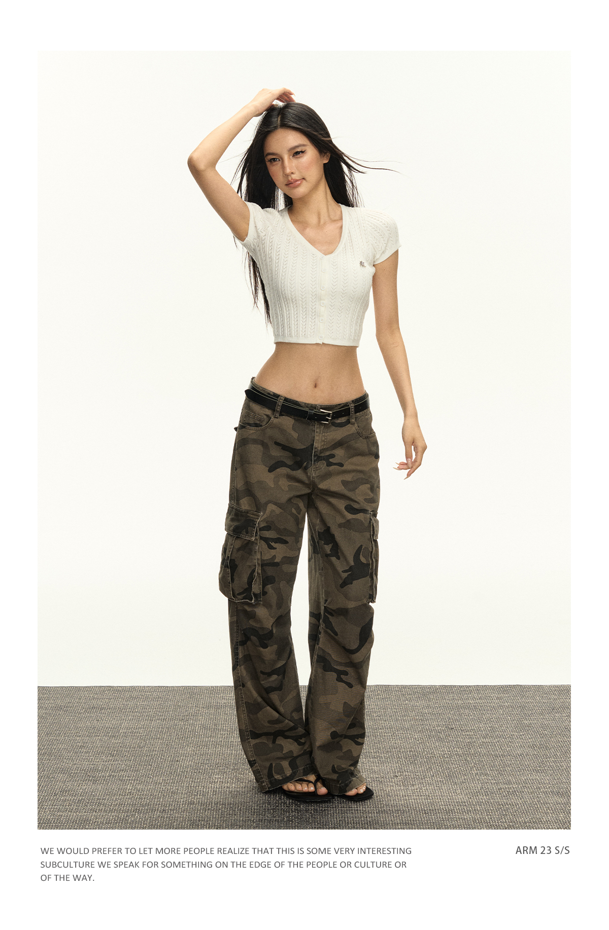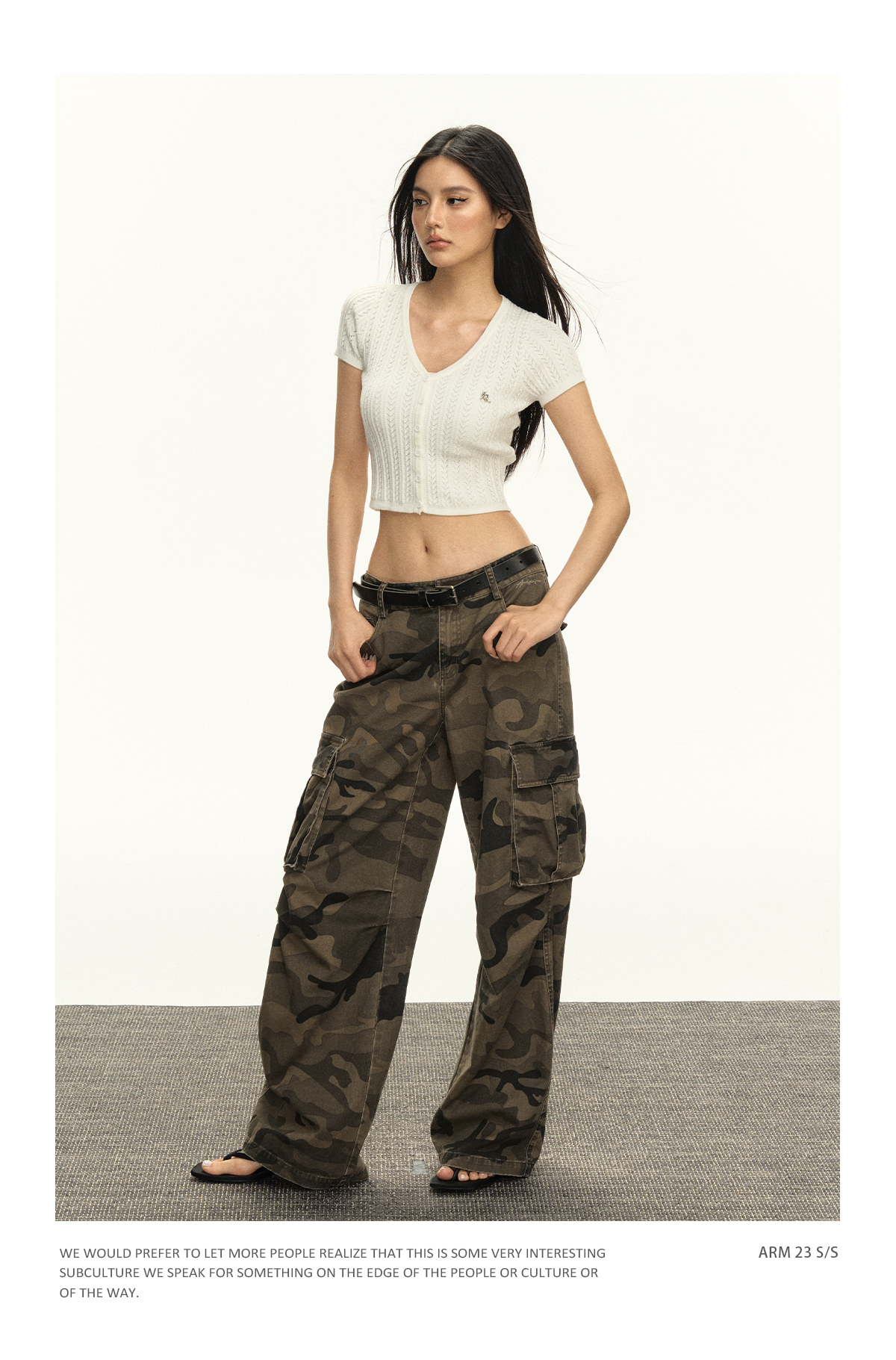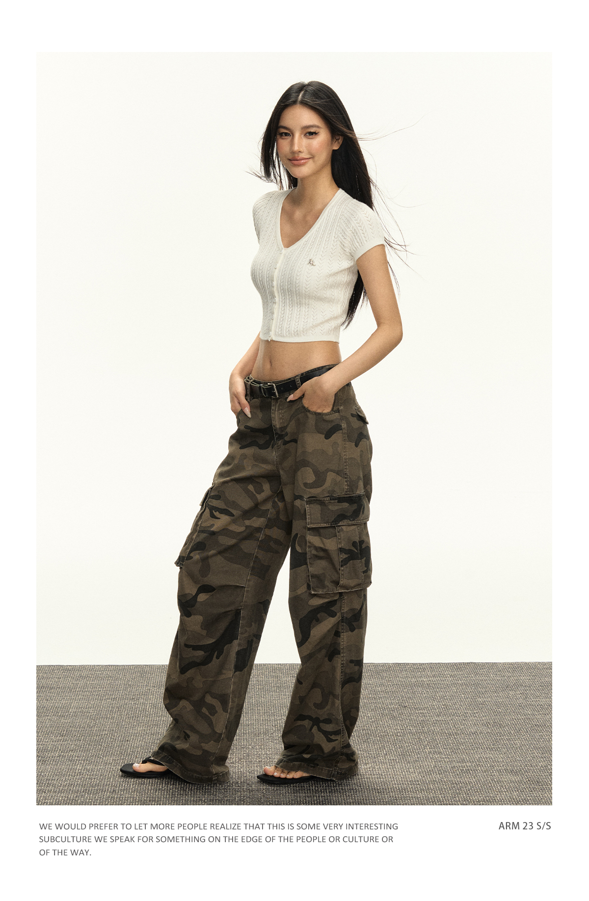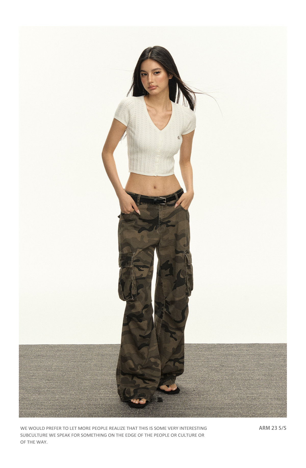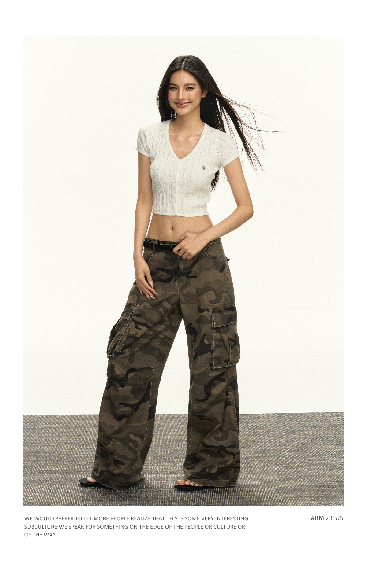 Ariseism美式复古设计感提花针织短袖短款针织开衫女早秋新款上衣