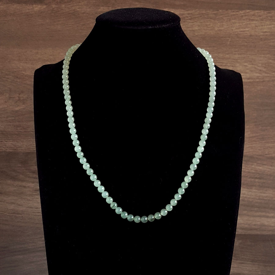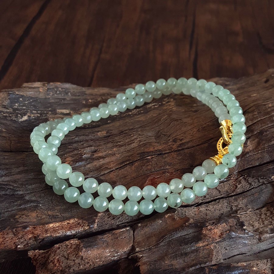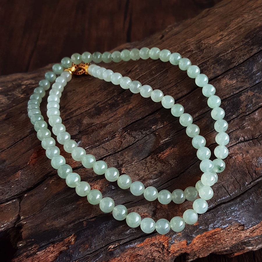 名称 | 天然细腻冰种飘蓝花约6.5MM翡翠圆珠项链 |