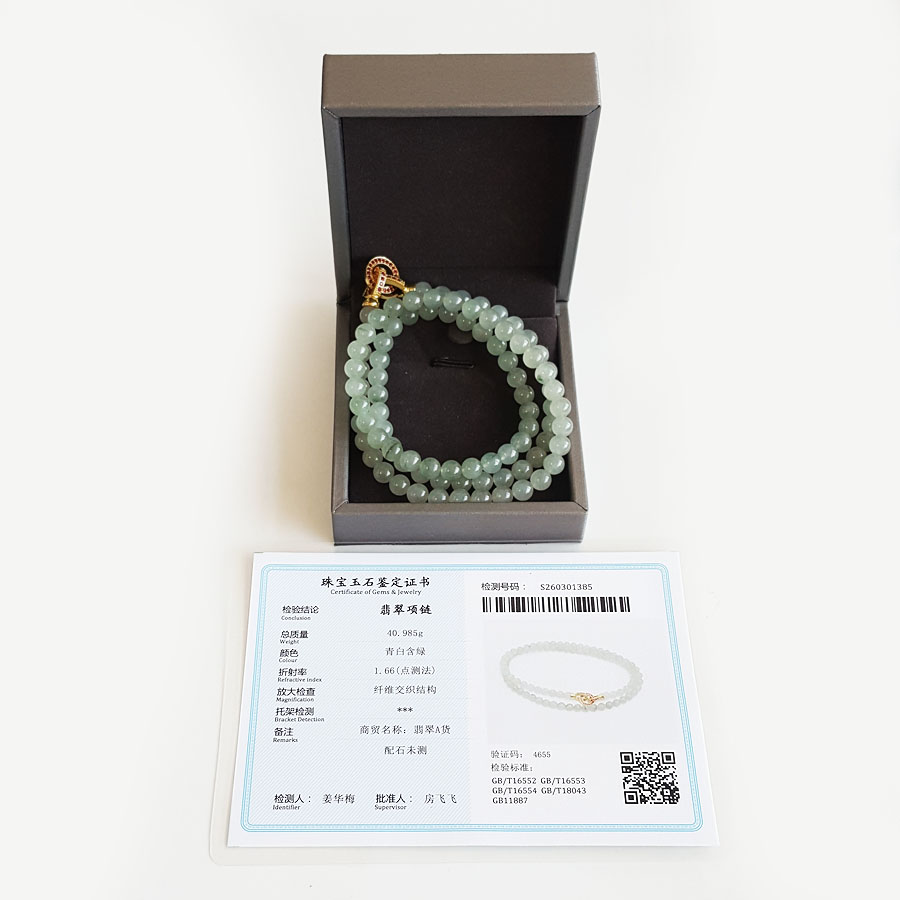 【天然正品】A货翡翠天然细腻冰种飘蓝花约6.5MM翡翠圆珠项链 链长:56CM 250326NJS13