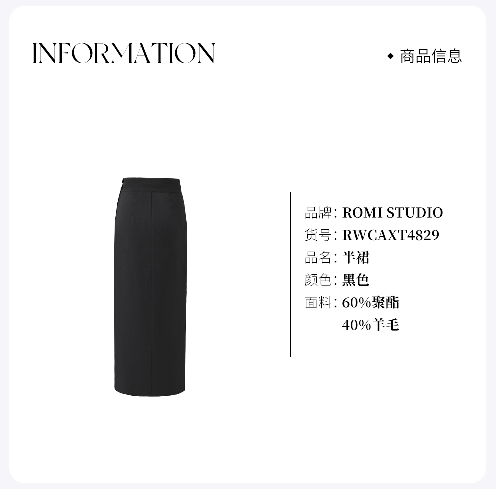 ROMI STUDIO“智性优雅 ”高密精仿羊毛抗皱有型中古半裙RWCAXT4829