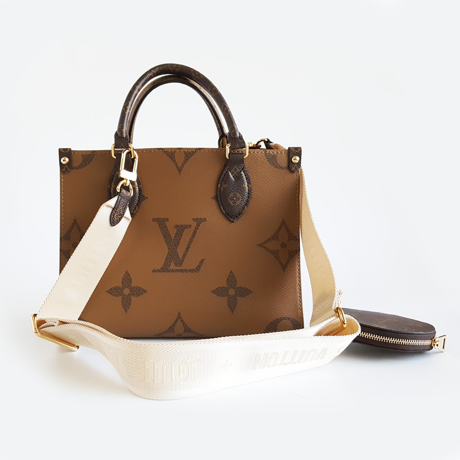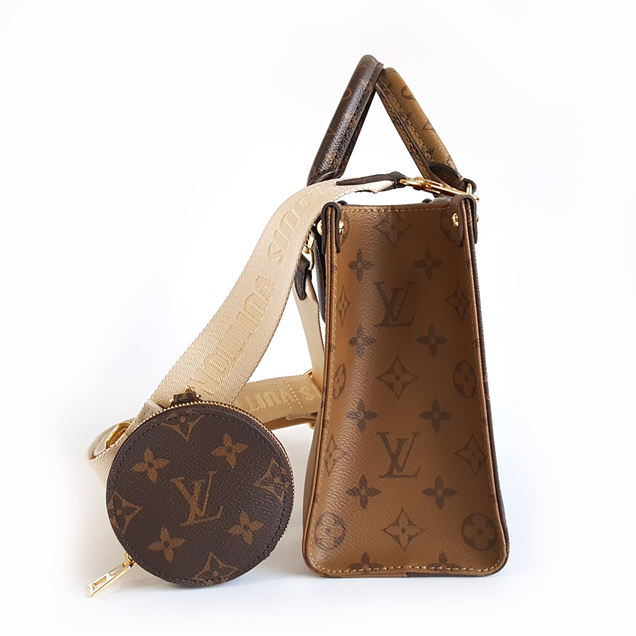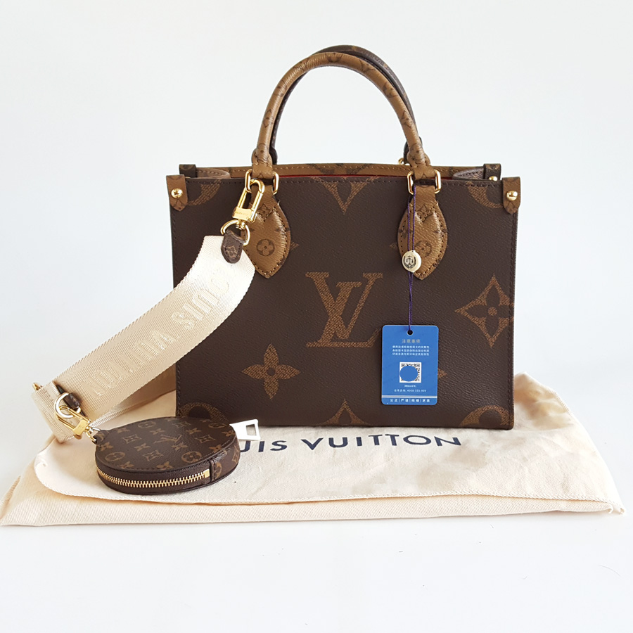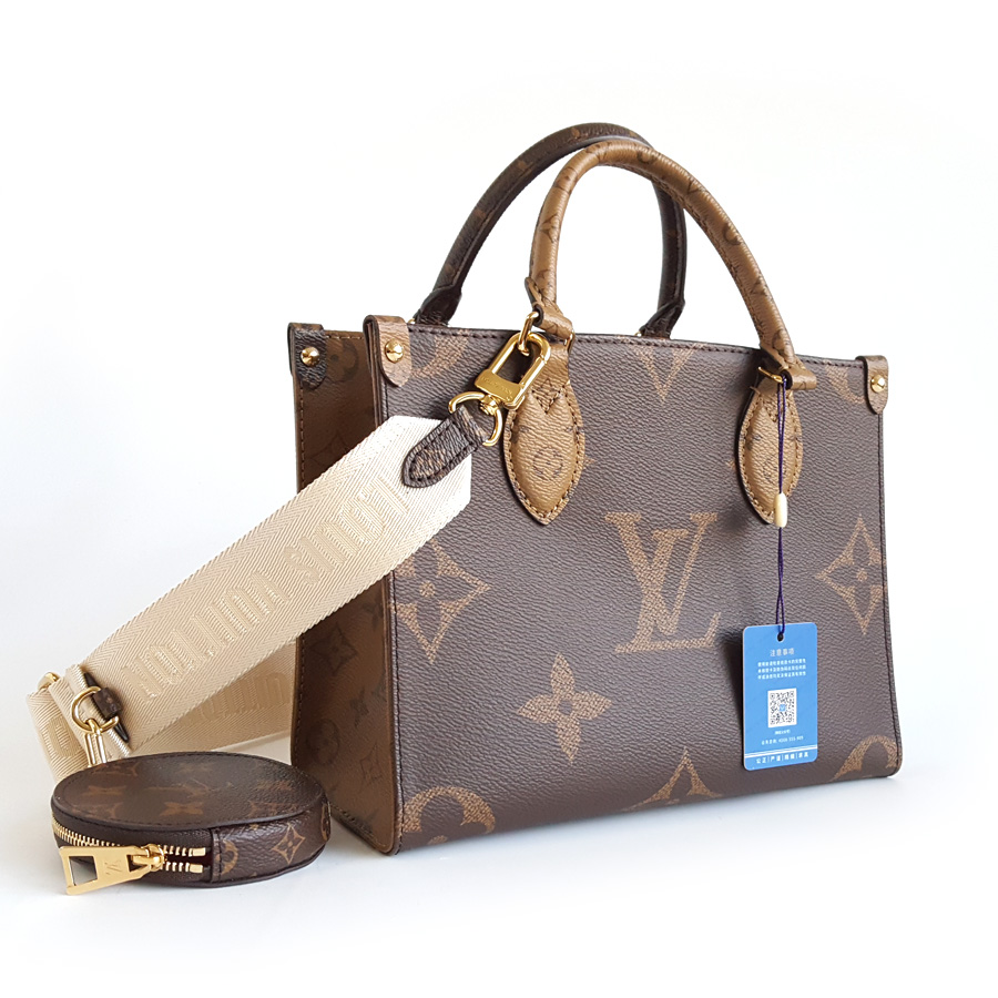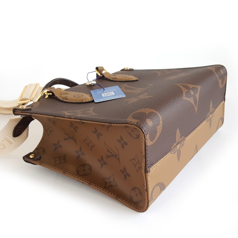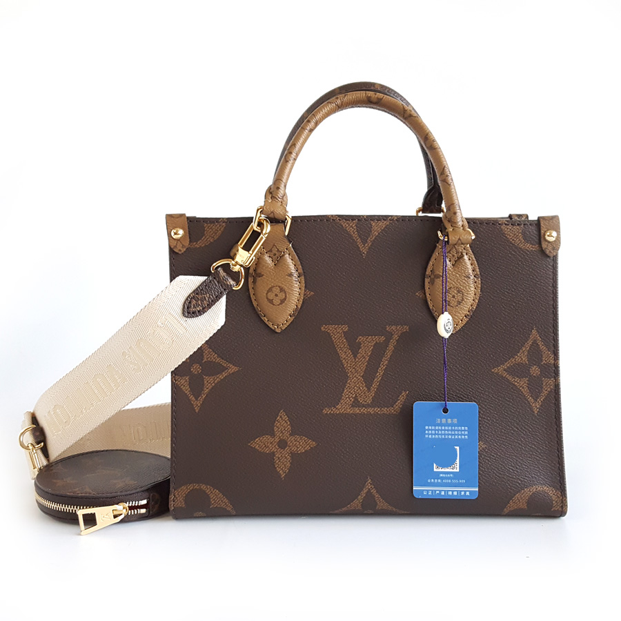 【98新】LV路易威登onthegoM46373小号棕色老花宽肩带onthego托特手提单肩包女士 121225AK09