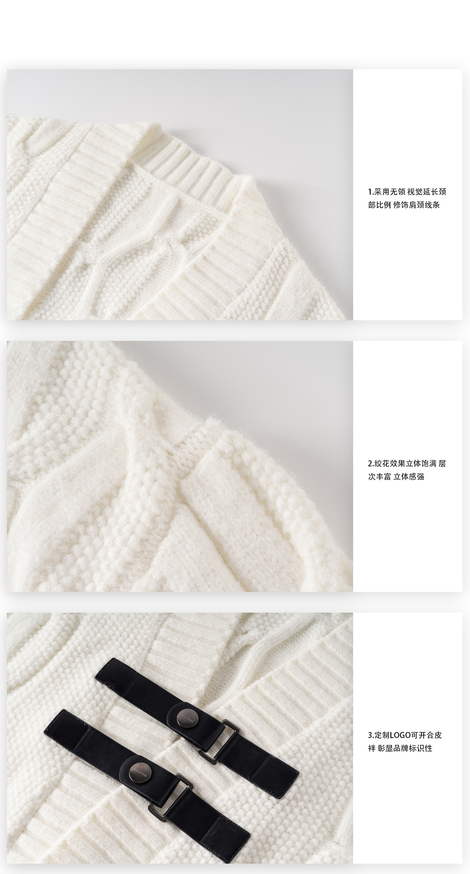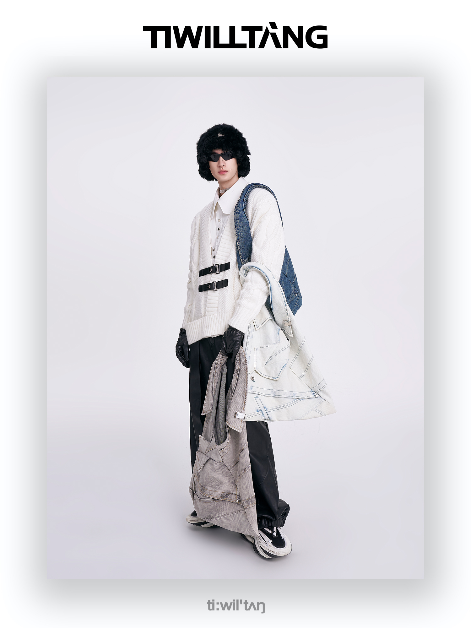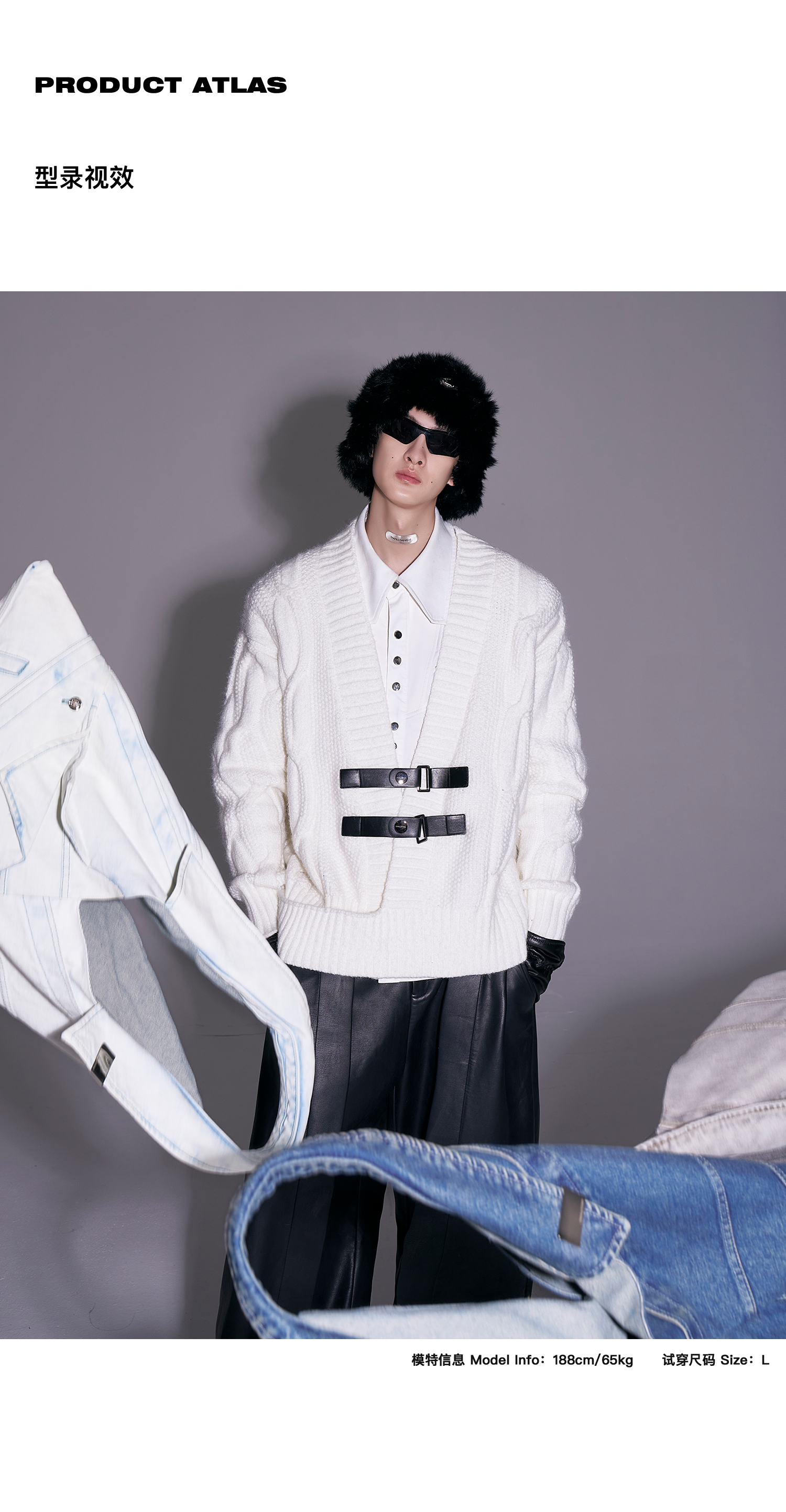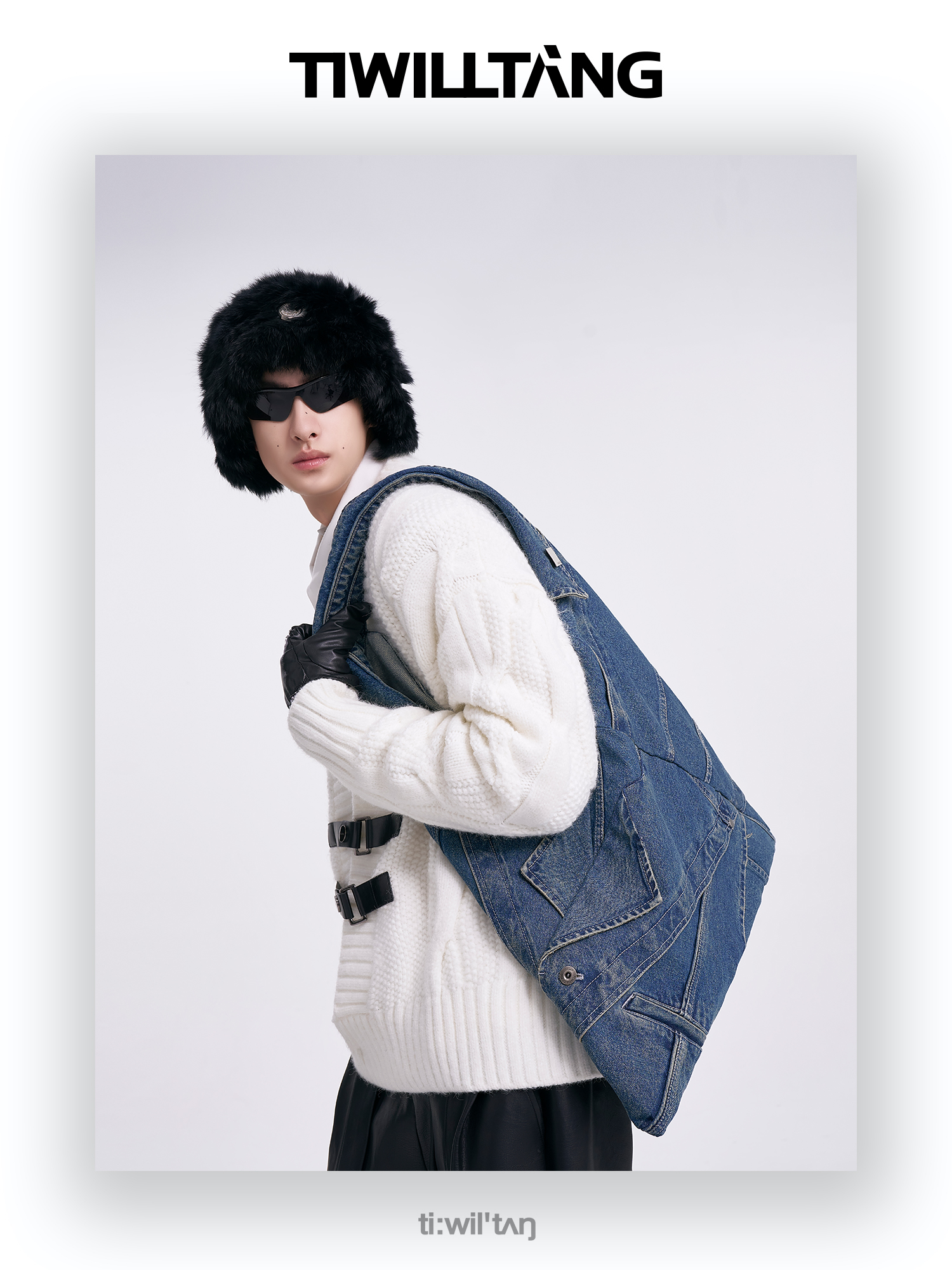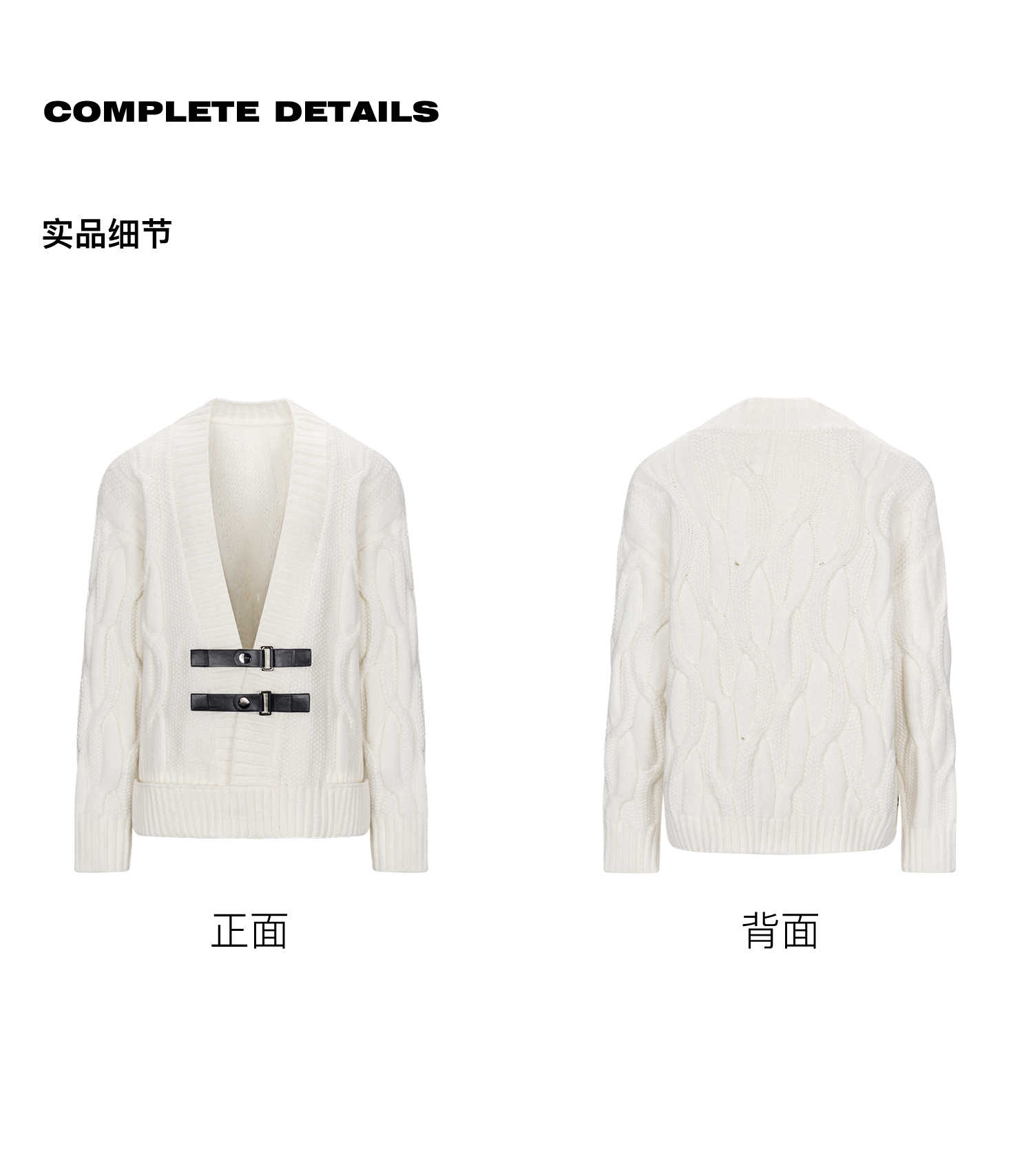 启世录TIWILLTANG“绞屿檩壑”螺纹拼接宽松廓版绞花针织皮襻开衫