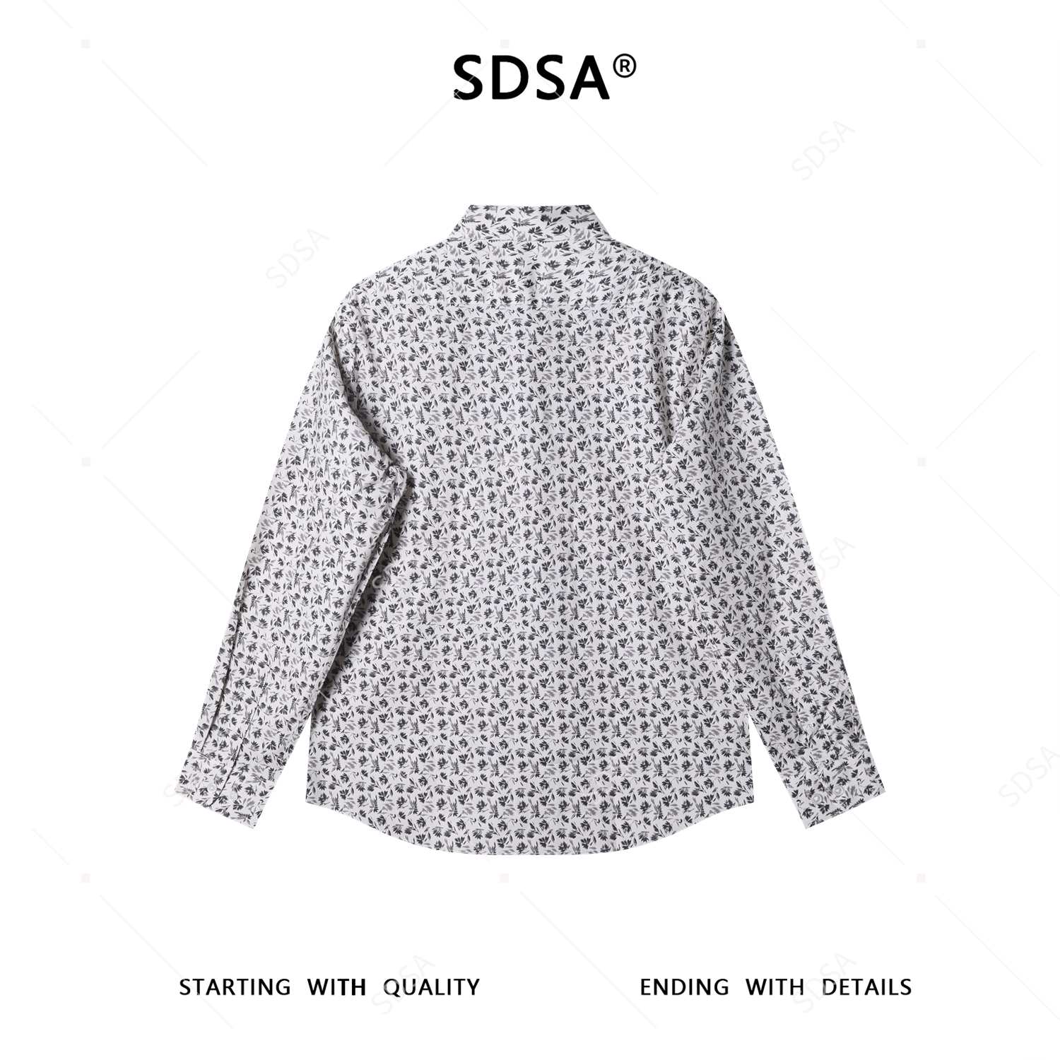 1553SDSA男士秋冬新款痞帅男装潮牌简约植物花卉长袖衬衫百搭舒适衬衣