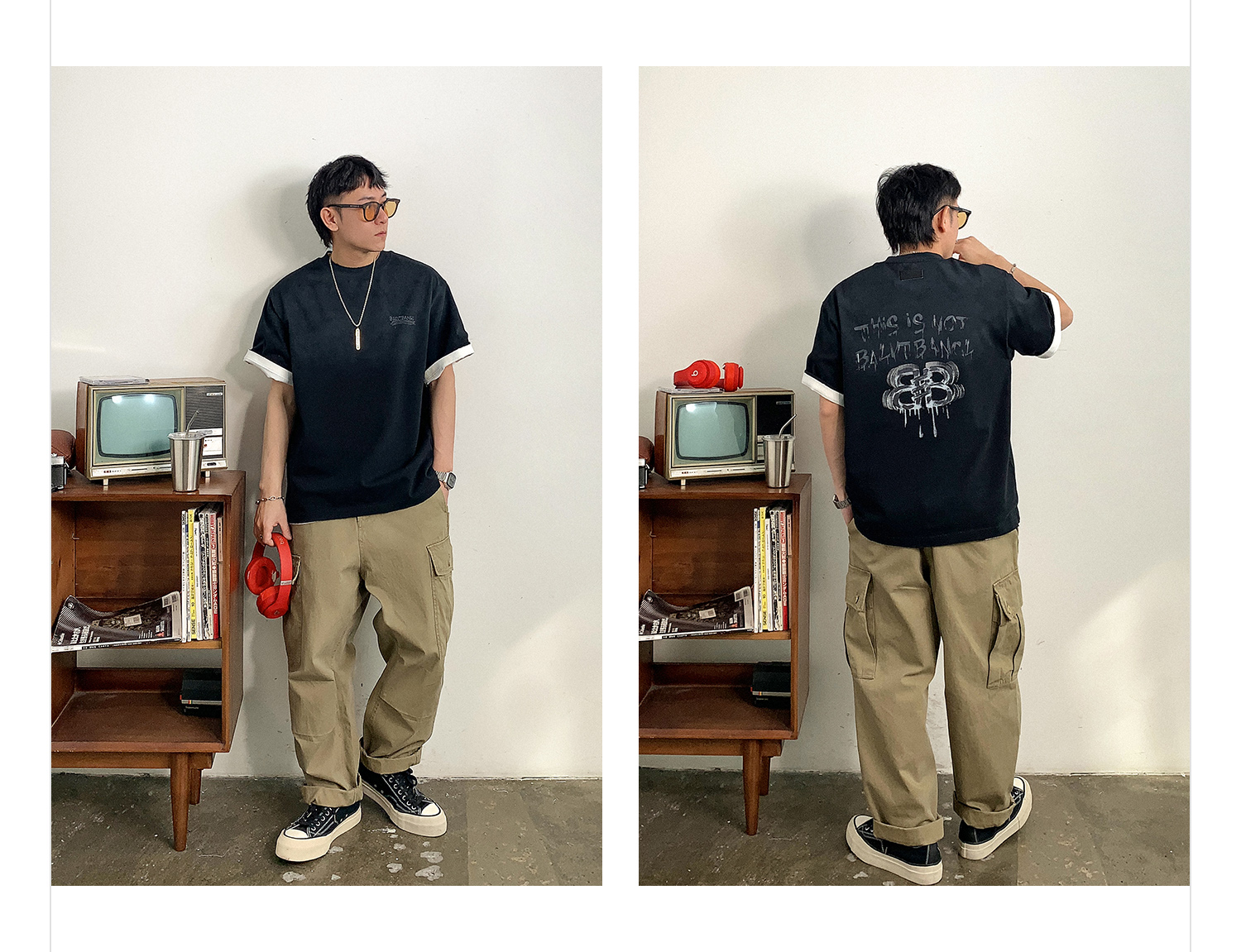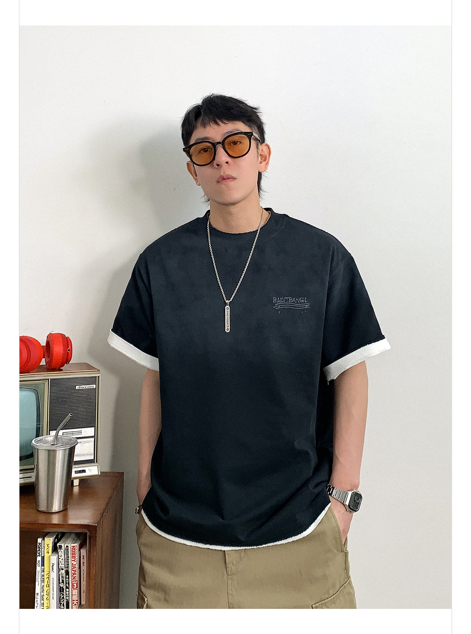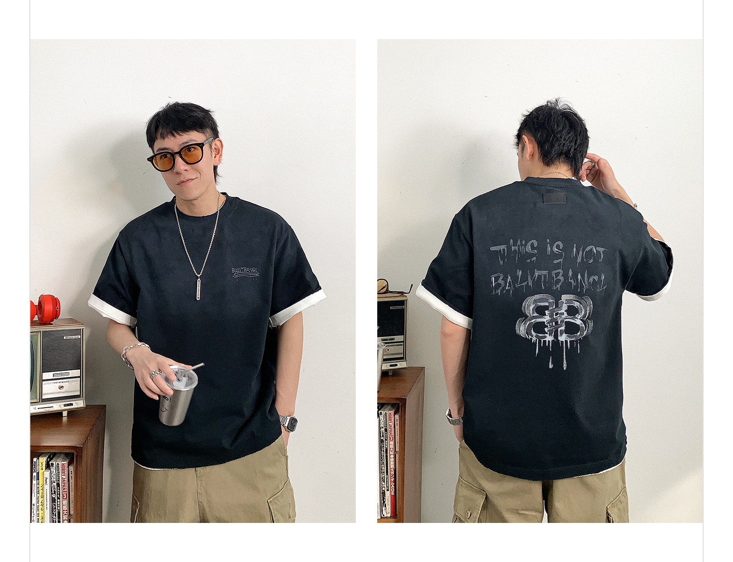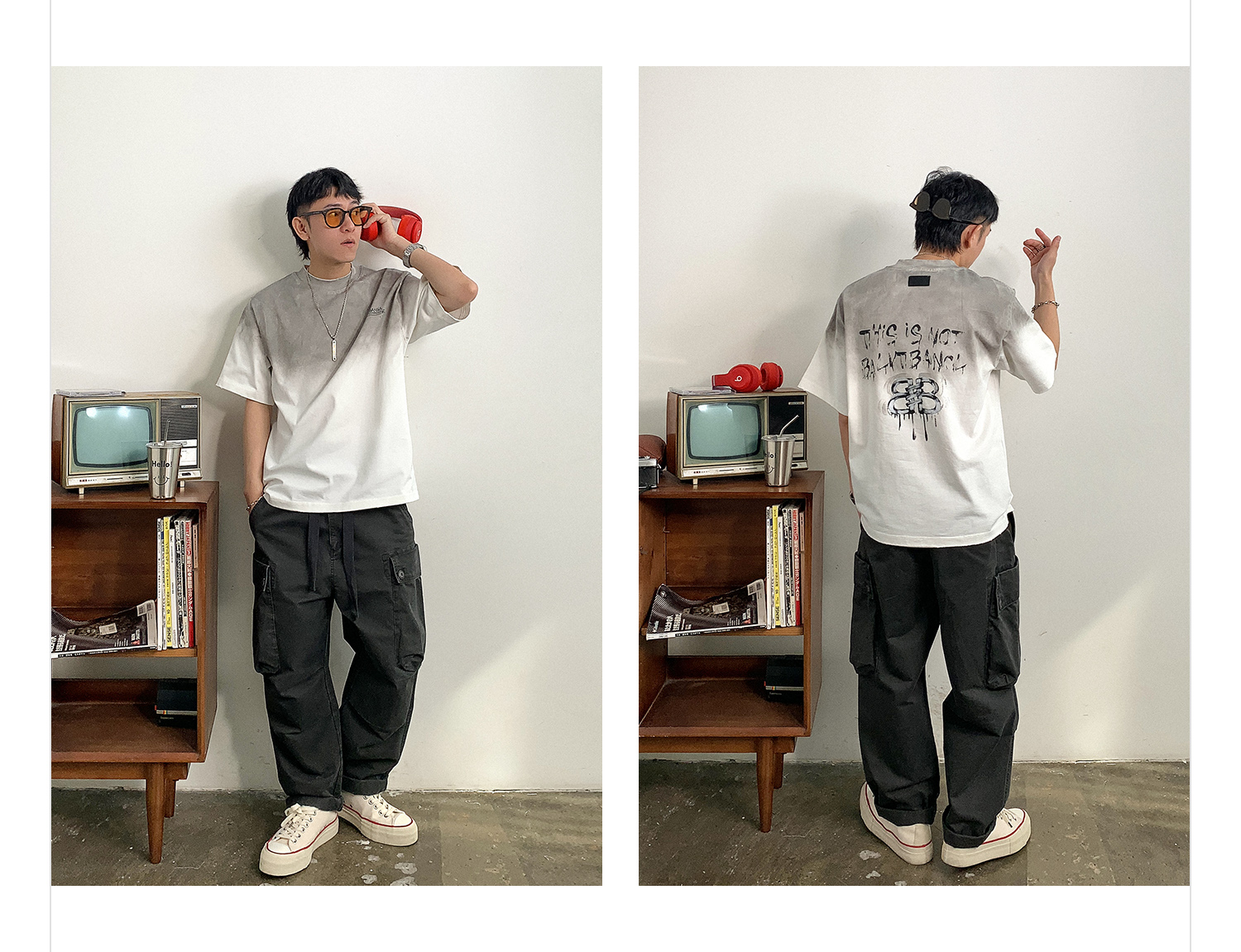 徐太浪设计感涂鸦渐变色短袖T恤男春季新款宽松内搭半袖体恤上衣