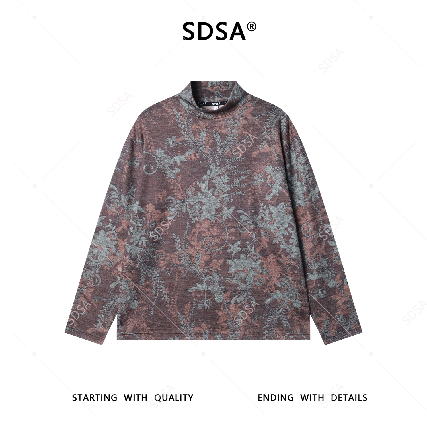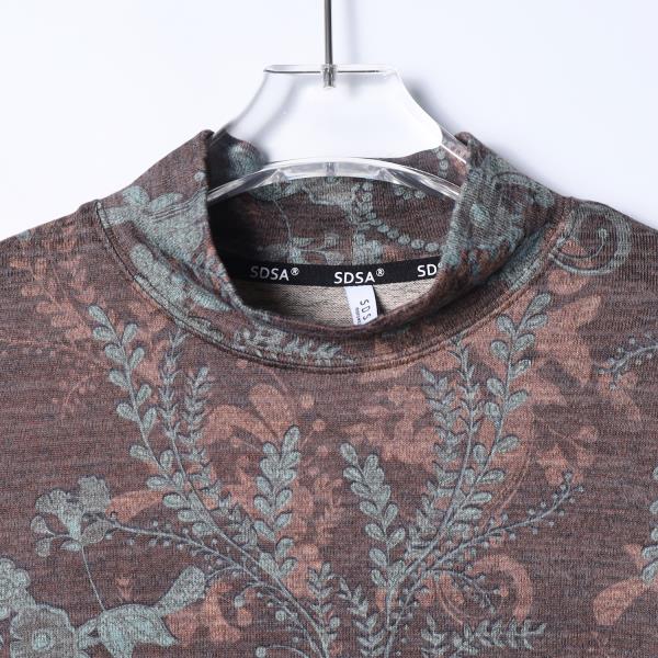 T5093SDSA男士秋冬新款痞帅男装简约撞色植物花卉立领长袖T恤百搭时尚