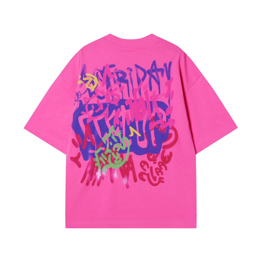 T1447夏季新款时尚涂鸦印花男女同款短袖百搭潮流休闲上衣宽松T恤
