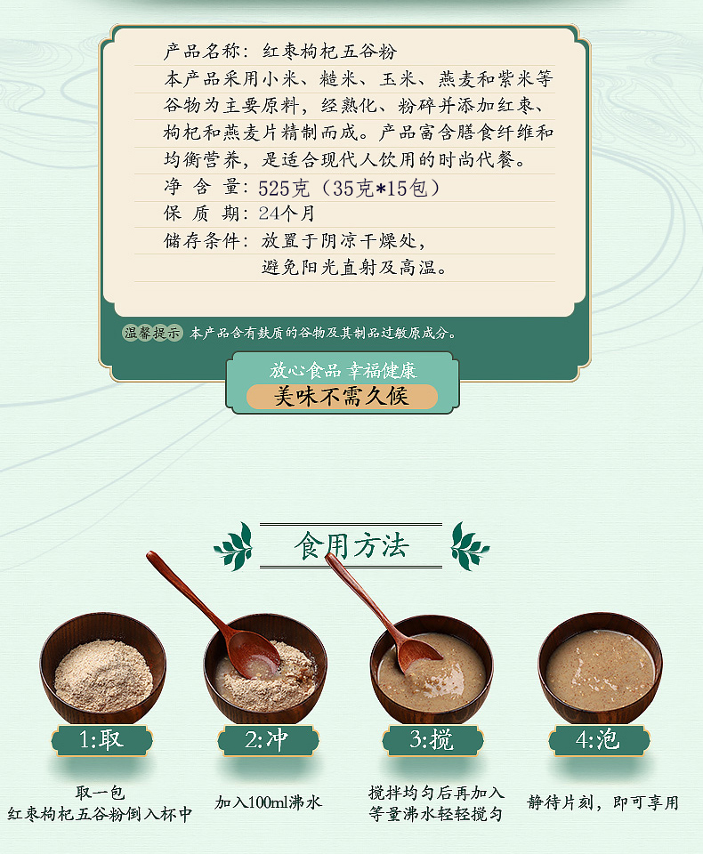 红枣枸杞五谷粉袋装 525克 15包/袋