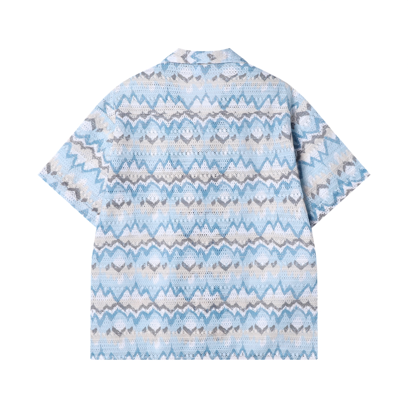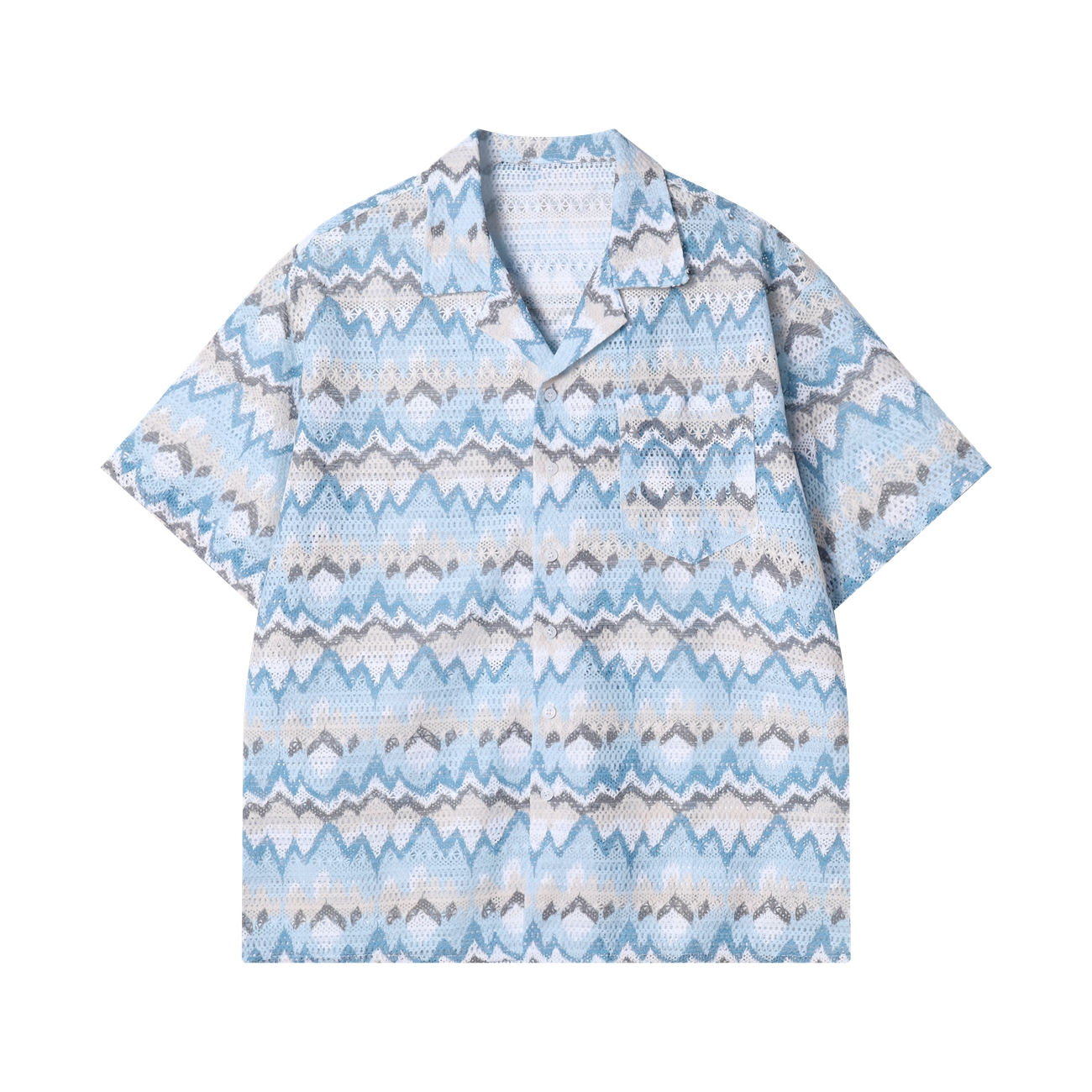 SC13夏季高级感新款美式复古度假风条纹镂空短袖衬衫百搭潮流衬衣