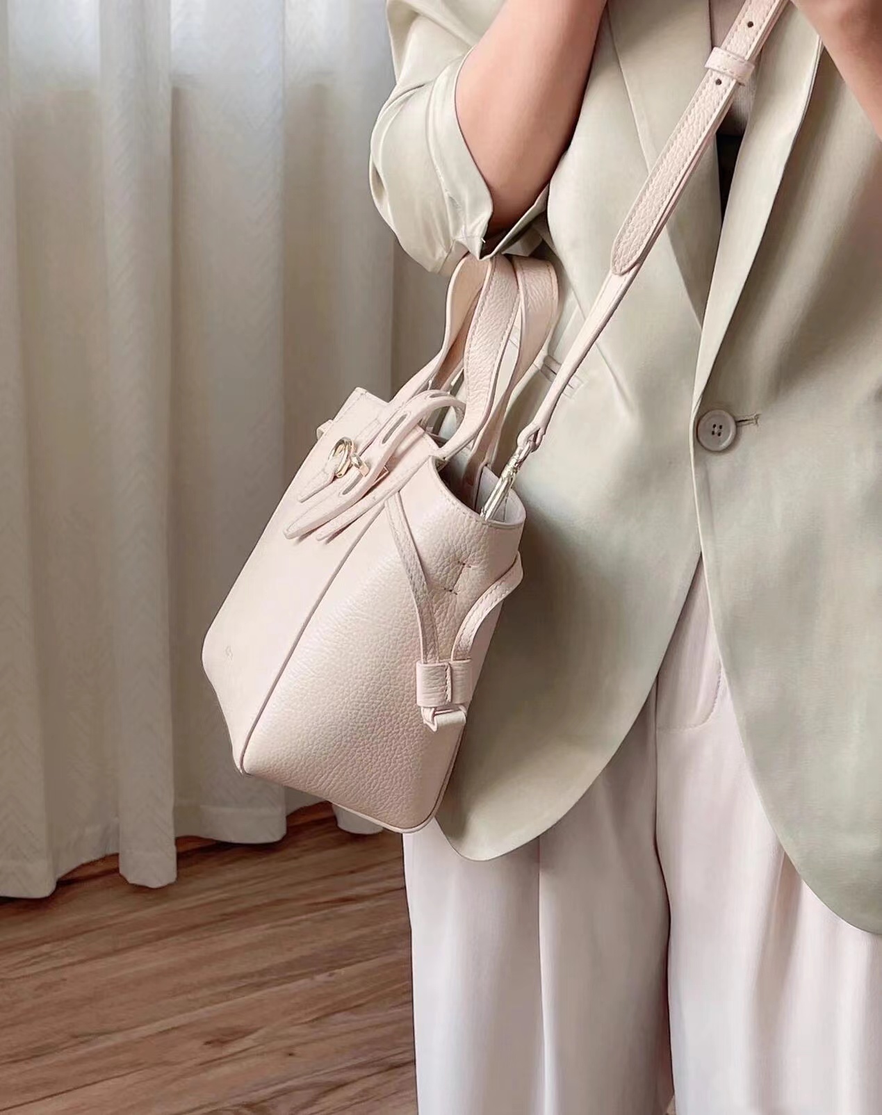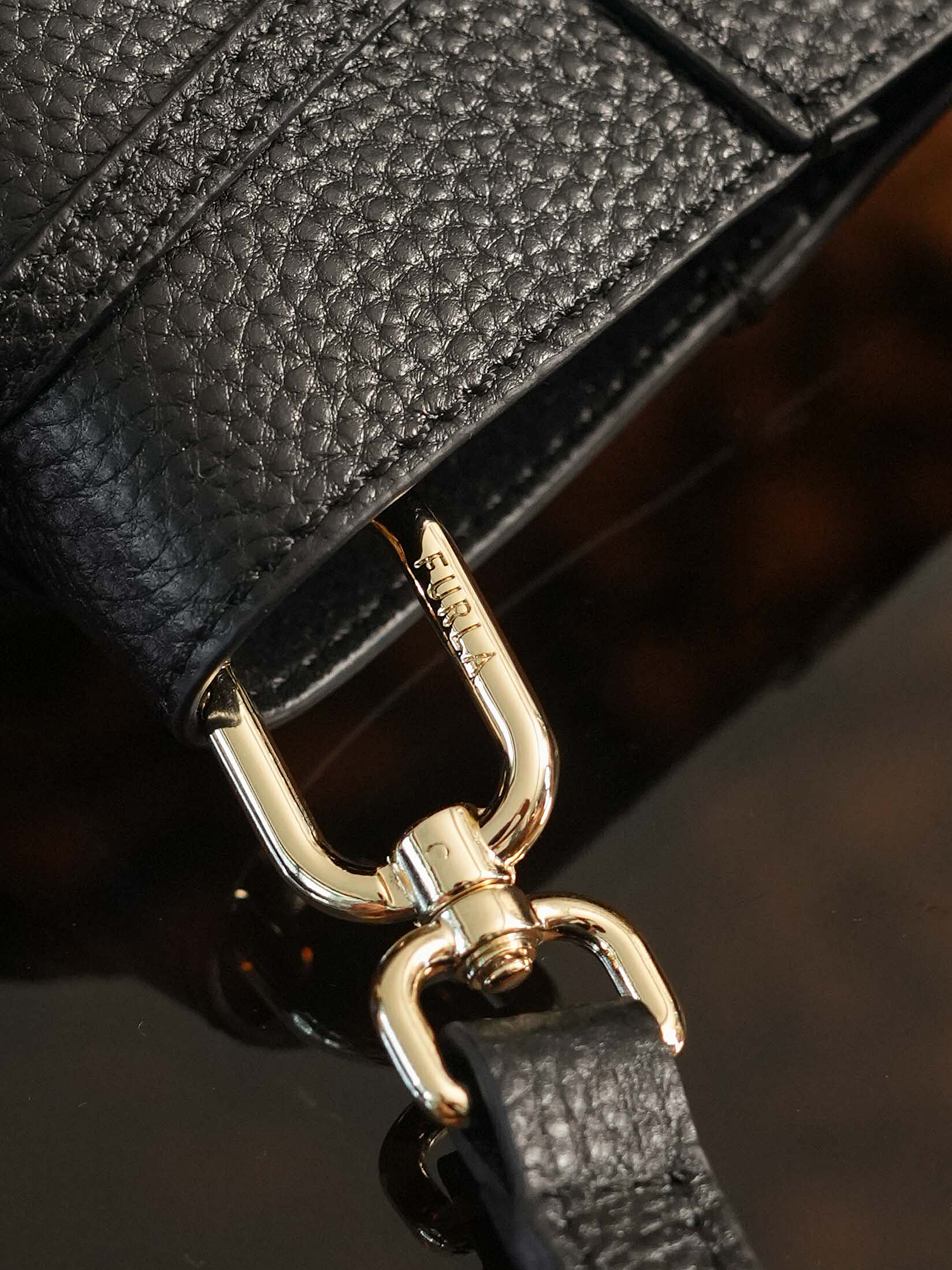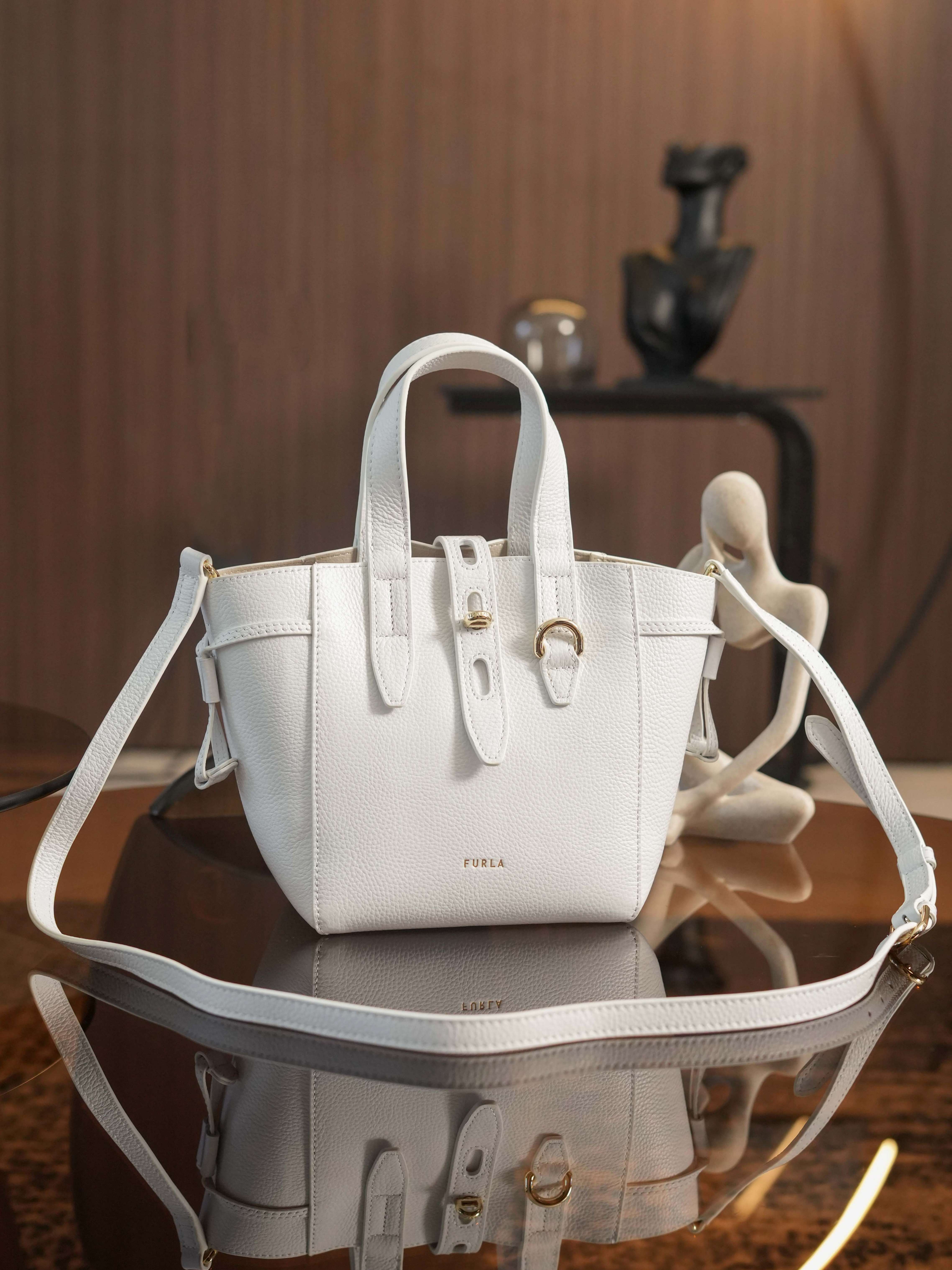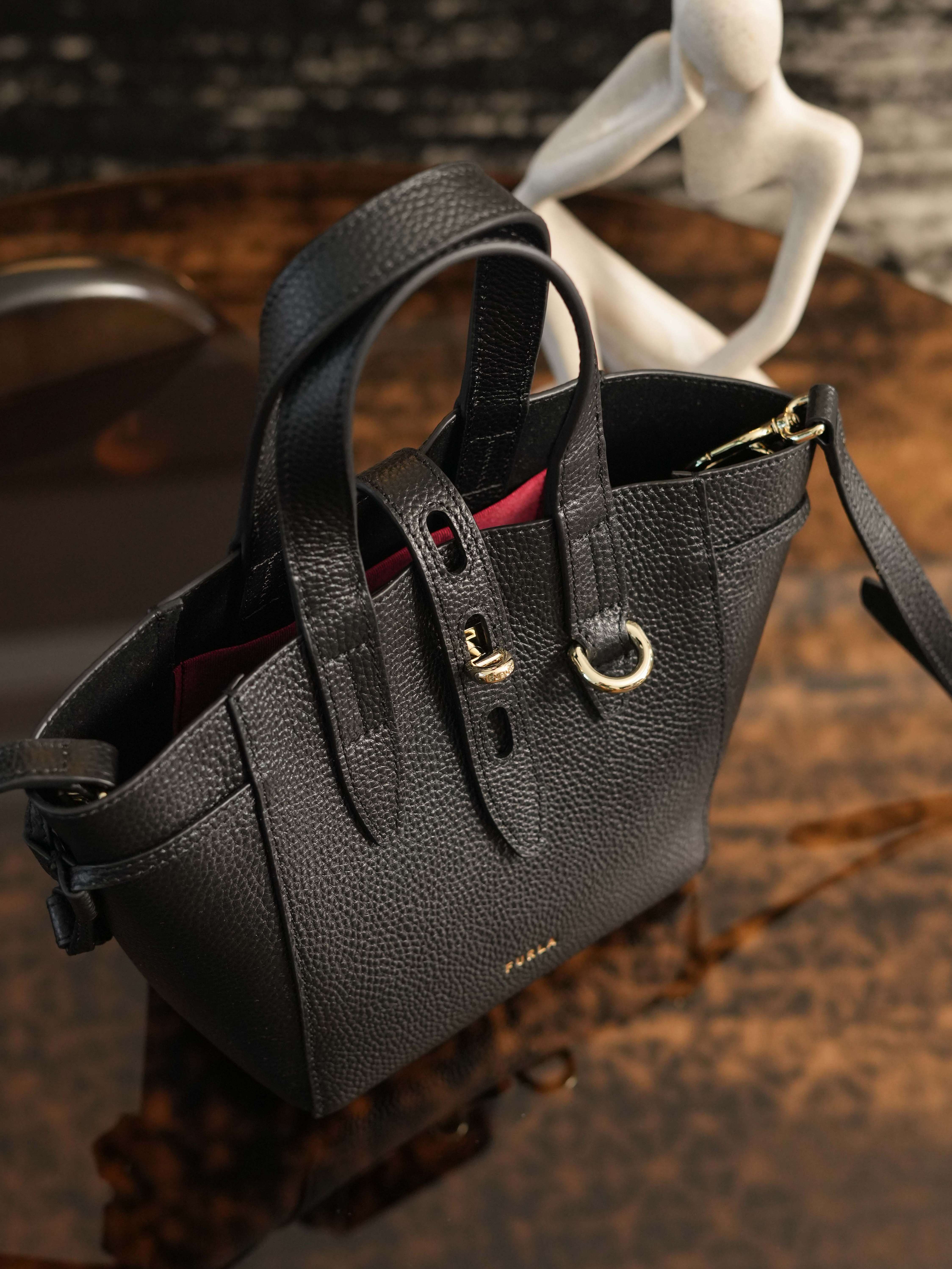 FURLA李沁同款//热卖迷你菜篮子托特包,采用粒纹头层牛皮精制,包身侧围有可调节大小抽绳皮革系带