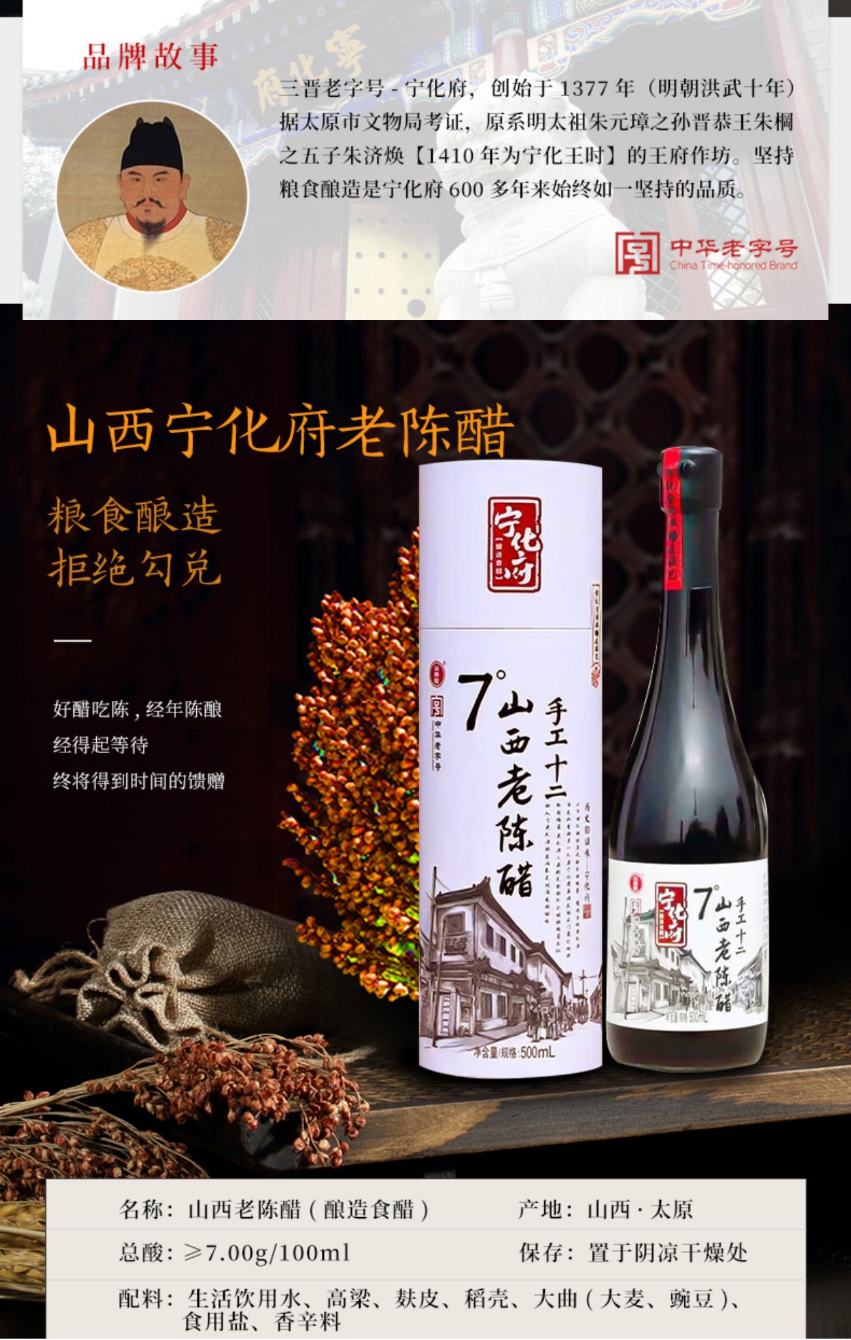 【19777山西老陈醋】宁化府7度酸500ml 手工12纯粮酿造食醋