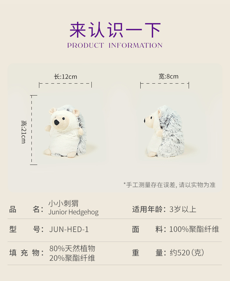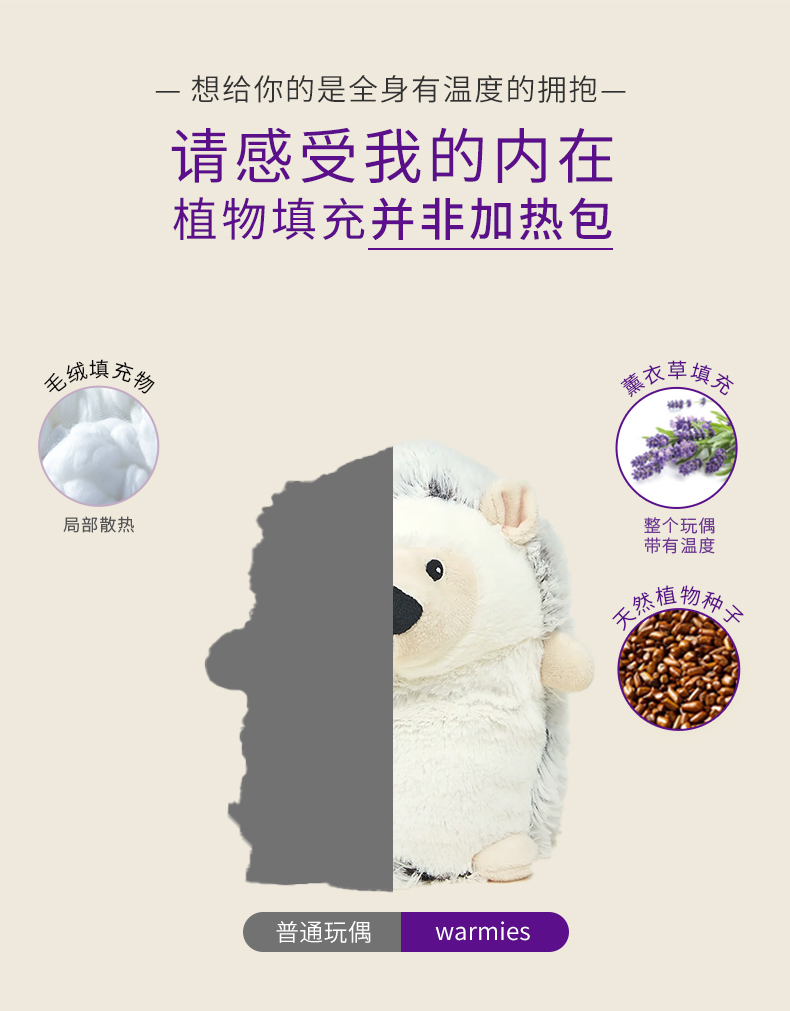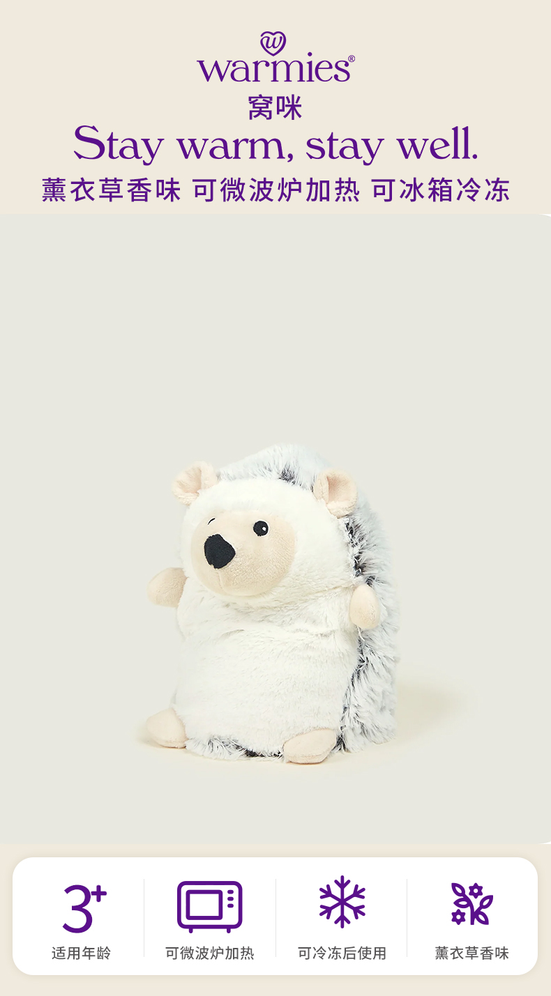 英国warmies 小小刺猬安抚玩偶公仔送礼毛绒可加热抱枕