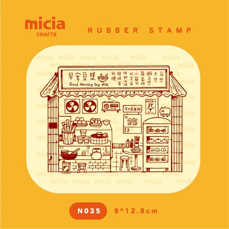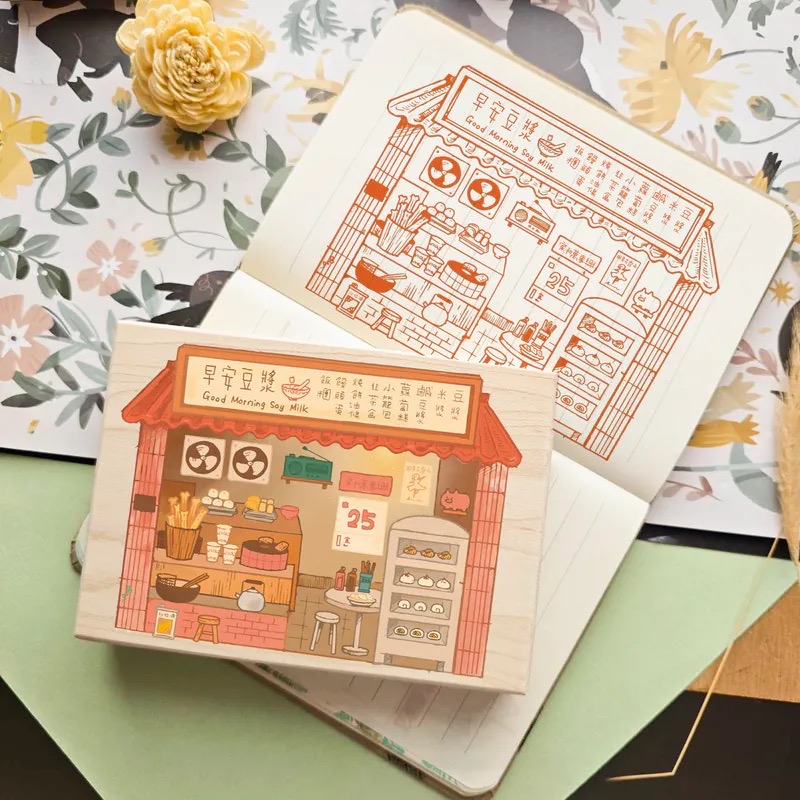 MICIA 早安豆浆店 台湾小吃 枫木印章 9x12.8cm