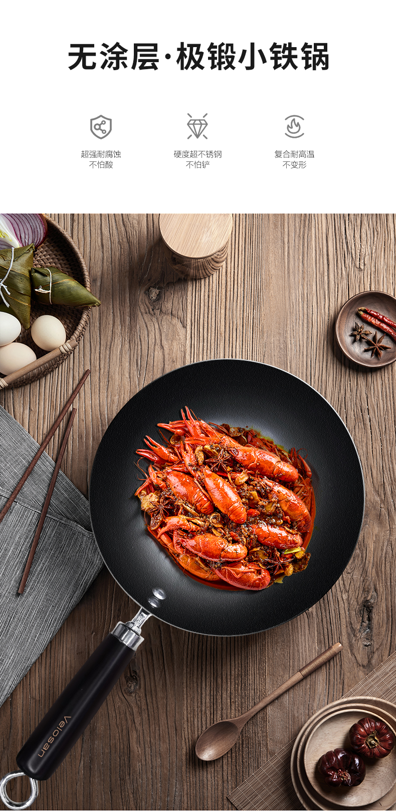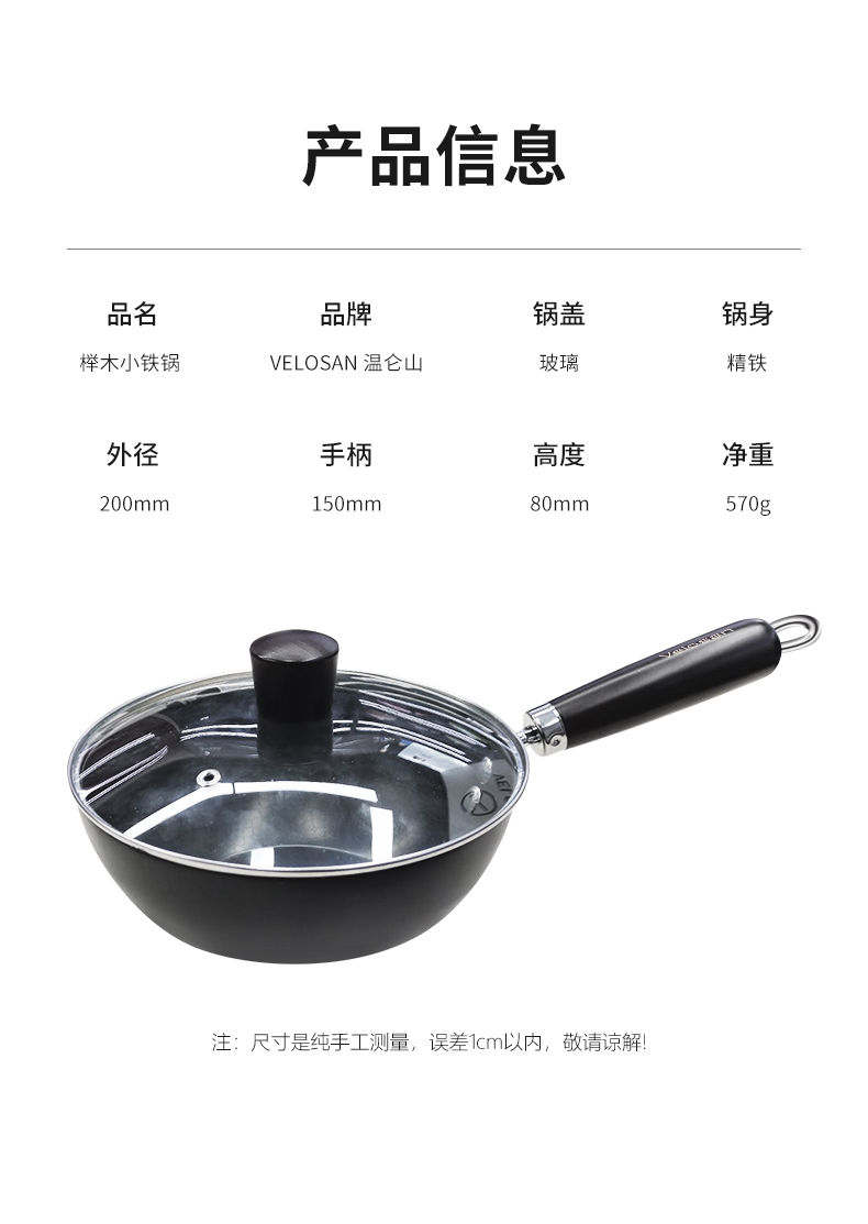 Velosan温仑山0涂层小铁锅20cm