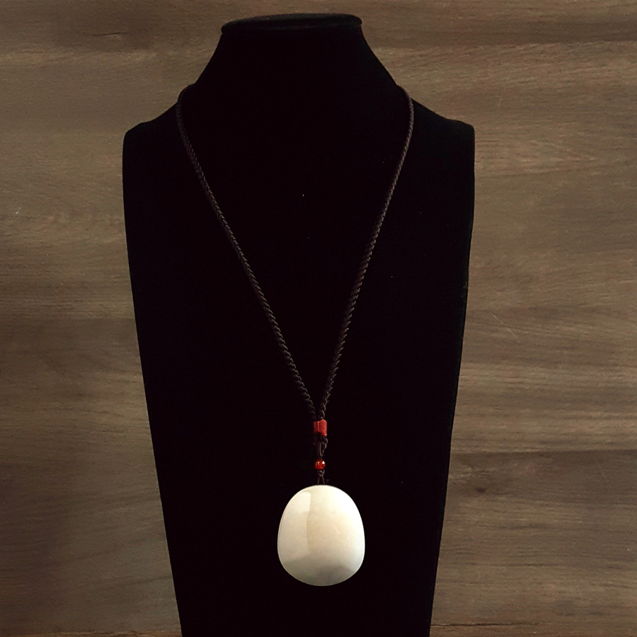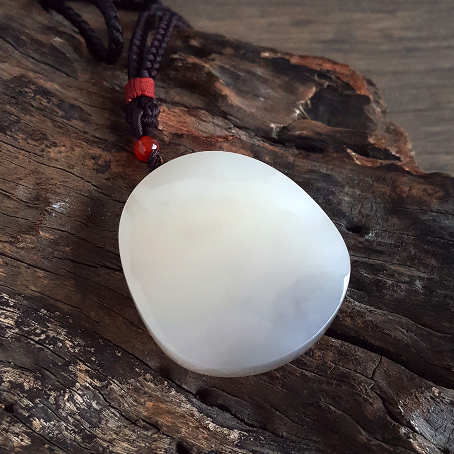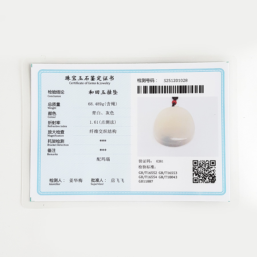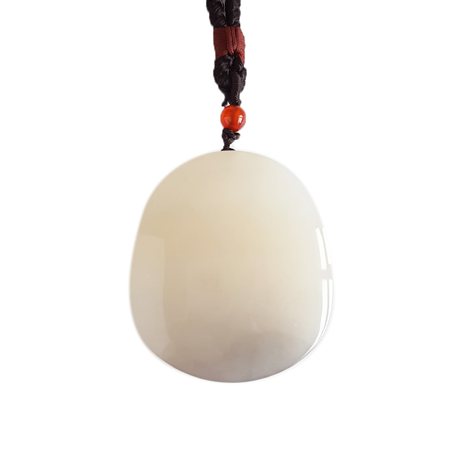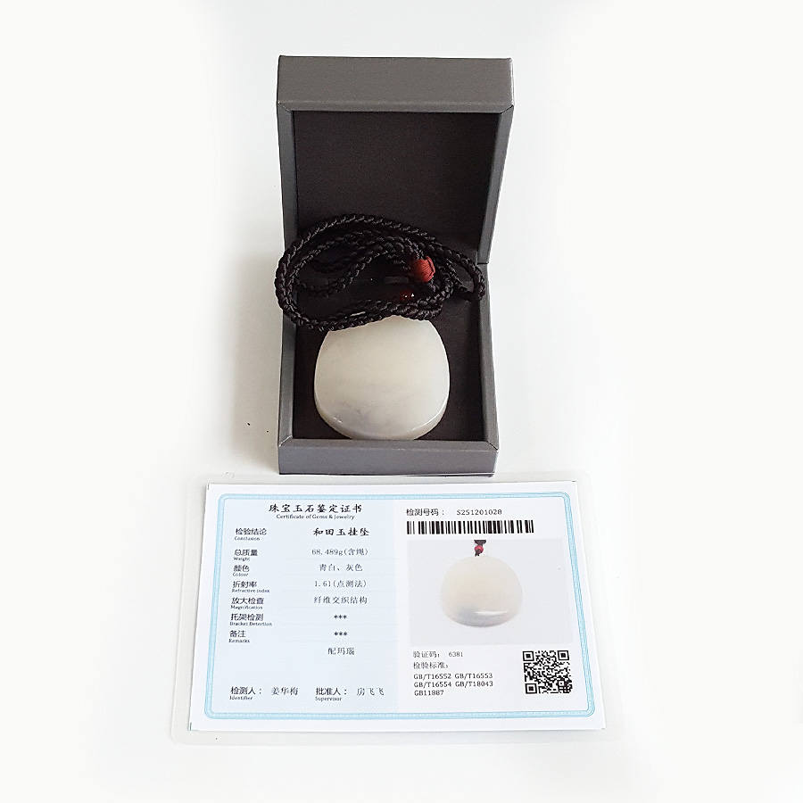 名称 | 天然青海料细腻油润度佳椭圆平安无事牌藕粉烟紫料和田玉吊坠项链 |
