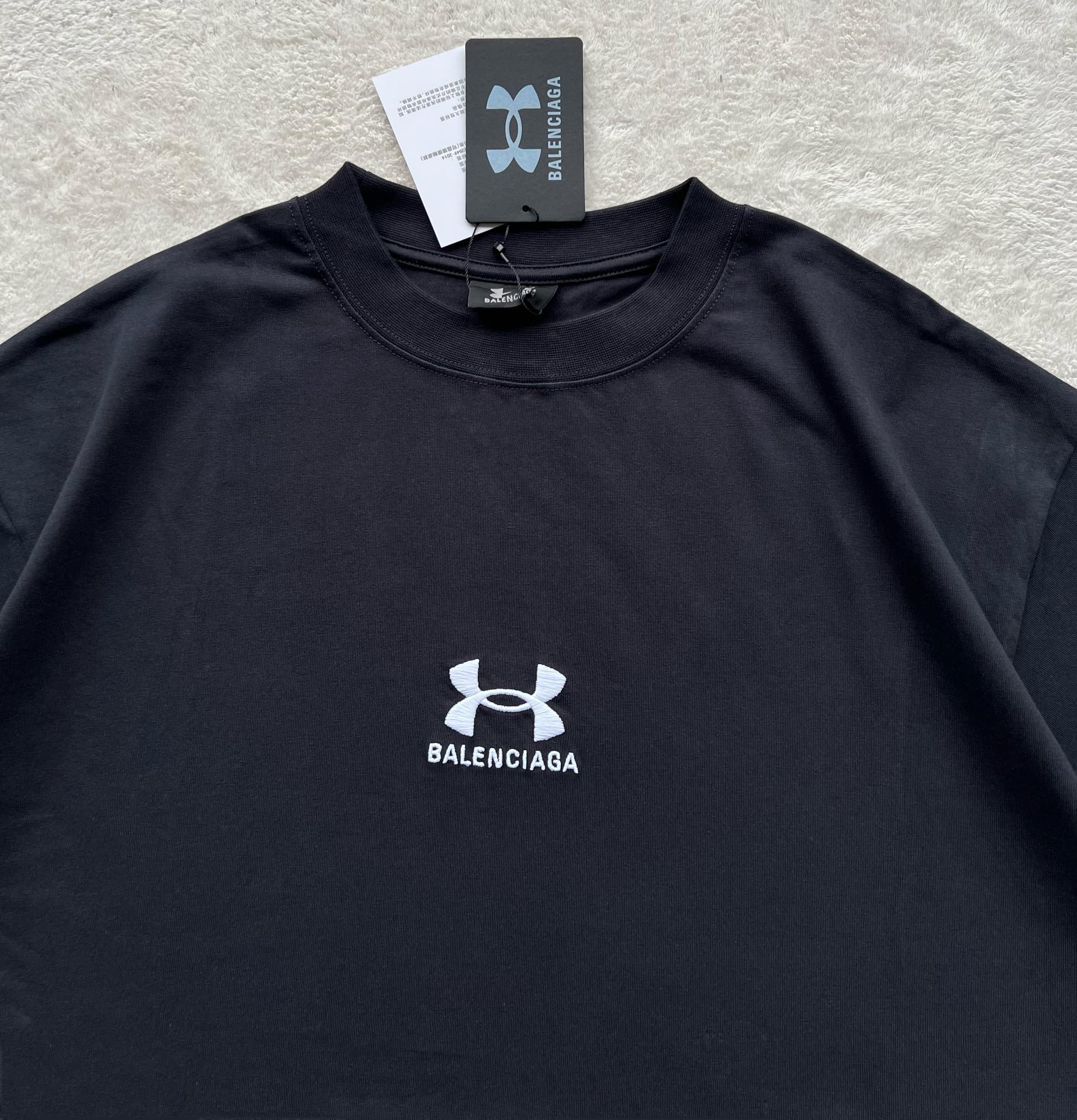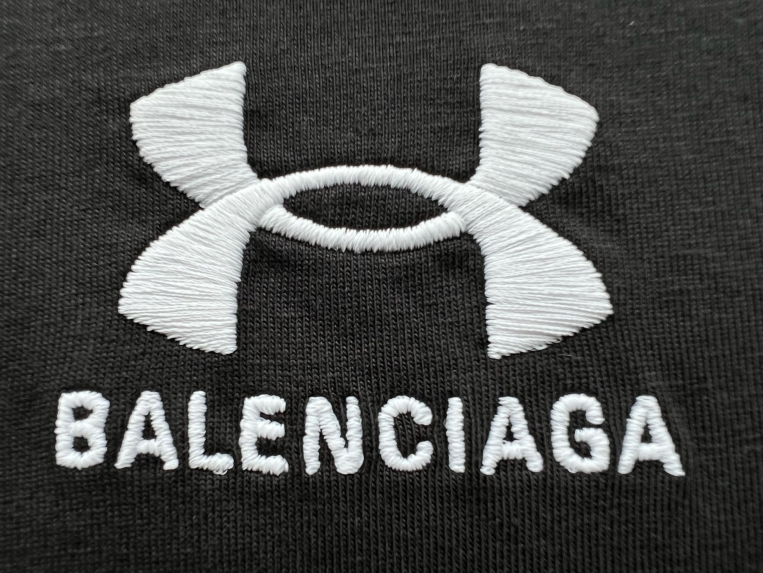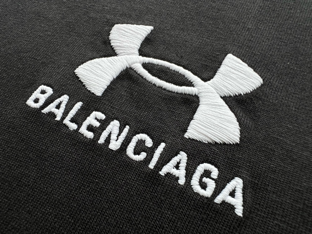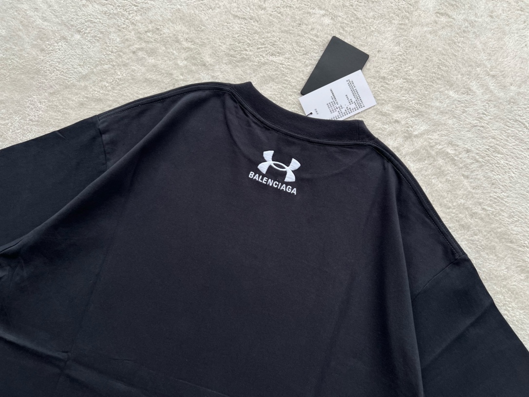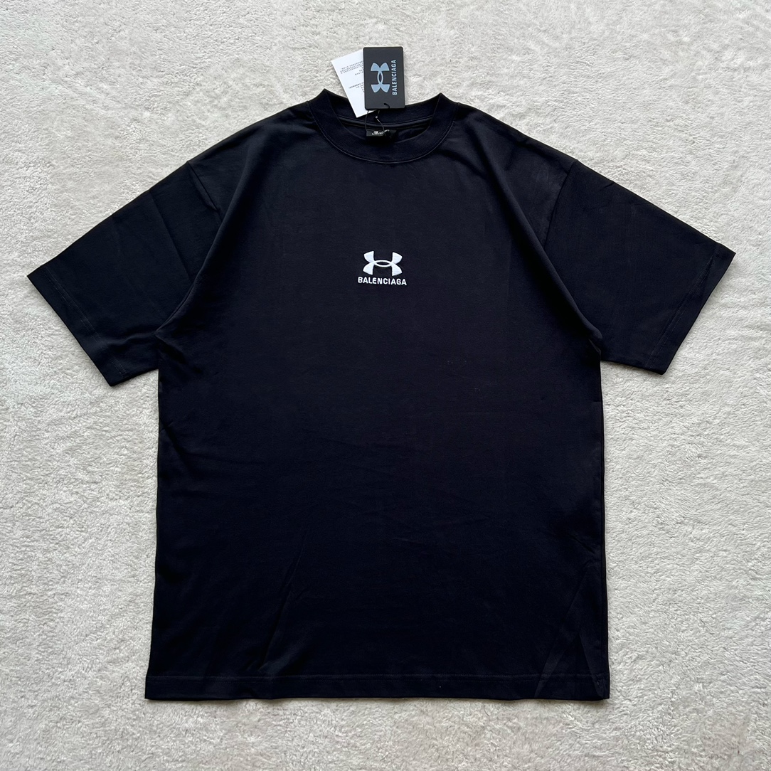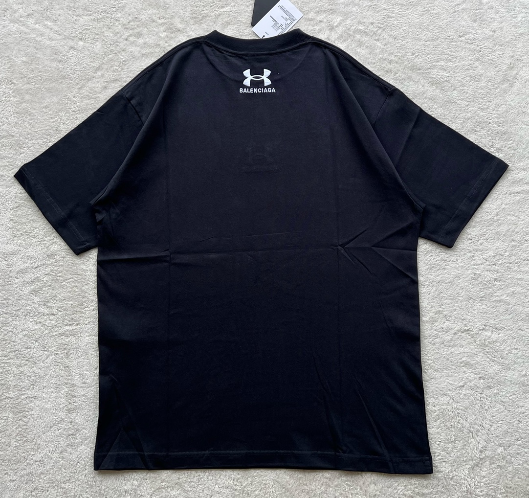 B家 巴黎 & UNDER ARMO*UR 安德*玛 联名系列、黑色和白色复古平纹针织廓形T恤(JN)