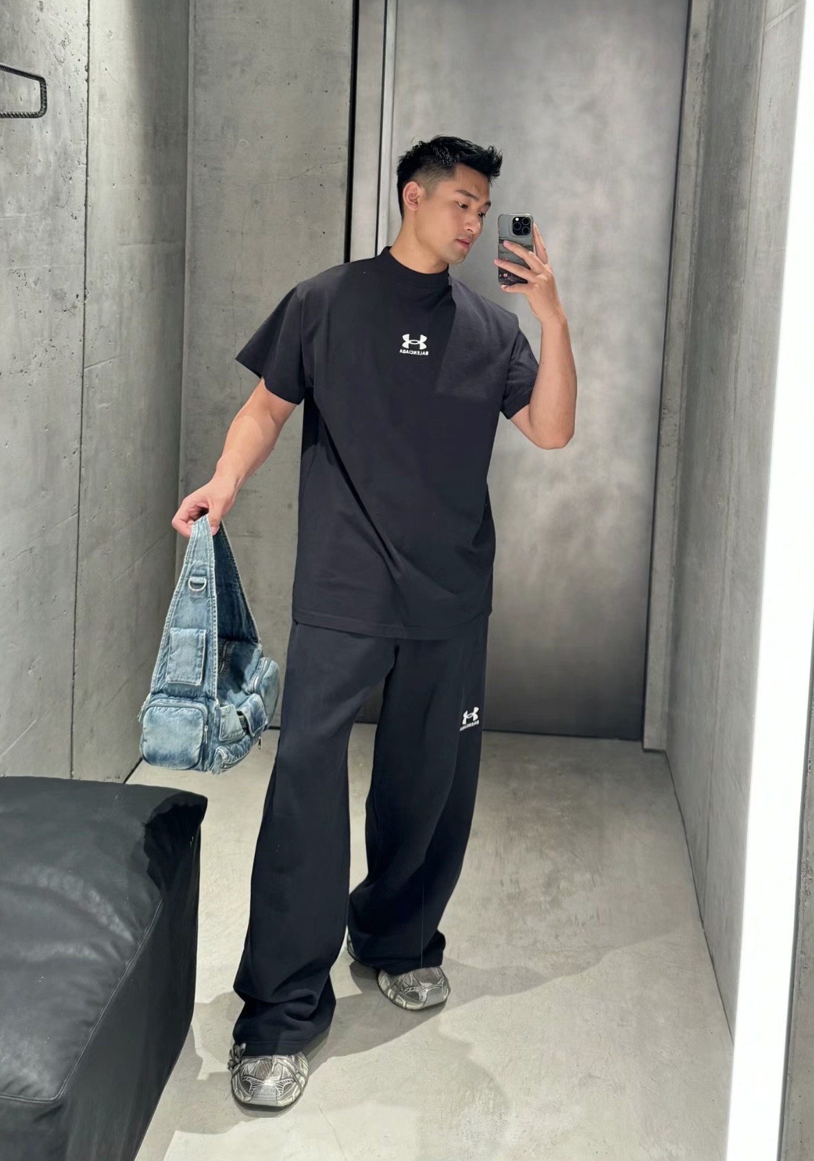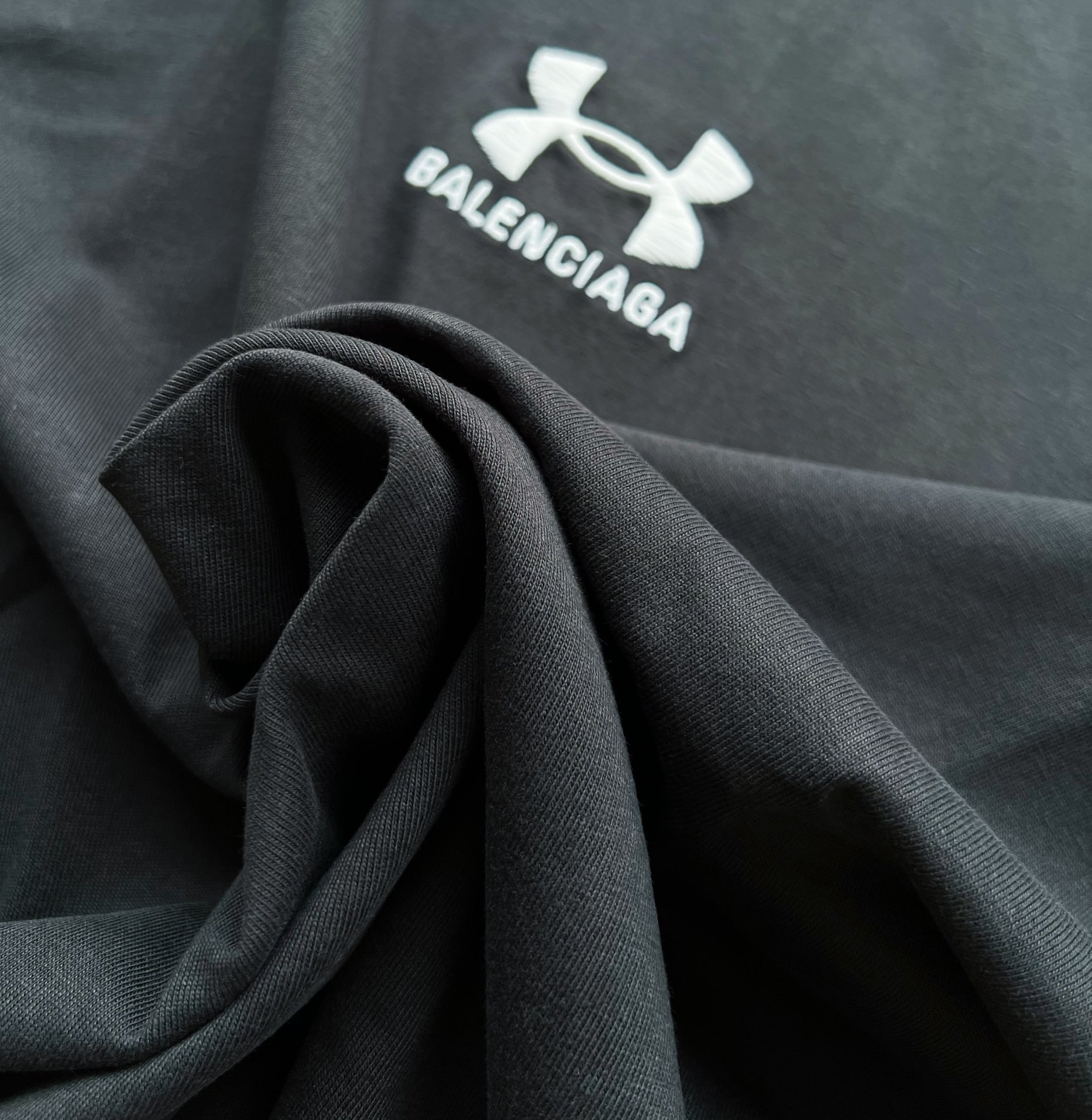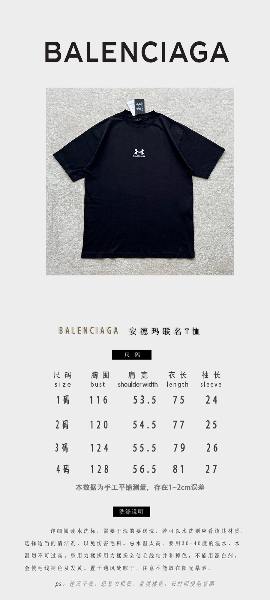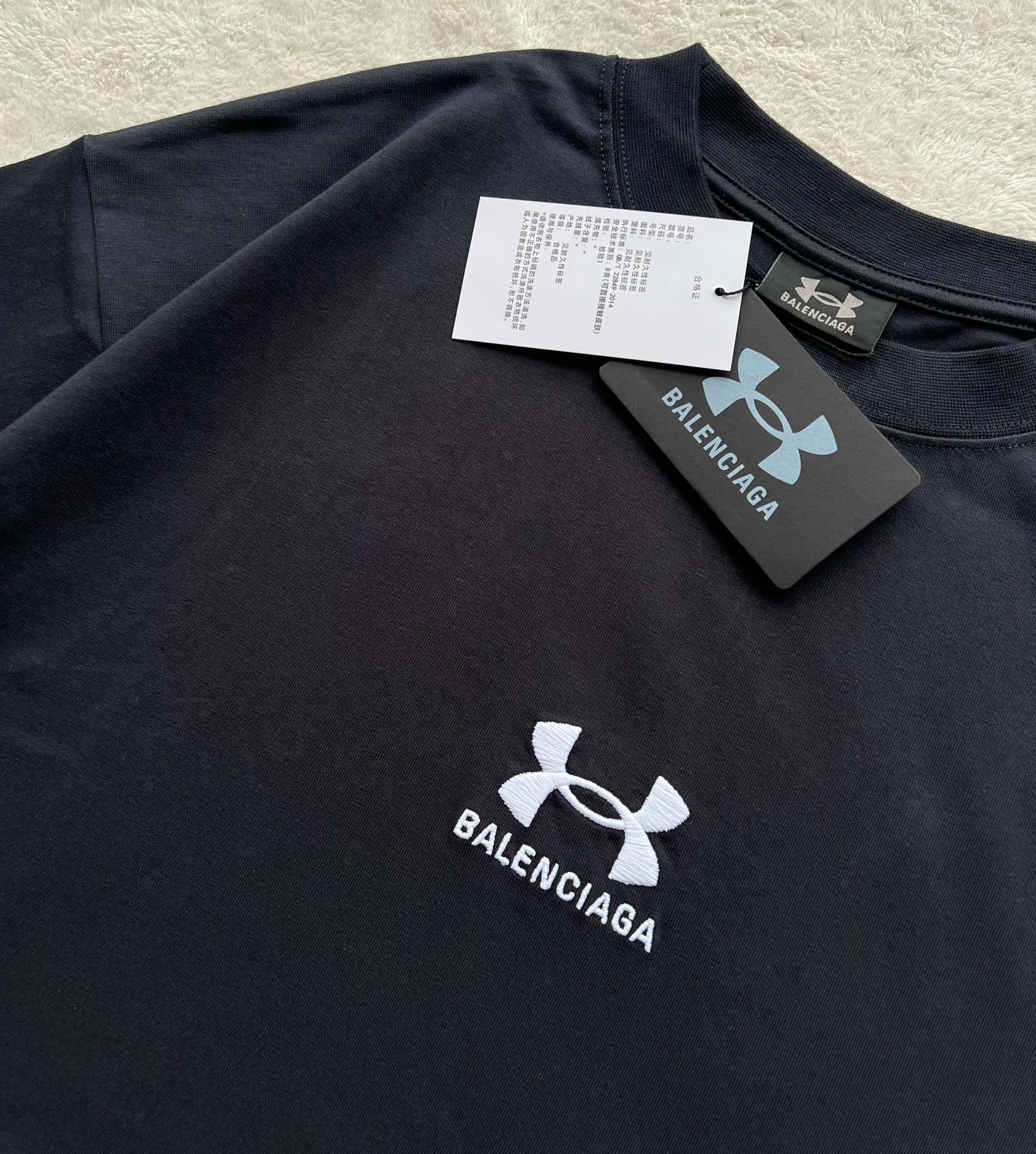 B家 巴黎 & UNDER ARMO*UR 安德*玛 联名系列、黑色和白色复古平纹针织廓形T恤(JN)