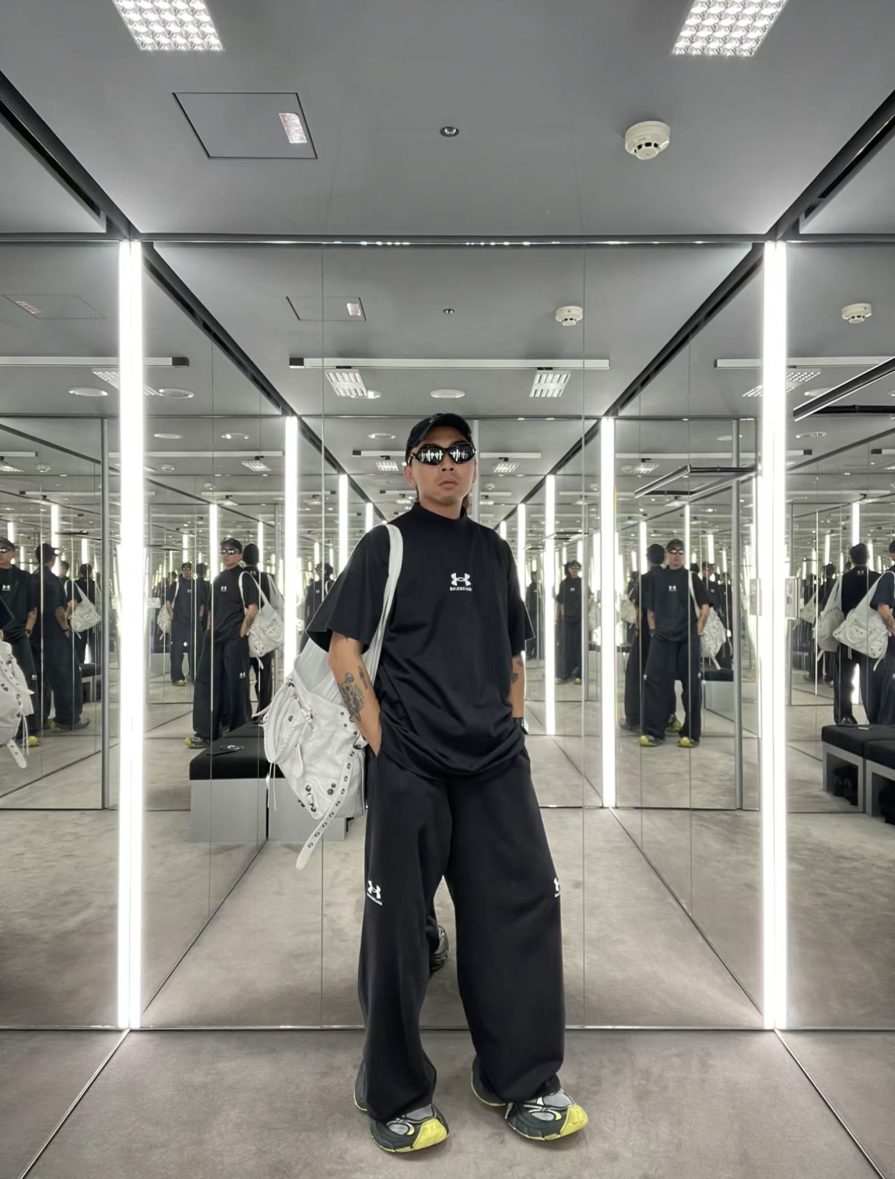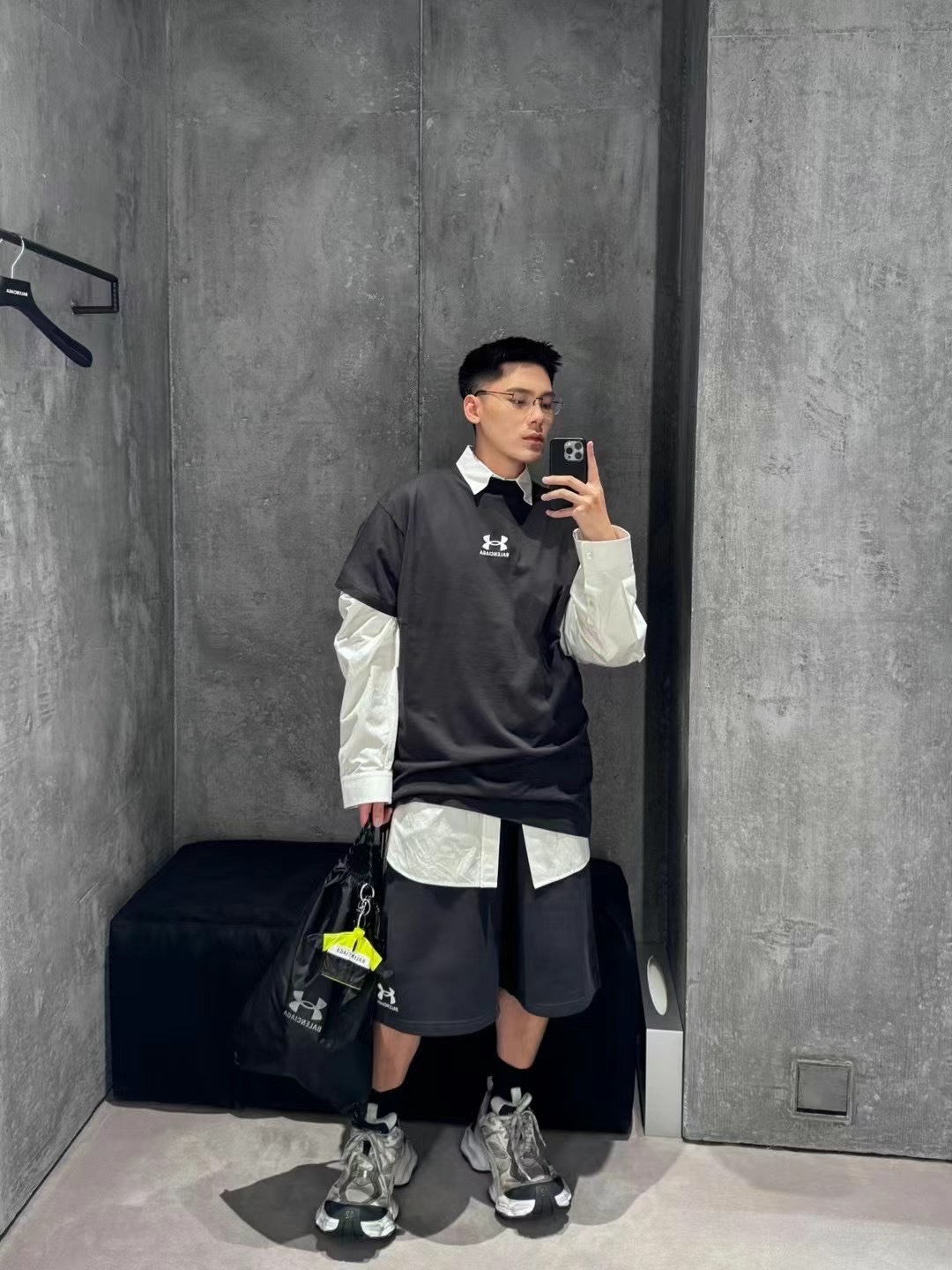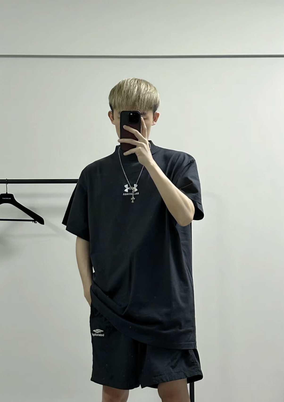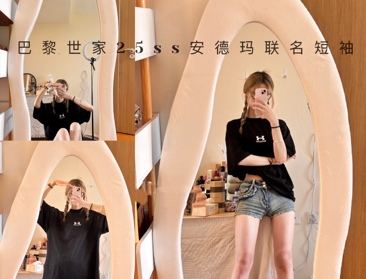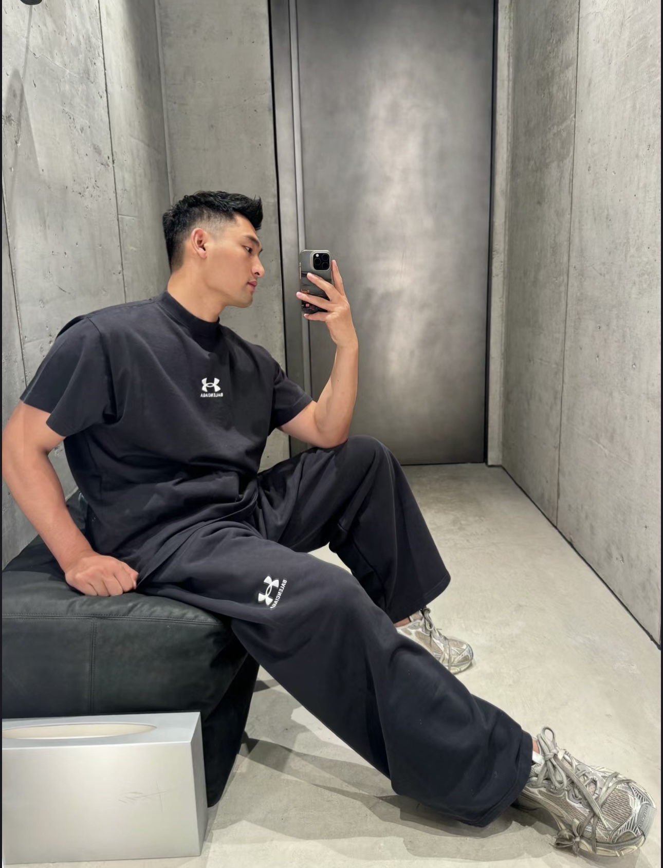 B家 巴黎 & UNDER ARMO*UR 安德*玛 联名系列、黑色和白色复古平纹针织廓形T恤(JN)