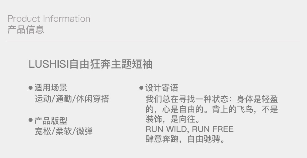 【3月23日新品】录士LUSHISI自由狂奔主题短袖