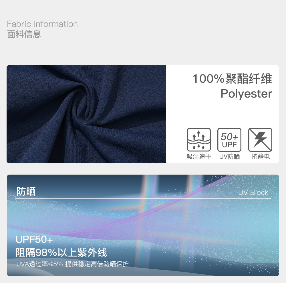LUSHISI[冰铠盾]撞色拼接透气防泼水UPF50+防紫外线防晒皮肤衣服
