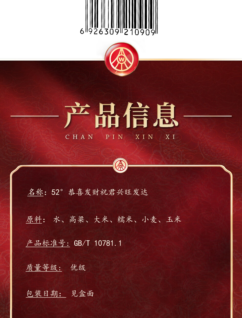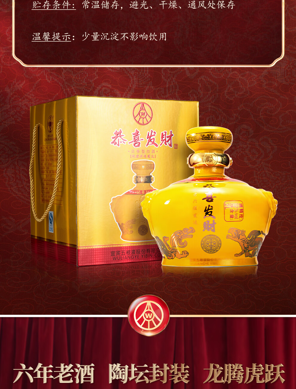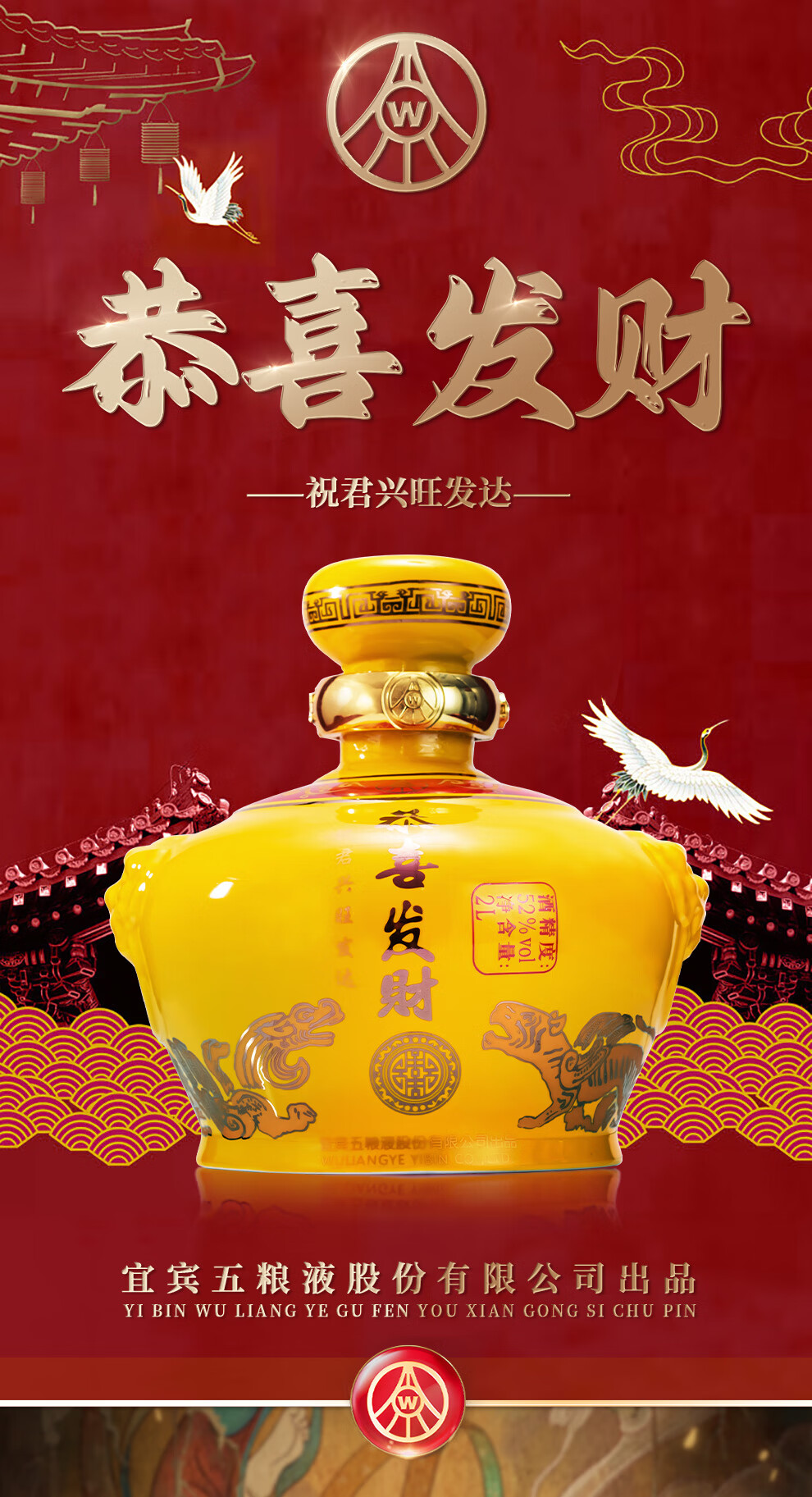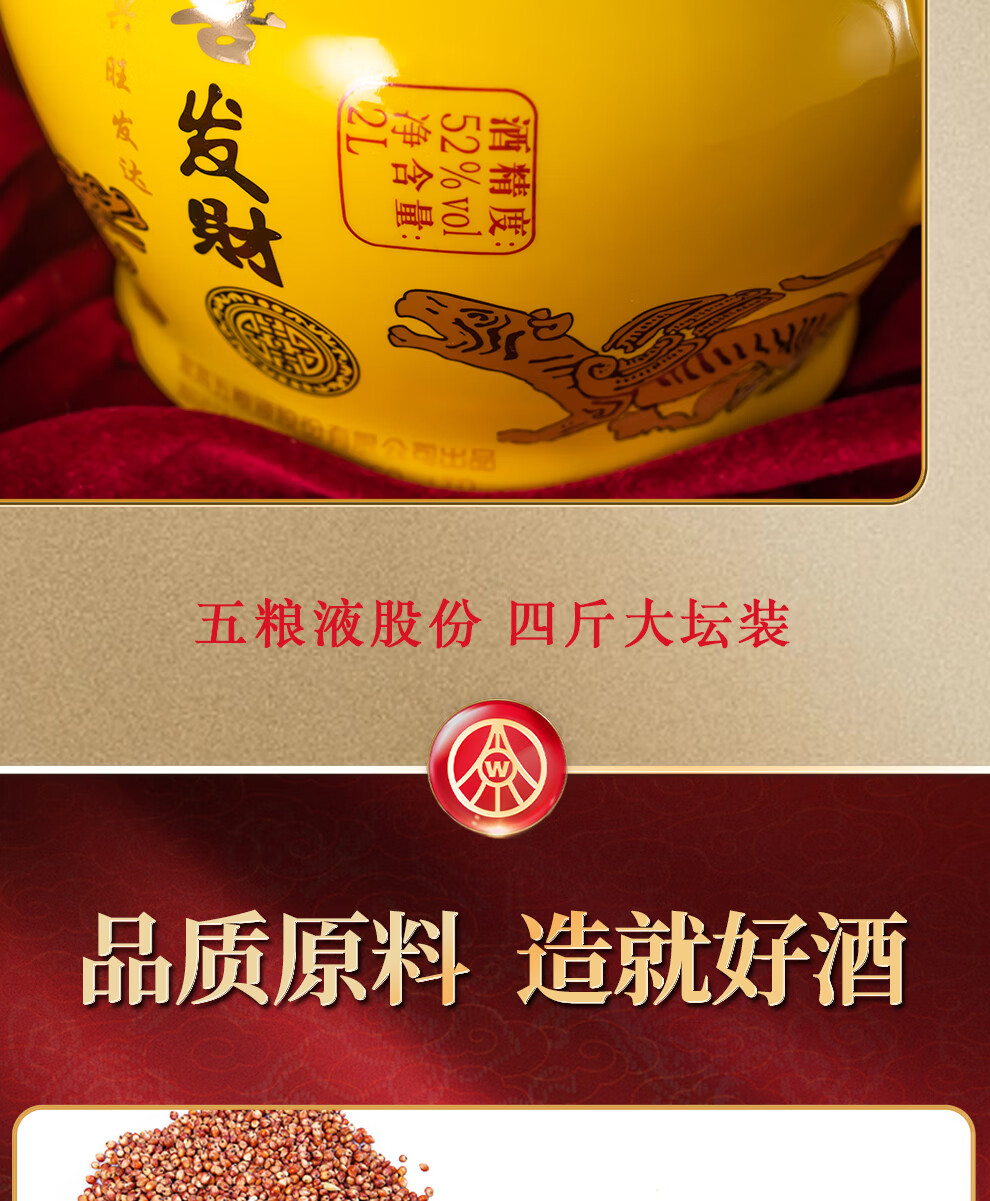 【鼎】五粮液股份出品恭喜发财 52度浓香型白酒 2000ml