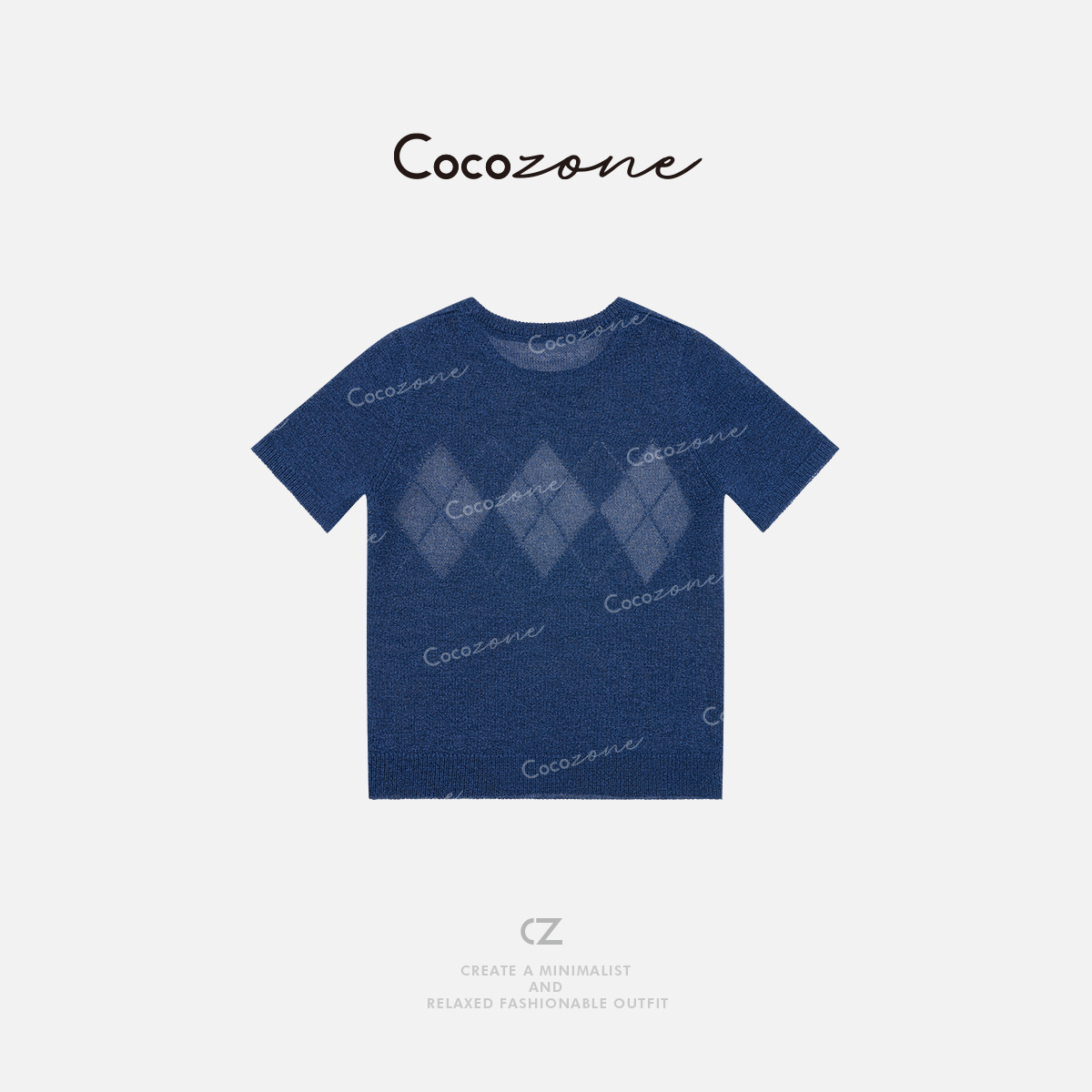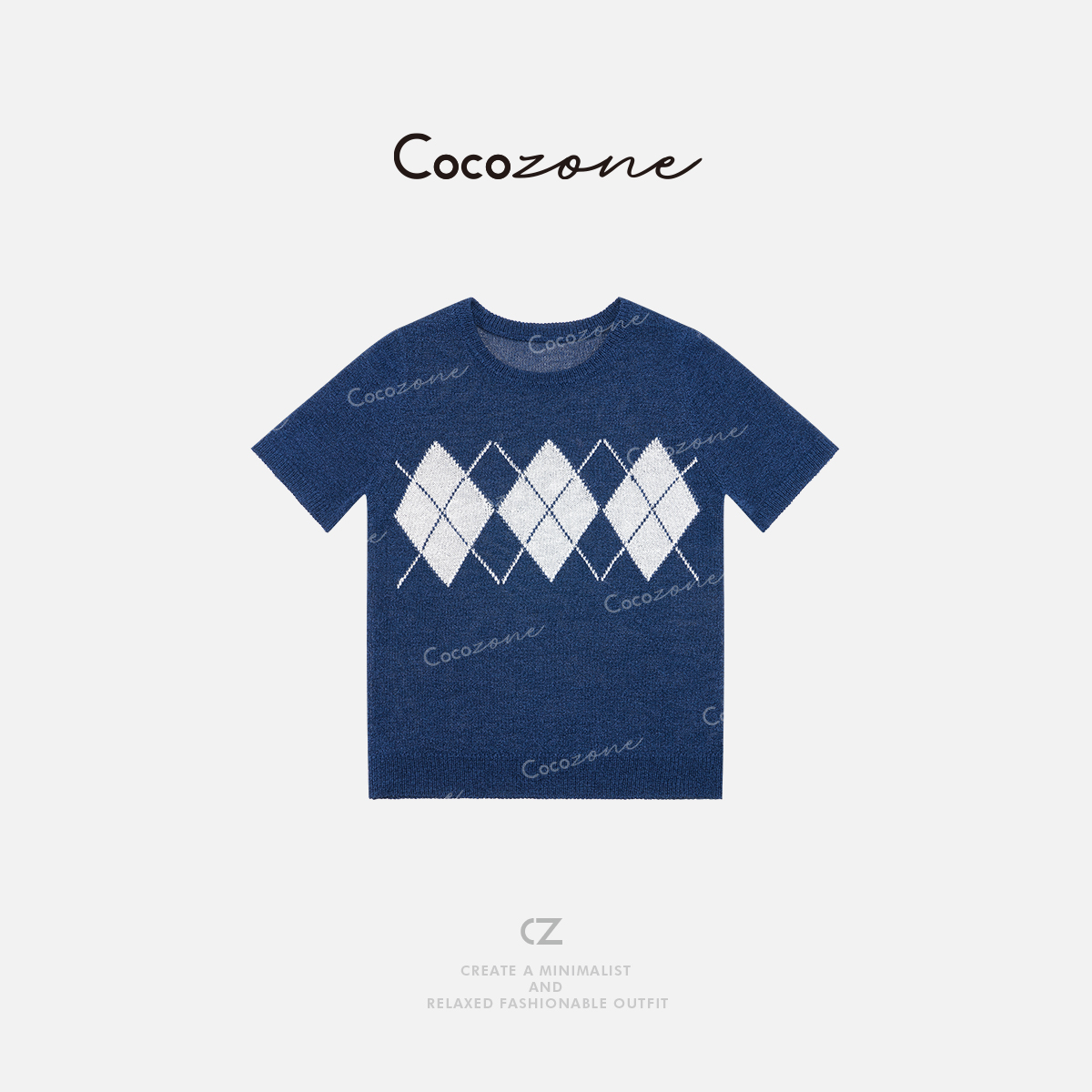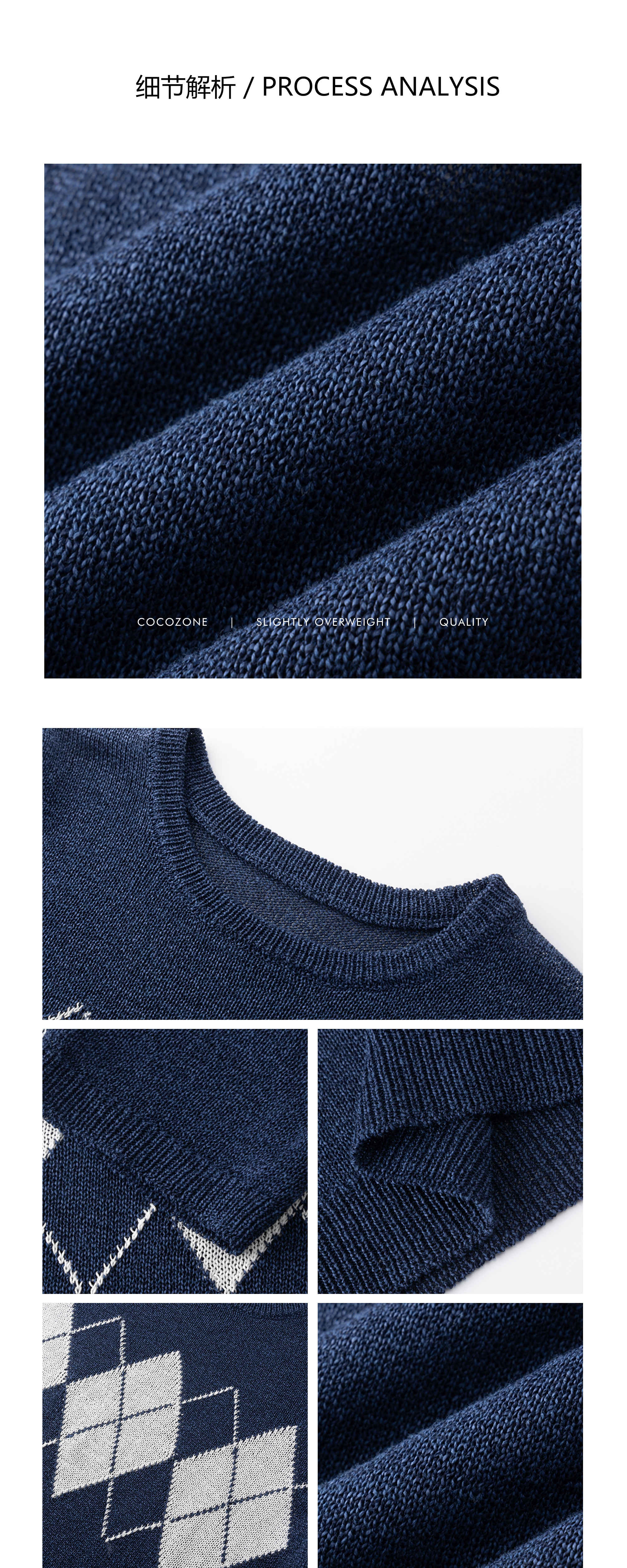 COCO ZONE 刘一一 简约复古菱格拼色套头圆领女毛针织衫CD2A0877