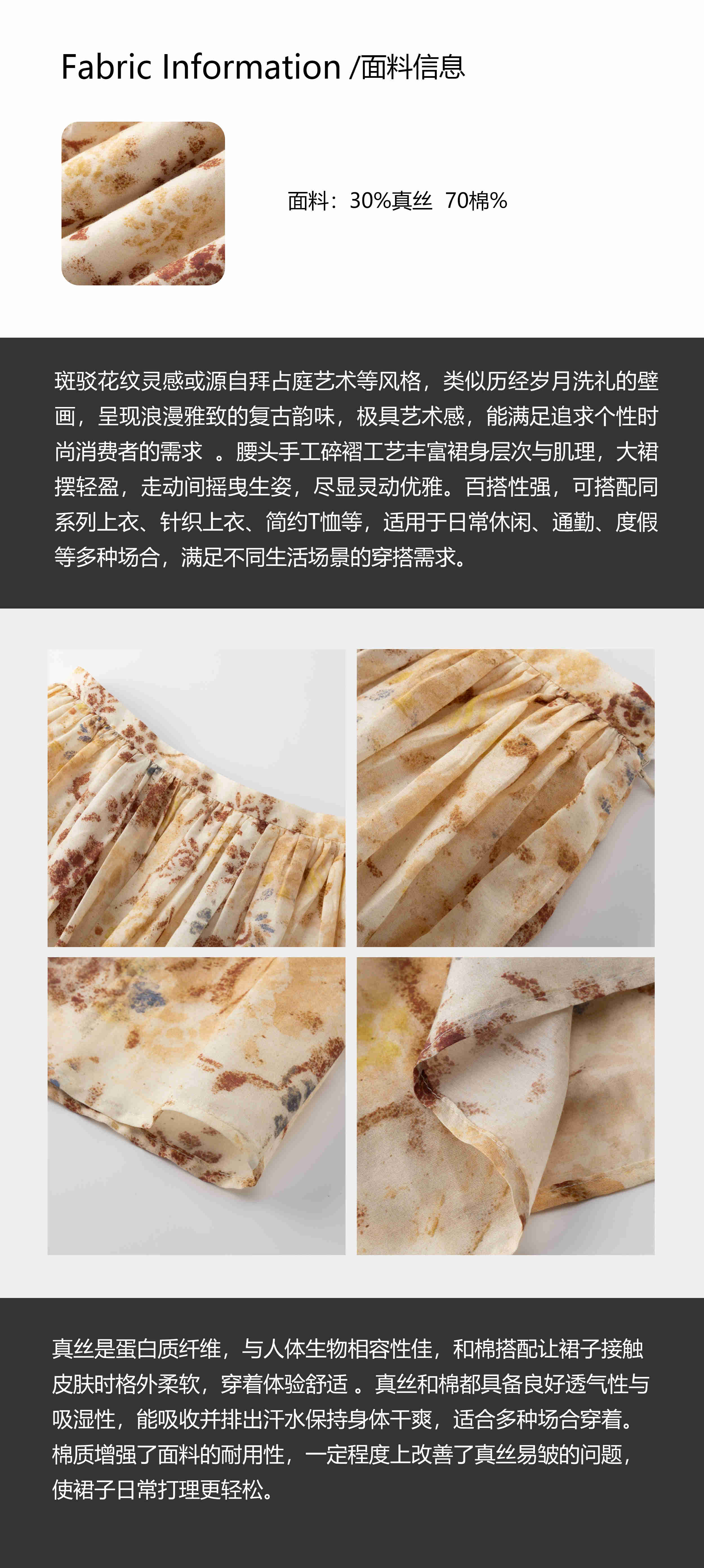COCO ZONE 刘一一 【真丝混纺】复古碎花通勤度假风半裙CD1A0801