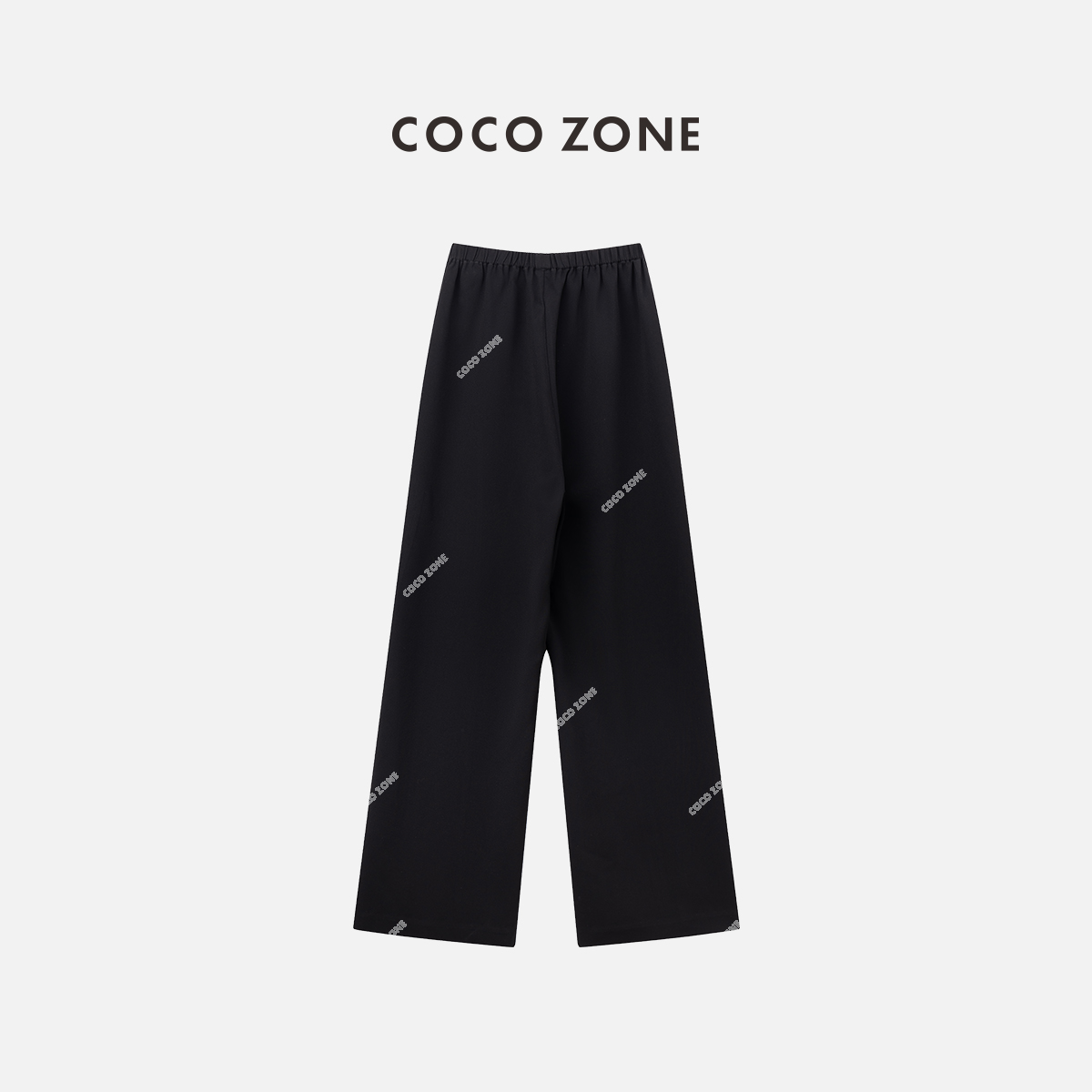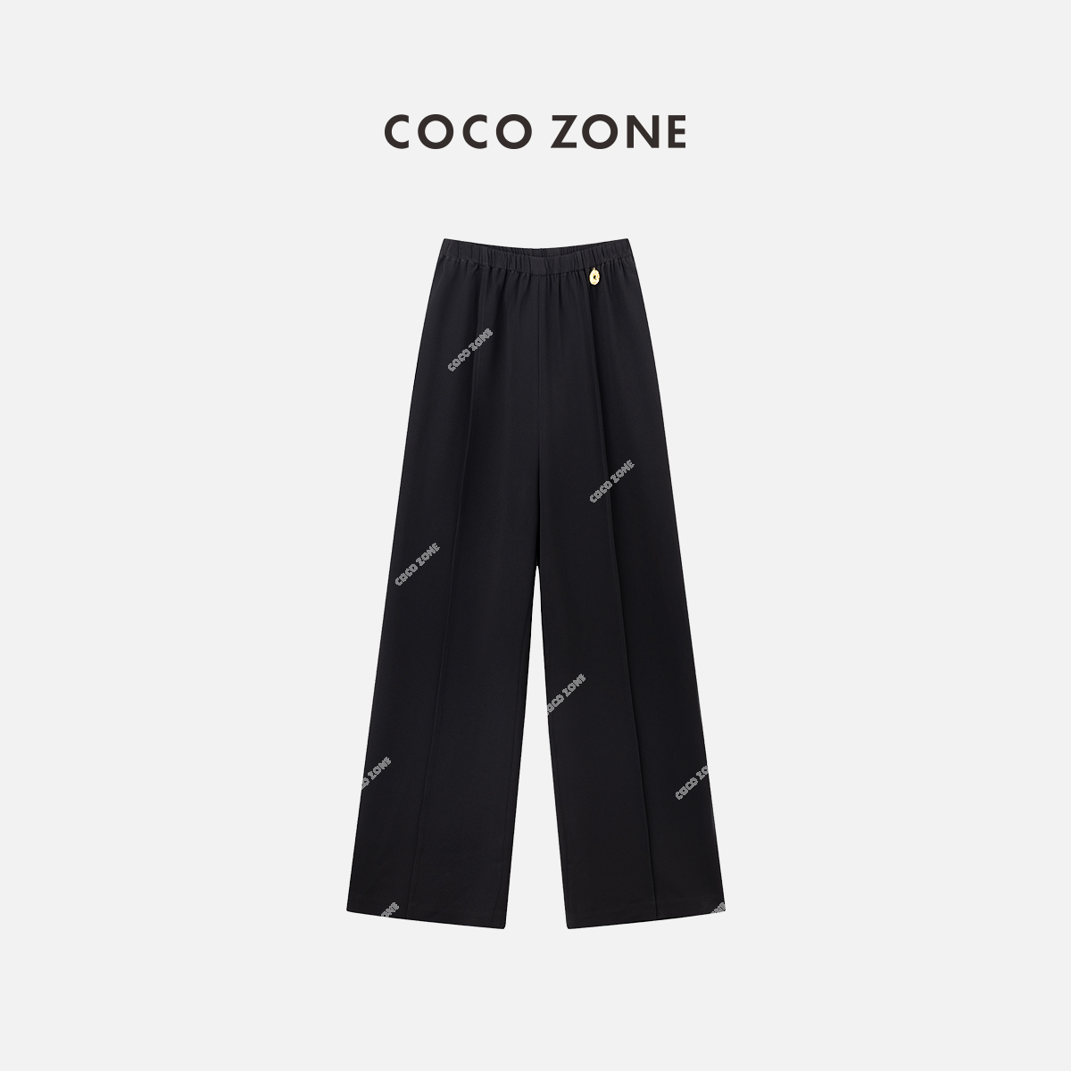 COCO ZONE早春松紧腰休闲裤纯色百搭直筒阔腿裤CC1A0495