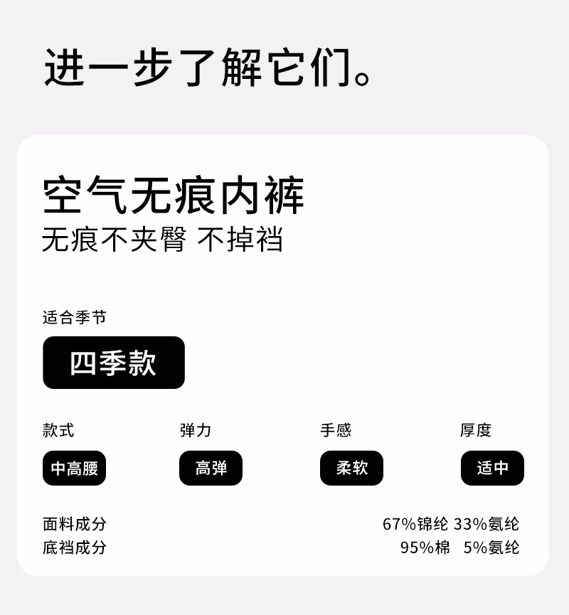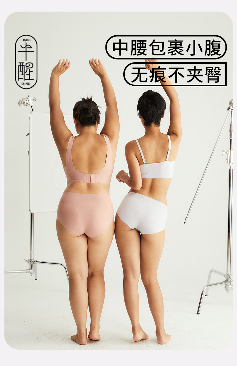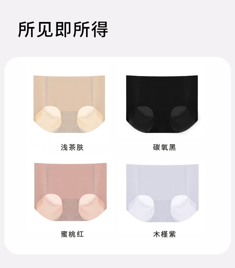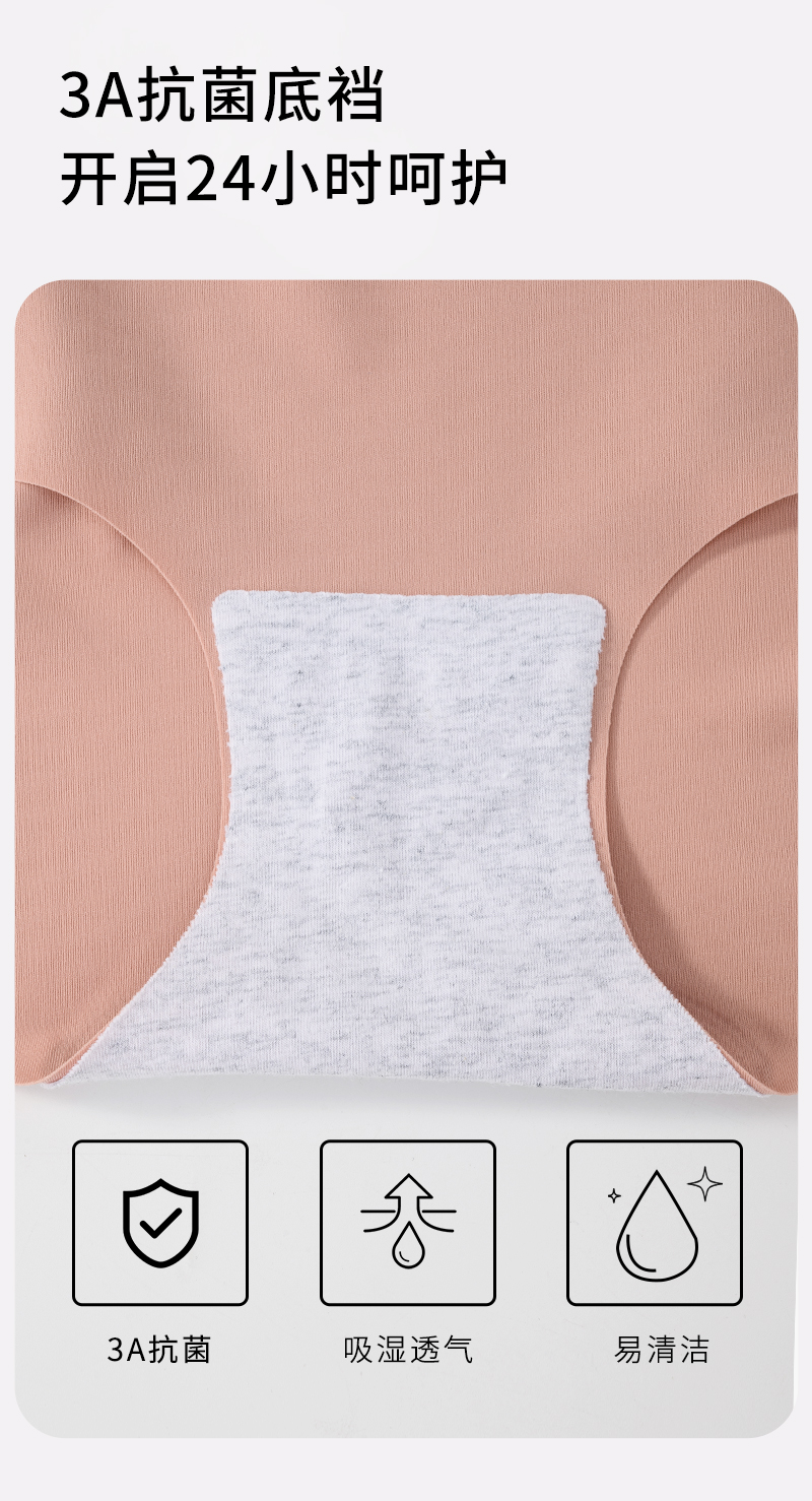 半醒粉底液无痕内裤(组合装) 防夹臀3A抗菌纯棉裆三角内裤 U0080
