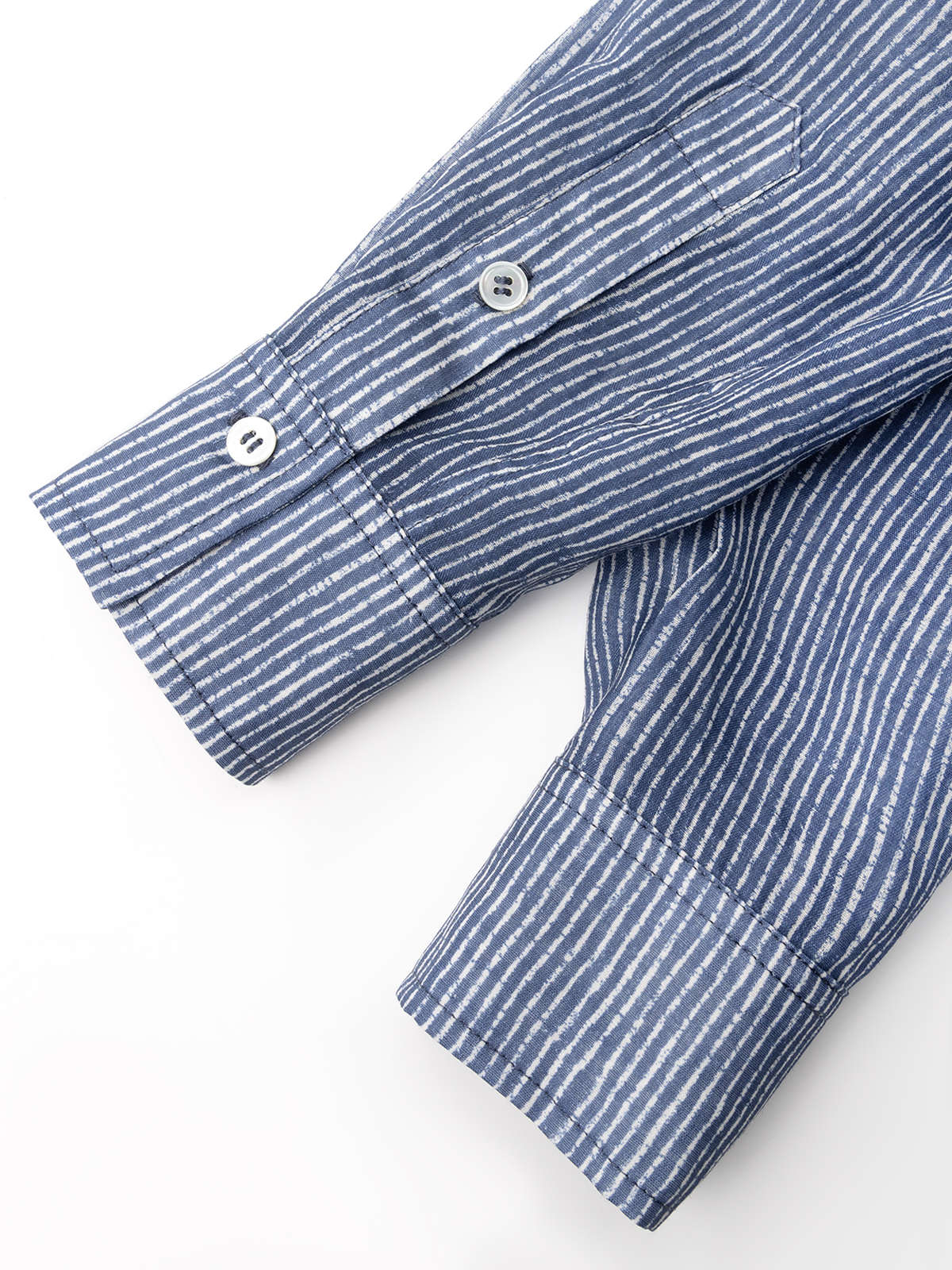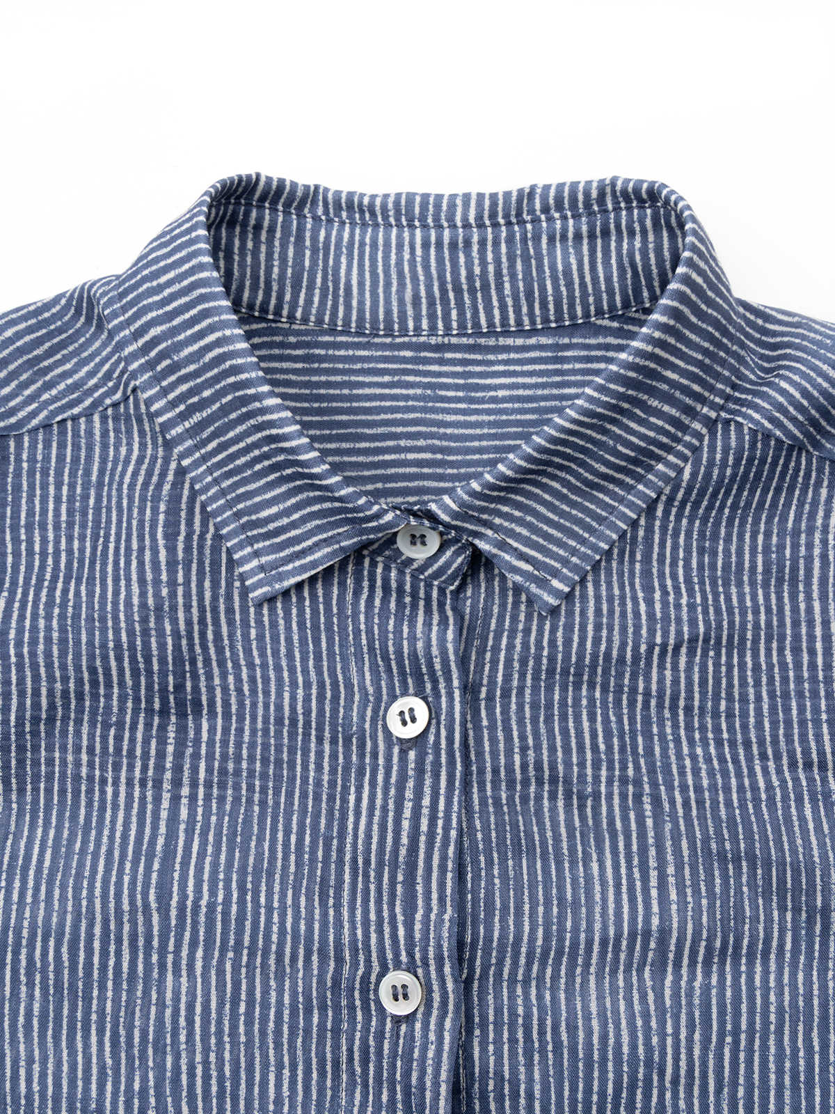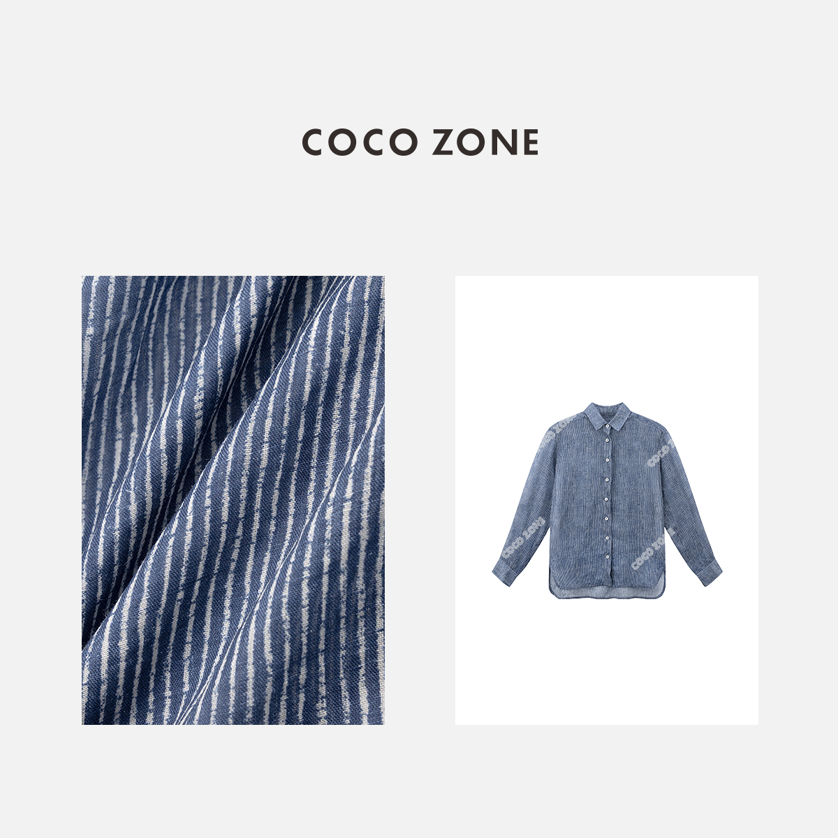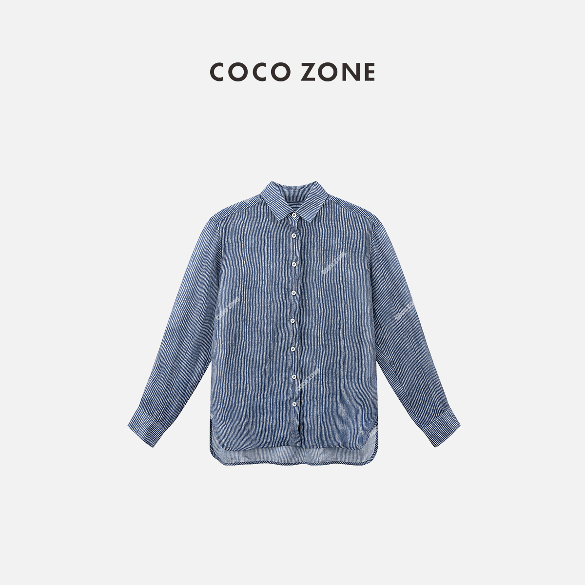 COCO ZONE2024气质竖条纹长袖翻领衬衫时尚百搭上衣CC1B0774