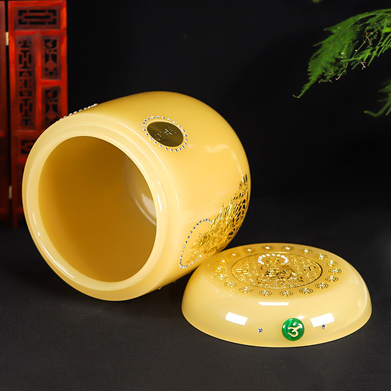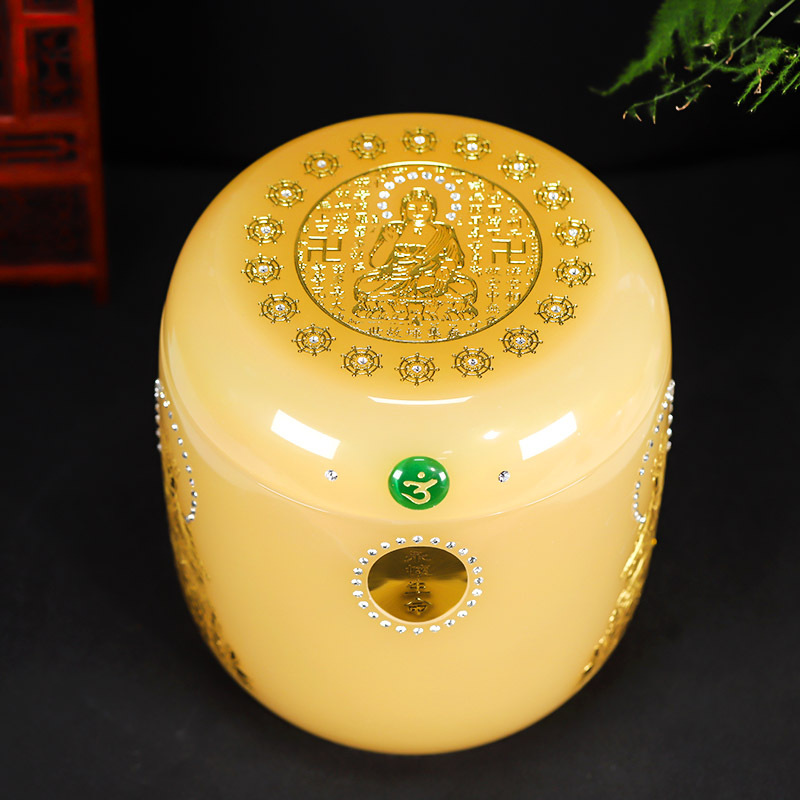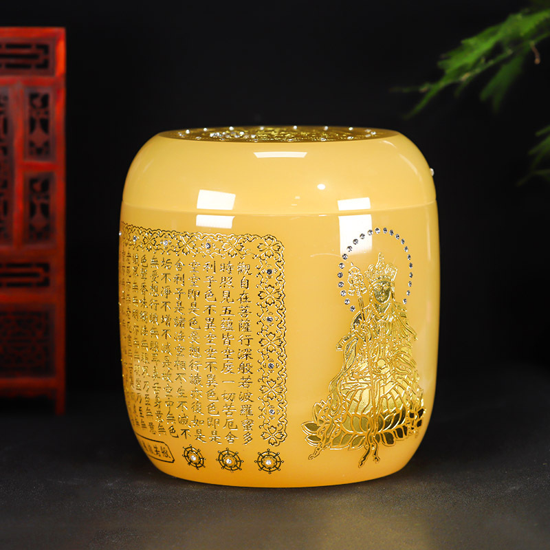 黄琉璃骨灰坛地藏王般若波罗蜜多心经骨灰桶骨灰坛20*20cm