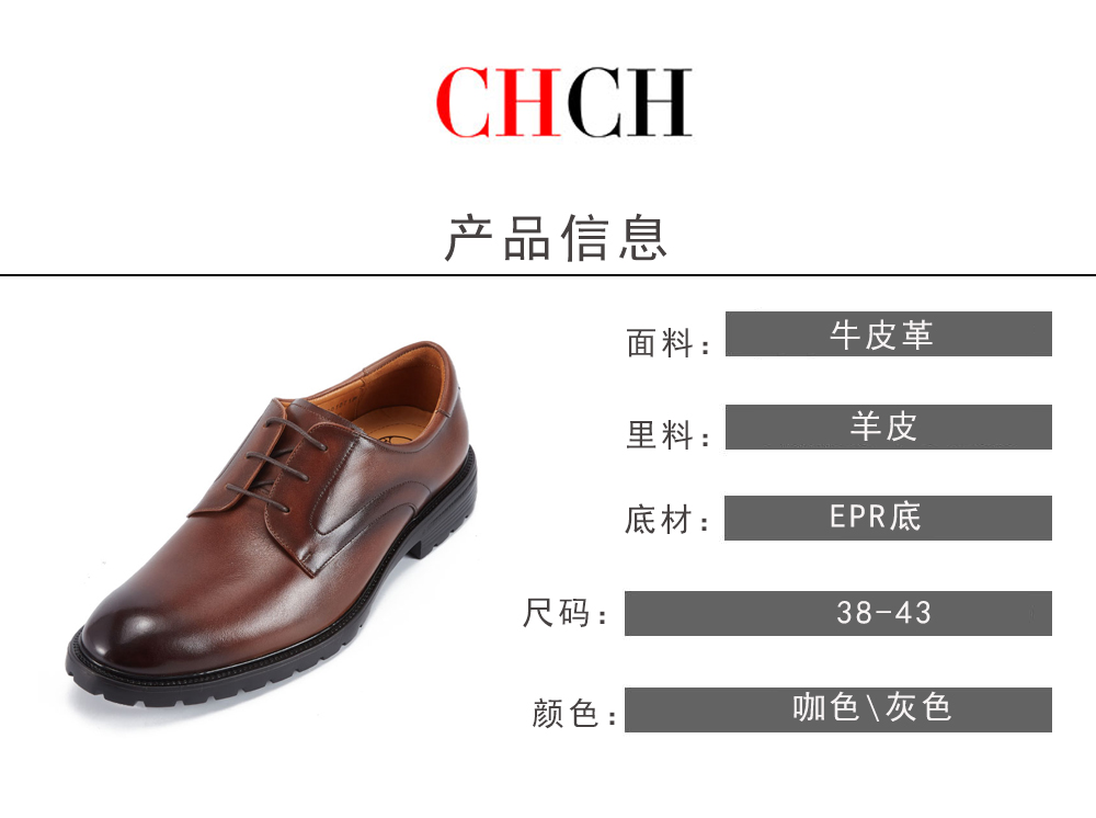 CHCH平衡鞋牛皮革擦色系带正装商务防滑大底男鞋CM2A6201
