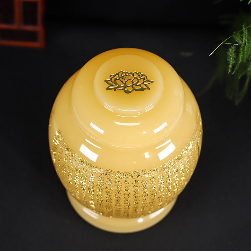 骨灰坛黄琉璃般若波罗蜜多心经骨灰桶骨灰坛18*23cm