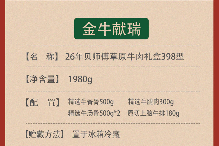 26年贝师傅草原牛肉礼盒398型-金牛献瑞(注:冷链生鲜类商品不退,质量问题只换)