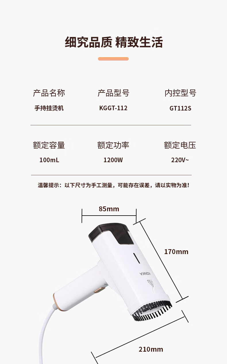 康佳(KONKA) 蒸汽电熨斗家用便携式迷手持挂烫机KGGT-112