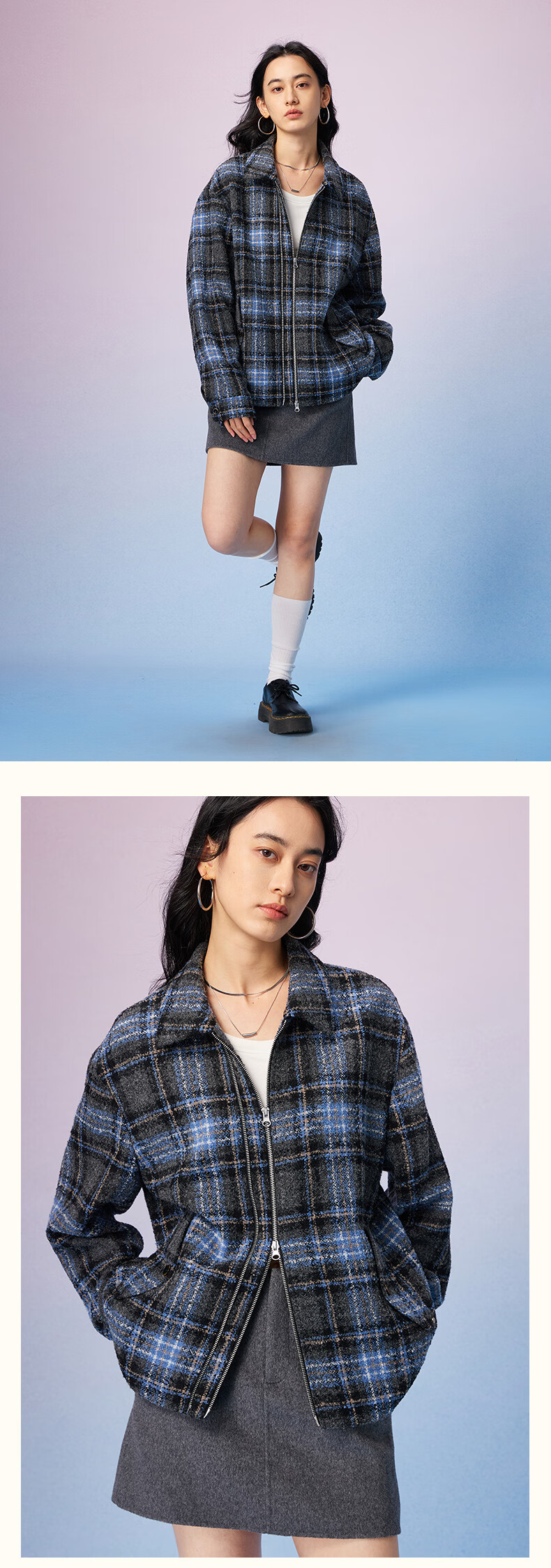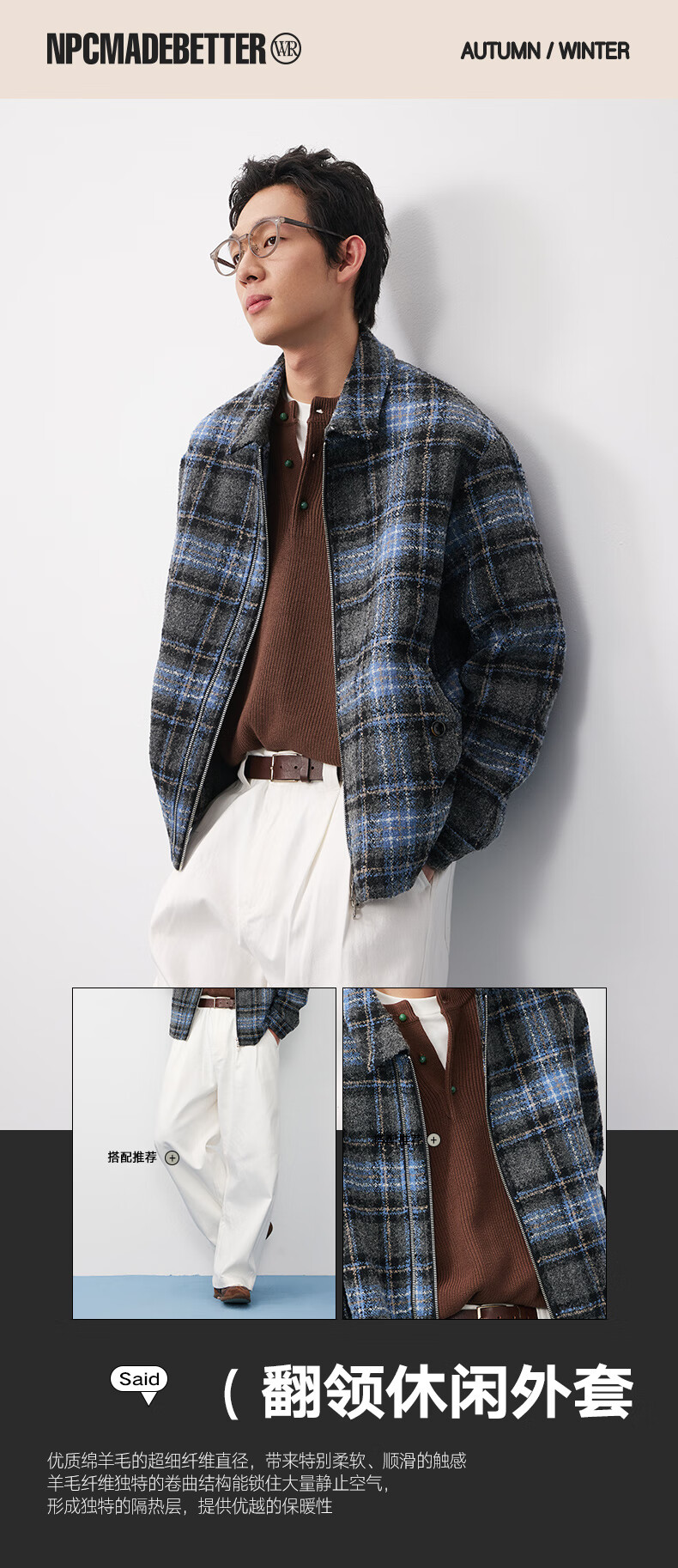 潮牌连帽休闲外套男潮流格子夹克秋季上新NP58TJ17