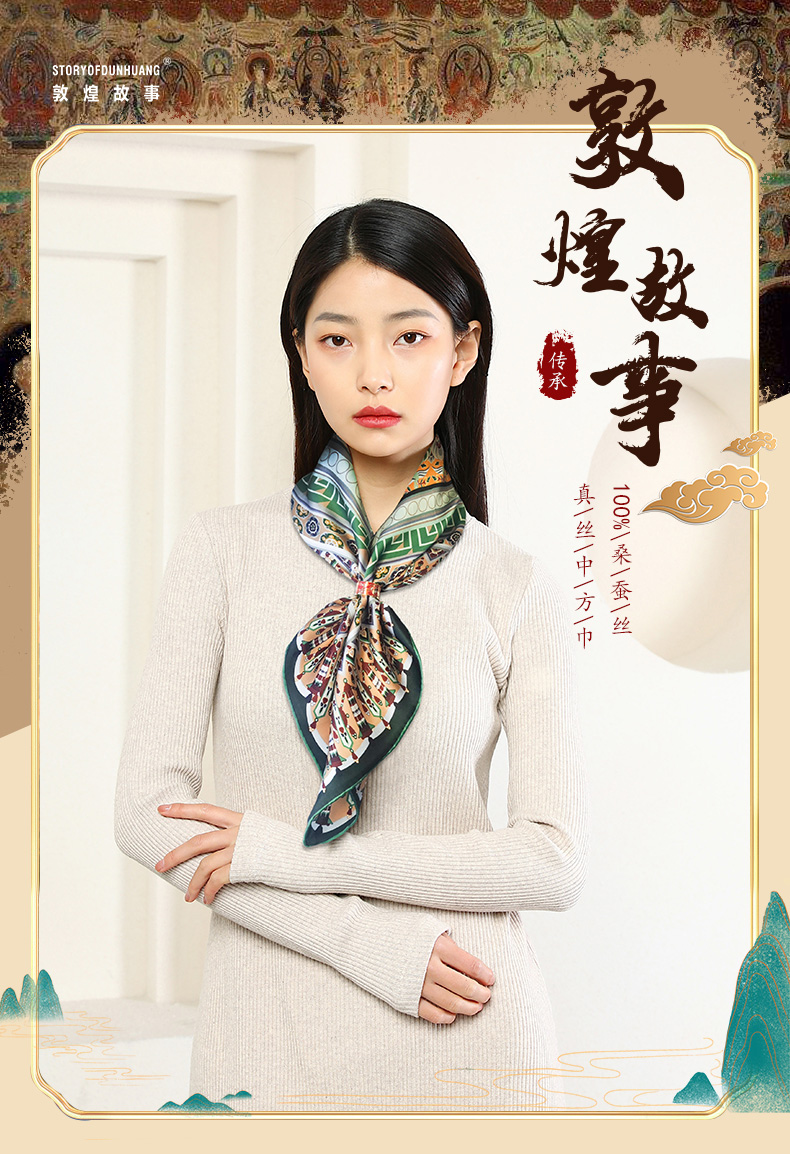 敦煌故事桑蚕丝春秋印花送礼中国风女丝巾